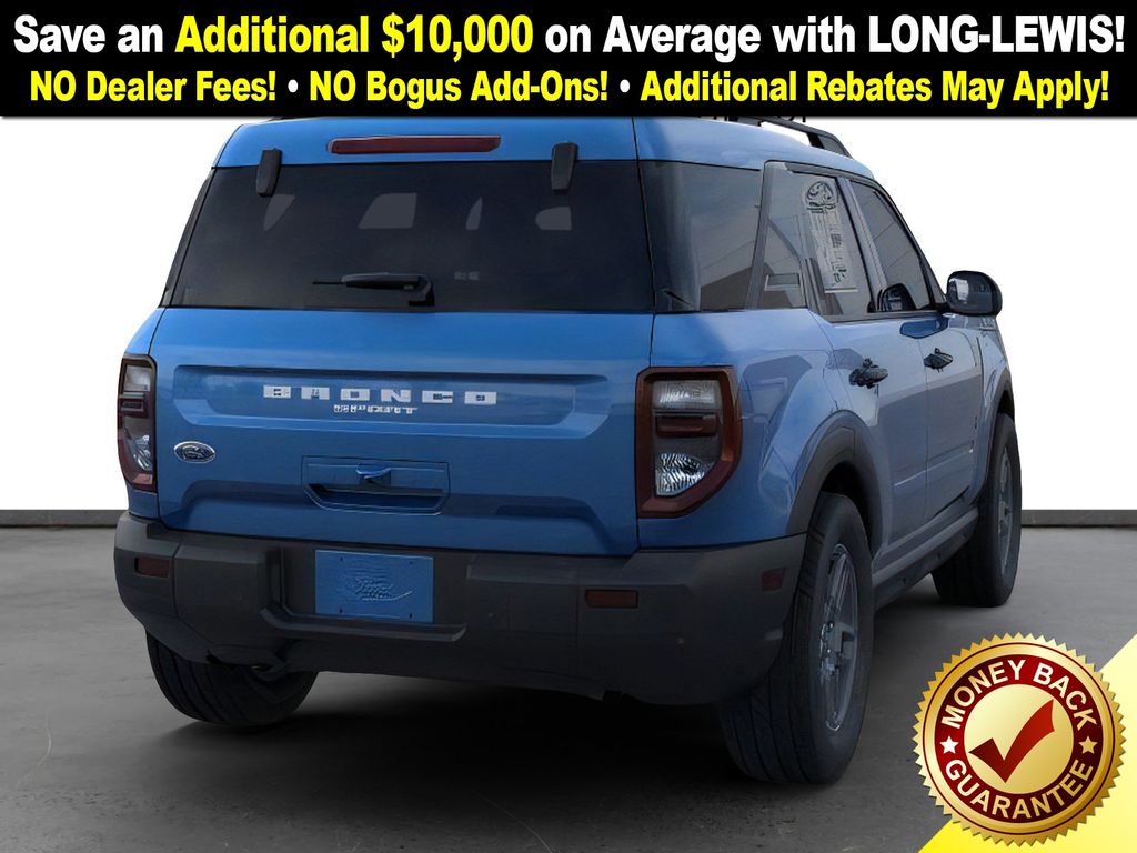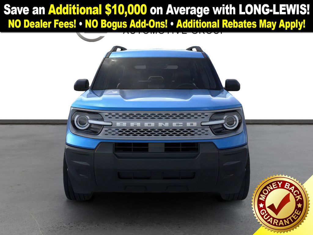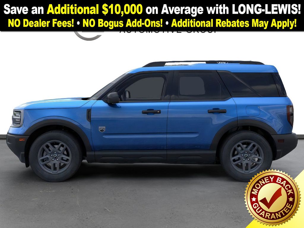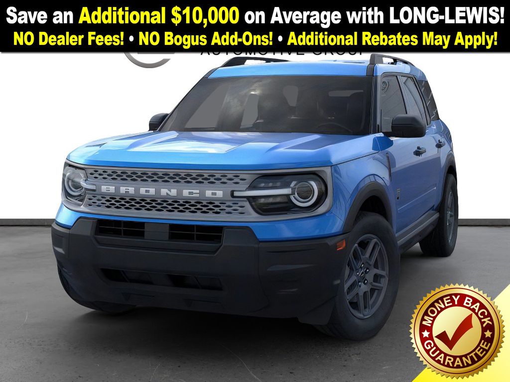 Velocity Blue Metallic 2025 Ford Bronco Sport Big Bend NFT 4WD 8-Speed Automatic 1.5L EcoBoost 4-Wheel Disc Brakes, 6 Speakers, ABS brakes, Air Conditioning, Alloy wheels, AM/FM radio: SiriusXM, AM/FM Stereo, Auto High-beam Headlights, Automatic temperature control, Brake assist, Cloth w/Easy-to-Clean Front Bucket Seats, Compass, Delay-off headlights, Driver door bin, Driver vanity mirror, Dual front impact airbags, Dual front side impact airbags, Electronic Stability Control, Emergency communication system: SYNC 4 911 Assist, Four wheel independent suspension, Front anti-roll bar, Front Bucket Seats, Front Center Armrest, Front License Plate Bracket, Front reading lights, Fully automatic headlights, Heated door mirrors, Illuminated entry, Knee airbag, Low tire pressure warning, Occupant sensing airbag, Outside temperature display, Overhead airbag, Overhead console, Panic alarm, Passenger door bin, Passenger vanity mirror, Power door mirrors, Power steering, Power windows, Radio data system, Rear anti-roll bar, Rear Parking Sensors, Rear reading lights, Rear seat center armrest, Rear window defroster, Rear window wiper, Remote keyless entry, Security system, SiriusXM, Speed control, Speed-sensing steering, Speed-Sensitive Wipers, Split folding rear seat, Steering wheel mounted audio controls, SYNC 4 w/Enhanced Voice Recognition, Tachometer, Telescoping steering wheel, Tilt steering wheel, Traction control, Trip computer, Variably intermittent wipers, Wheels: 17" Carbonized Gray Painted Aluminum, Wheels: 17" Carbonized Gray-Painted Aluminum.