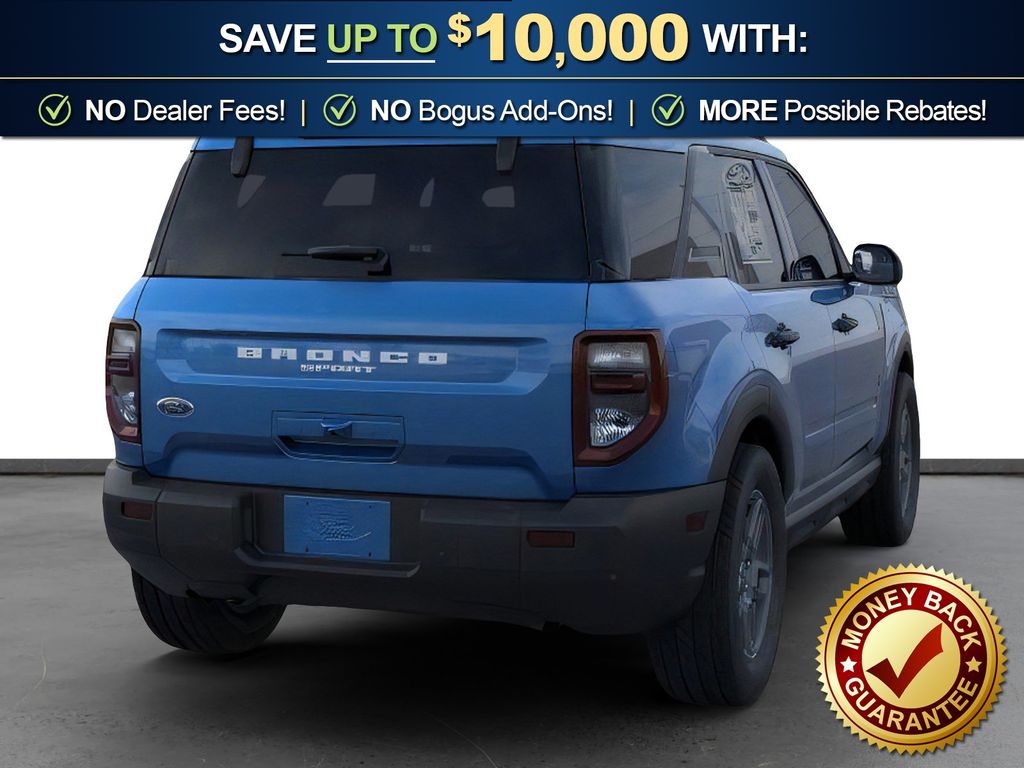 Velocity Blue Metallic 2025 Ford Bronco Sport Big Bend FCT 4WD 8-Speed Automatic 1.5L EcoBoost 4-Wheel Disc Brakes, 6 Speakers, ABS brakes, Air Conditioning, Alloy wheels, AM/FM radio: SiriusXM, AM/FM Stereo, Auto High-beam Headlights, Automatic temperature control, Brake assist, Cloth w/Easy-to-Clean Front Bucket Seats, Compass, Delay-off headlights, Driver door bin, Driver vanity mirror, Dual front impact airbags, Dual front side impact airbags, Electronic Stability Control, Emergency communication system: SYNC 4 911 Assist, Four wheel independent suspension, Front anti-roll bar, Front Bucket Seats, Front Center Armrest, Front License Plate Bracket, Front reading lights, Fully automatic headlights, Heated door mirrors, Illuminated entry, Knee airbag, Low tire pressure warning, Occupant sensing airbag, Outside temperature display, Overhead airbag, Overhead console, Panic alarm, Passenger door bin, Passenger vanity mirror, Power door mirrors, Power steering, Power windows, Radio data system, Rear anti-roll bar, Rear Parking Sensors, Rear reading lights, Rear seat center armrest, Rear window defroster, Rear window wiper, Remote keyless entry, Security system, SiriusXM, Speed control, Speed-sensing steering, Speed-Sensitive Wipers, Split folding rear seat, Steering wheel mounted audio controls, SYNC 4 w/Enhanced Voice Recognition, Tachometer, Telescoping steering wheel, Tilt steering wheel, Traction control, Trip computer, Variably intermittent wipers, Wheels: 17" Carbonized Gray Painted Aluminum, Wheels: 17" Carbonized Gray-Painted Aluminum.