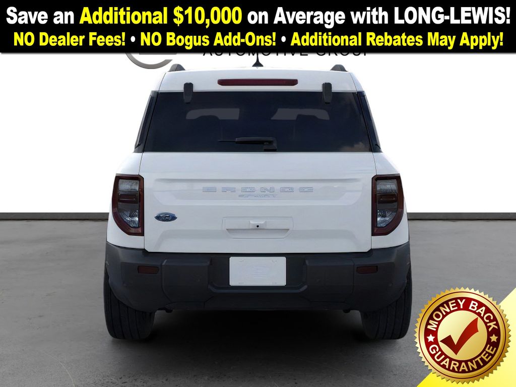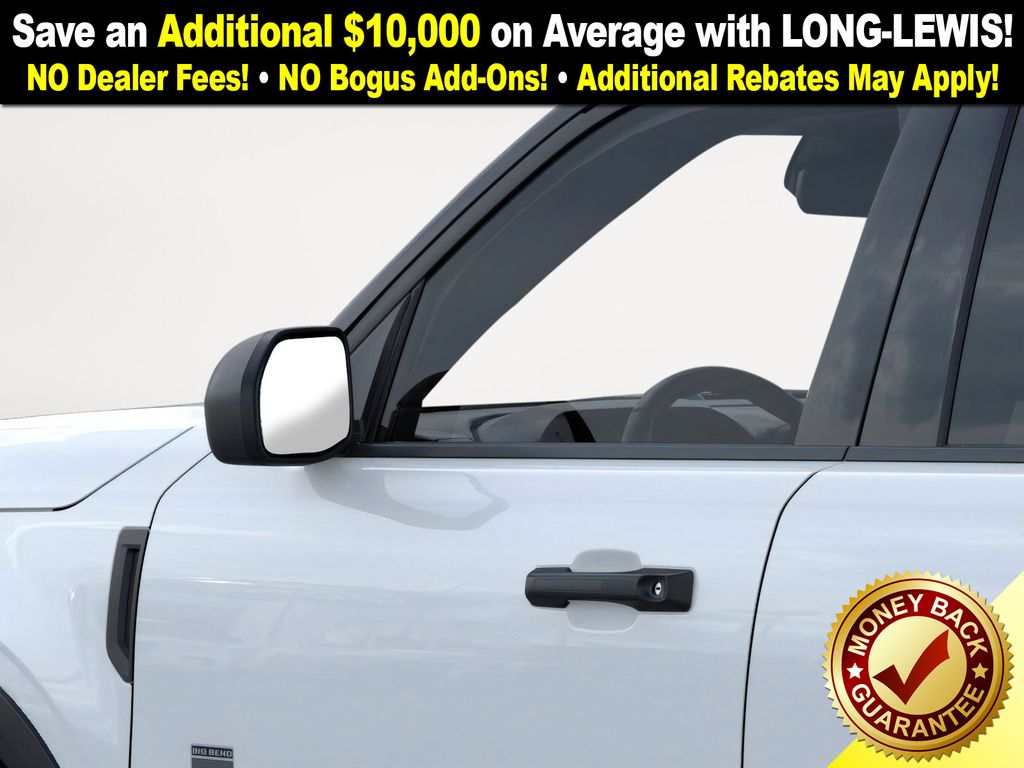 Oxford White 2025 Ford Bronco Sport Big Bend NFT 4WD 8-Speed Automatic 1.5L EcoBoost 4-Wheel Disc Brakes, 6 Speakers, ABS brakes, Air Conditioning, Alloy wheels, AM/FM radio: SiriusXM, AM/FM Stereo, Auto High-beam Headlights, Automatic temperature control, Brake assist, Cloth w/Easy-to-Clean Front Bucket Seats, Compass, Delay-off headlights, Driver door bin, Driver vanity mirror, Dual front impact airbags, Dual front side impact airbags, Electronic Stability Control, Emergency communication system: SYNC 4 911 Assist, Four wheel independent suspension, Front anti-roll bar, Front Bucket Seats, Front Center Armrest, Front License Plate Bracket, Front reading lights, Fully automatic headlights, Heated door mirrors, Illuminated entry, Knee airbag, Low tire pressure warning, Occupant sensing airbag, Outside temperature display, Overhead airbag, Overhead console, Panic alarm, Passenger door bin, Passenger vanity mirror, Power door mirrors, Power steering, Power windows, Radio data system, Rear anti-roll bar, Rear Parking Sensors, Rear reading lights, Rear seat center armrest, Rear window defroster, Rear window wiper, Remote keyless entry, Security system, SiriusXM, Speed control, Speed-sensing steering, Speed-Sensitive Wipers, Split folding rear seat, Steering wheel mounted audio controls, SYNC 4 w/Enhanced Voice Recognition, Tachometer, Telescoping steering wheel, Tilt steering wheel, Traction control, Trip computer, Variably intermittent wipers, Wheels: 17" Carbonized Gray Painted Aluminum, Wheels: 17" Carbonized Gray-Painted Aluminum.