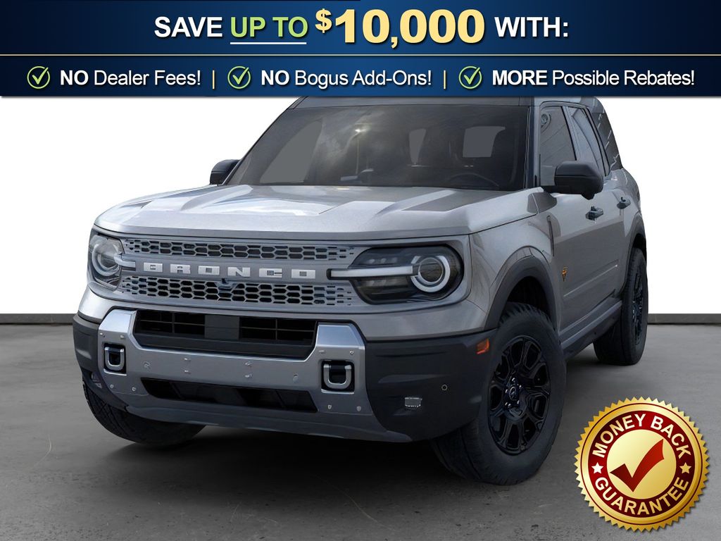 Carbonized Gray Metallic 2025 Ford Bronco Sport Badlands fctp 4WD 8-Speed Automatic EcoBoost 2.0L I4 GTDi DOHC Turbocharged VCT 4-Wheel Disc Brakes, 6 Speakers, ABS brakes, Air Conditioning, Alloy wheels, AM/FM radio: SiriusXM, AM/FM Stereo, Auto High-beam Headlights, Auto-dimming Rear-View mirror, Automatic temperature control, B&O Sound System by Bang & Olufsen, Badlands Tech Package, Brake assist, Compass, Connected Navigation, Delay-off headlights, Driver door bin, Driver vanity mirror, Dual front impact airbags, Dual front side impact airbags, Electronic Stability Control, Emergency communication system: SYNC 4 911 Assist, Four wheel independent suspension, Front anti-roll bar, Front Bucket Seats, Front Center Armrest, Front fog lights, Front License Plate Bracket, Front reading lights, Fully automatic headlights, Garage door transmitter, HD Radio, Heated door mirrors, Heated front seats, Heated steering wheel, Illuminated entry, Knee airbag, Leather Trimmed Front Bucket Seats, Low tire pressure warning, Memory seat, Occupant sensing airbag, Outside temperature display, Overhead airbag, Overhead console, Panic alarm, Passenger door bin, Passenger vanity mirror, Power door mirrors, Power driver seat, Power Moonroof, Power passenger seat, Power steering, Power windows, Radio data system, Rear anti-roll bar, Rear reading lights, Rear seat center armrest, Rear window defroster, Rear window wiper, Remote keyless entry, Security system, SiriusXM, Speed control, Speed-sensing steering, Speed-Sensitive Wipers, Split folding rear seat, Steering wheel mounted audio controls, SYNC 4 w/Enhanced Voice Recognition, Tachometer, Telescoping steering wheel, Tilt steering wheel, Traction control, Trip computer, Variably intermittent wipers, Wheels: 17" Matte Black-Painted Aluminum.