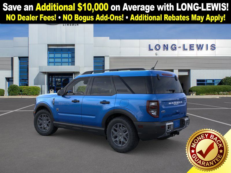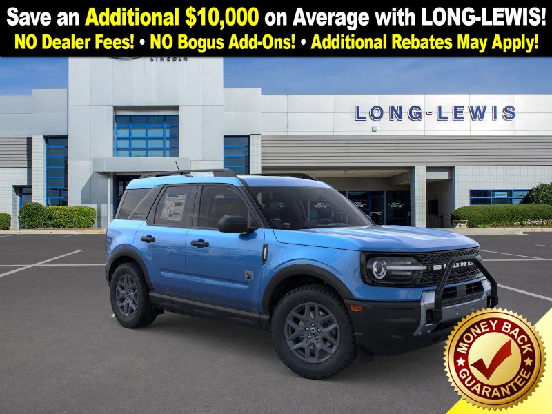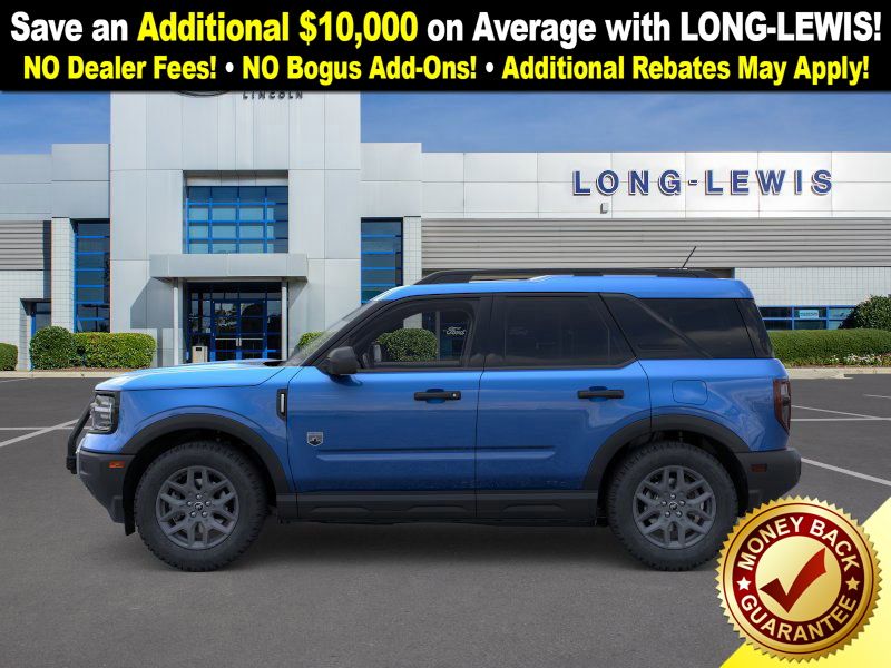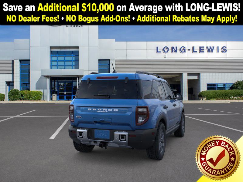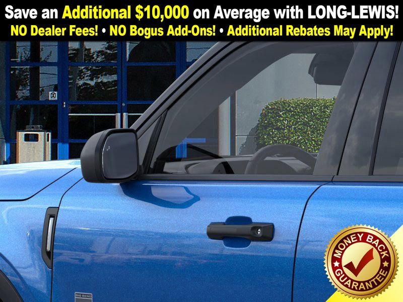 Dealer Discount of $2,292 off MSRP Priced below KBB Fair Purchase Price! Velocity Blue Metallic 2025 Ford Bronco Sport Big Bend NFT 4WD 8-Speed Automatic 1.5L EcoBoost 110V/400W AC Power Outlet, 2nd Row Carpeted Seatback, 4-Wheel Disc Brakes, 6 Speakers, ABS brakes, Air Conditioning, Alloy wheels, AM/FM radio: SiriusXM, AM/FM Stereo, Auto High-beam Headlights, Automatic temperature control, Auxiliary Switches & Wiring, Black Diamond Off-Road Package, Brake assist, Brush Guard, Cargo Management System (Shelf/Divider/Table), Cargo Mat, Class II Trailer Tow Pack w/Trailer Sway Control, Cloth w/Easy-to-Clean Front Bucket Seats, Compass, Delay-off headlights, Driver door bin, Driver vanity mirror, Dual front impact airbags, Dual front side impact airbags, Electronic Stability Control, Emergency communication system: SYNC 4 911 Assist, Fender Tie Downs, Four wheel independent suspension, Front & Rear Black Bumpers, Front anti-roll bar, Front Bucket Seats, Front Center Armrest, Front License Plate Bracket, Front reading lights, Fully automatic headlights, Heated door mirrors, Illuminated entry, Interior Grab Handle, Knee airbag, Low tire pressure warning, Occupant sensing airbag, Outside temperature display, Overhead airbag, Overhead console, Panic alarm, Passenger door bin, Passenger vanity mirror, Power door mirrors, Power steering, Power windows, Radio data system, Rear anti-roll bar, Rear Parking Sensors, Rear reading lights, Rear seat center armrest, Rear window defroster, Rear window wiper, Recovery Hooks, Remote keyless entry, Security system, SiriusXM, Speed control, Speed-sensing steering, Speed-Sensitive Wipers, Split folding rear seat, Steering wheel mounted audio controls, SYNC 4 w/Enhanced Voice Recognition, Tachometer, Telescoping steering wheel, Tilt steering wheel, Traction control, Trip computer, Variably intermittent wipers, Wheels: 17" Carbonized Gray Painted Aluminum, Wheels: 17" Carbonized Gray-Painted Aluminum.