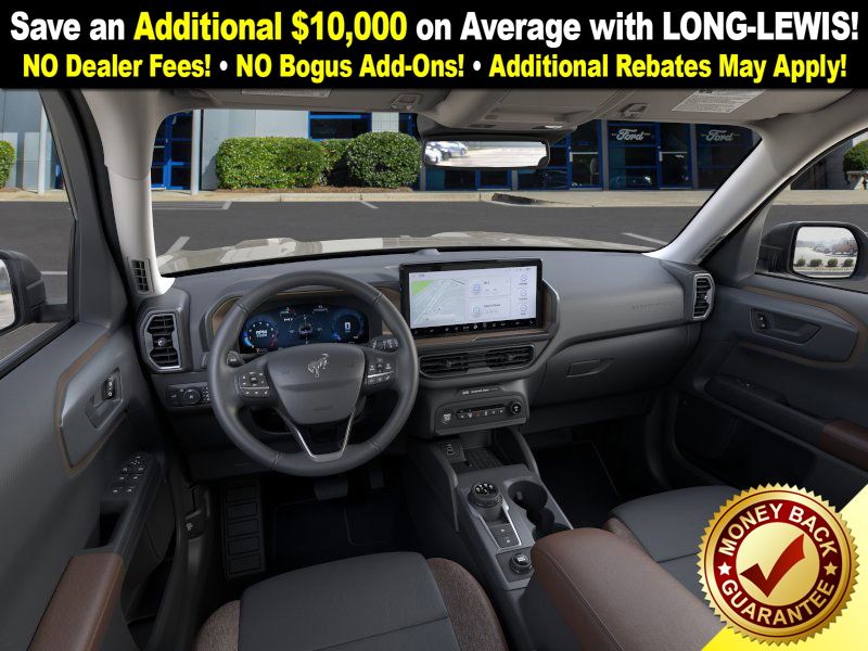 I got a 2025 Big Bend with the black diamond off road package. The steel modular front and rear in combination with bush guard gives this year model. A very aggressive off road look. With the ability to easily mount accessories and power them with the factory installed auxiliary switches. Hitch receiver seamlessly mounted into the rear steel bumper flanked by some very chunky recovery points. The upgraded aluminum rims wrapped with Continental all-terrains. It make this the most capable bronco sport yet. The interior of the 2025 has been updated with a new 13 inch touchscreen with Android Auto and apple car play. The lines of the dash flow elegantly from the new infotainment screen to the new all digital 12 inch gauge chaster. Toggling through the different modes on the gauge chaster is very intuitive, and all the displays are laid out very cleanly. Moving from gauge chaster the center storage cubby just below the infotainment screen there is a wireless charger and USB/ USB-c ports. The passenger side of that same cubby gets a handle and a matching one on the roof just in case the driver bucks a little too much. The passenger also gets a mesh storage area. That leads us to the fact this vehicle has tons of storage options all throughout. You have pockets on the sides of the front two seat big enough for the latest new phones. Very generous door storage on all four doors plus huge glove box and center console with 12 volt outlet. The back side of the center console has air vents and another 12 volt outlet plus a 110 outlet. Now getting to the cargo area it is massive for a crossover SUV. With off road package you get a cargo management system and a very nice rubber mat. Under that there is a full size tire plus scissor jack and funnel to use with the capless filler system. On the liftgate there isa pair of very bright led lights turned on with a switch in the cargo area. This feature packed vehicle has tons awesome gadgets and hidden a little homages I spend all day just talk that. At the end of the day it is car. So how does it drive. It is wonderful, the steering and pedal response is beautiful. Rides very smooth and little to no road noise going down the highway. The active cruise control and co-pilot 360 have been very handy. The car literally drives itself most of the time. There is not enough good things I could same about this car. I love it and you pick one too. You will see what I mean. - 5.0