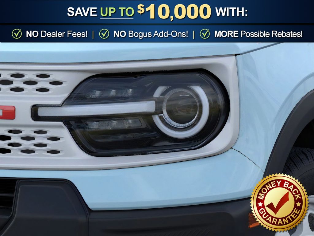 Robins Egg Blue 2025 Ford Bronco Sport Heritage FCT 4WD 8-Speed Automatic 1.5L EcoBoost 4-Wheel Disc Brakes, 6 Speakers, ABS brakes, Air Conditioning, Alloy wheels, AM/FM radio: SiriusXM, AM/FM Stereo, Auto High-beam Headlights, Automatic temperature control, Brake assist, Compass, Delay-off headlights, Driver door bin, Driver vanity mirror, Dual front impact airbags, Dual front side impact airbags, Electronic Stability Control, Emergency communication system: SYNC 4 911 Assist, Four wheel independent suspension, Front anti-roll bar, Front Bucket Seats, Front Center Armrest, Front Driver/Passenger Seat Back Map Pockets, Front License Plate Bracket, Front reading lights, Fully automatic headlights, Heated door mirrors, Illuminated entry, Knee airbag, Low tire pressure warning, Occupant sensing airbag, Outside temperature display, Overhead airbag, Overhead console, Panic alarm, Passenger door bin, Passenger vanity mirror, Plaid Cloth Front Bucket Seats, Power door mirrors, Power steering, Power windows, Radio data system, Rear anti-roll bar, Rear Parking Sensors, Rear reading lights, Rear seat center armrest, Rear window defroster, Rear window wiper, Remote keyless entry, Security system, SiriusXM, Speed control, Speed-sensing steering, Speed-Sensitive Wipers, Split folding rear seat, Steering wheel mounted audio controls, SYNC 4 w/Enhanced Voice Recognition, Tachometer, Telescoping steering wheel, Tilt steering wheel, Traction control, Trip computer, Variably intermittent wipers, Wheels: 17" Oxford White-Painted Aluminum.