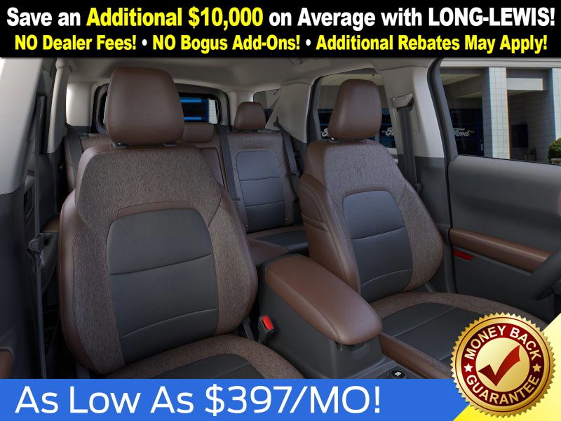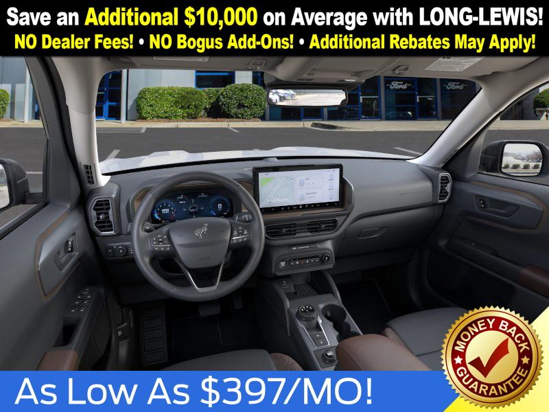 I got a 2025 Big Bend with the black diamond off road package. The steel modular front and rear in combination with bush guard gives this year model. A very aggressive off road look. With the ability to easily mount accessories and power them with the factory installed auxiliary switches. Hitch receiver seamlessly mounted into the rear steel bumper flanked by some very chunky recovery points. The upgraded aluminum rims wrapped with Continental all-terrains. It make this the most capable bronco sport yet. The interior of the 2025 has been updated with a new 13 inch touchscreen with Android Auto and apple car play. The lines of the dash flow elegantly from the new infotainment screen to the new all digital 12 inch gauge chaster. Toggling through the different modes on the gauge chaster is very intuitive, and all the displays are laid out very cleanly. Moving from gauge chaster the center storage cubby just below the infotainment screen there is a wireless charger and USB/ USB-c ports. The passenger side of that same cubby gets a handle and a matching one on the roof just in case the driver bucks a little too much. The passenger also gets a mesh storage area. That leads us to the fact this vehicle has tons of storage options all throughout. You have pockets on the sides of the front two seat big enough for the latest new phones. Very generous door storage on all four doors plus huge glove box and center console with 12 volt outlet. The back side of the center console has air vents and another 12 volt outlet plus a 110 outlet. Now getting to the cargo area it is massive for a crossover SUV. With off road package you get a cargo management system and a very nice rubber mat. Under that there is a full size tire plus scissor jack and funnel to use with the capless filler system. On the liftgate there isa pair of very bright led lights turned on with a switch in the cargo area. This feature packed vehicle has tons awesome gadgets and hidden a little homages I spend all day just talk that. At the end of the day it is car. So how does it drive. It is wonderful, the steering and pedal response is beautiful. Rides very smooth and little to no road noise going down the highway. The active cruise control and co-pilot 360 have been very handy. The car literally drives itself most of the time. There is not enough good things I could same about this car. I love it and you pick one too. You will see what I mean. - 5.0