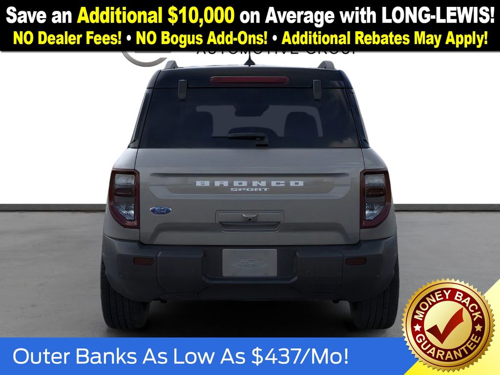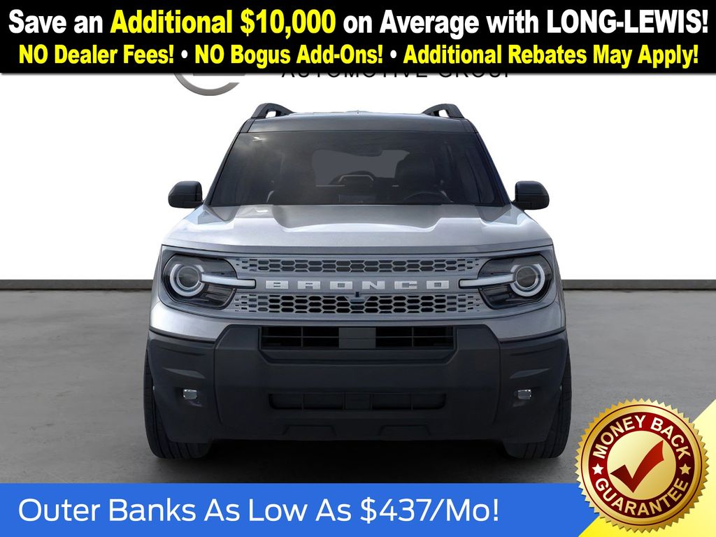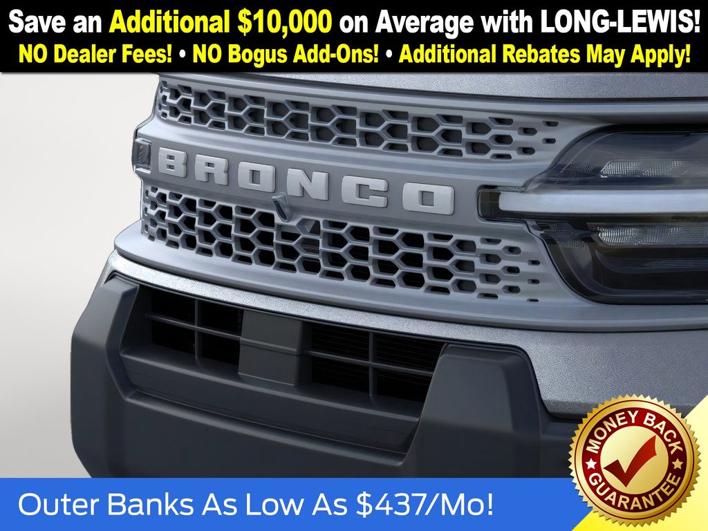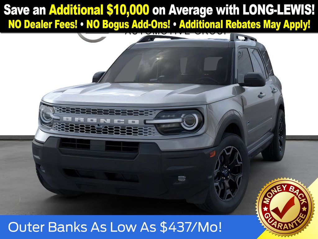 Carbonized Gray Metallic 2025 Ford Bronco Sport Outer Banks NFT 4WD 8-Speed Automatic 1.5L EcoBoost 4-Wheel Disc Brakes, 6 Speakers, ABS brakes, Air Conditioning, Alloy wheels, AM/FM radio: SiriusXM, AM/FM Stereo, Auto High-beam Headlights, Auto-dimming Rear-View mirror, Automatic temperature control, Brake assist, Compass, Delay-off headlights, Driver door bin, Driver vanity mirror, Dual front impact airbags, Dual front side impact airbags, Electronic Stability Control, Emergency communication system: SYNC 4 911 Assist, Four wheel independent suspension, Front anti-roll bar, Front Bucket Seats, Front Center Armrest, Front Driver/Passenger Seat Back Map Pockets, Front dual zone A/C, Front fog lights, Front License Plate Bracket, Front reading lights, Fully automatic headlights, Garage door transmitter, Heated door mirrors, Heated front seats, Heated steering wheel, Illuminated entry, Knee airbag, Low tire pressure warning, Memory seat, Occupant sensing airbag, Outside temperature display, Overhead airbag, Overhead console, Panic alarm, Passenger door bin, Passenger vanity mirror, Power door mirrors, Power driver seat, Power passenger seat, Power steering, Power windows, Premium Trimmed Front Bucket Seats w/Ebony/Roast, Radio data system, Rain sensing wipers, Rear anti-roll bar, Rear Parking Sensors, Rear reading lights, Rear seat center armrest, Rear window defroster, Rear window wiper, Remote keyless entry, Security system, SiriusXM, Speed control, Speed-sensing steering, Speed-Sensitive Wipers, Split folding rear seat, Steering wheel mounted audio controls, SYNC 4 w/Enhanced Voice Recognition, Tachometer, Telescoping steering wheel, Tilt steering wheel, Traction control, Trip computer, Variably intermittent wipers, Wheels: 18" Ebony Black-Painted Aluminum.
