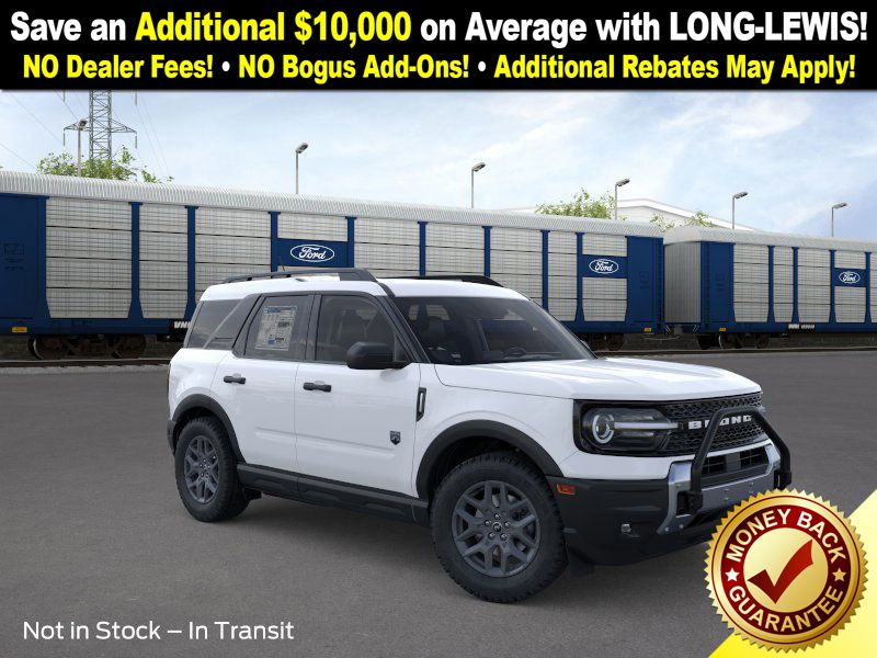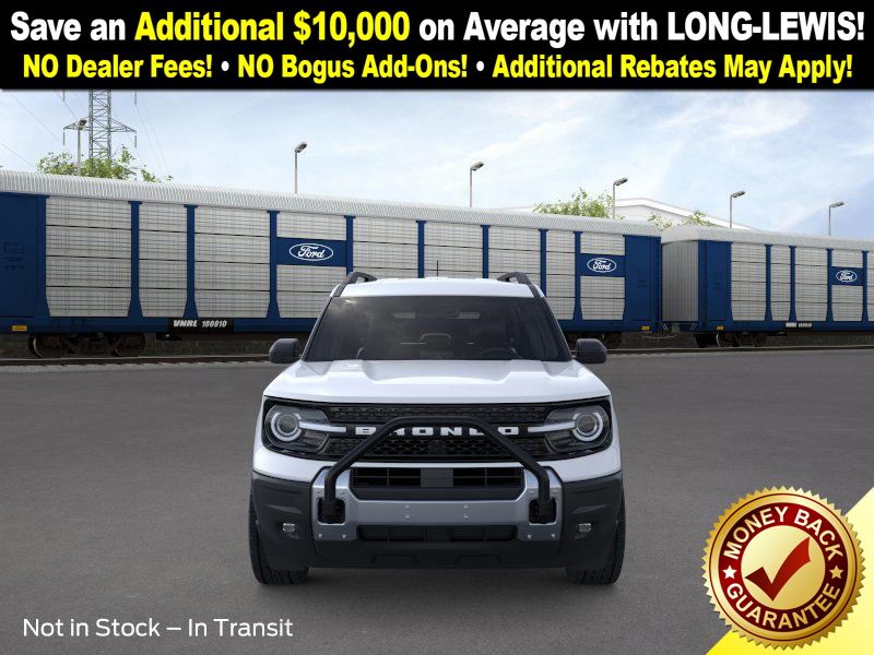 Oxford White 2025 Ford Bronco Sport Big Bend NFT 4WD 8-Speed Automatic 1.5L EcoBoost 110V/400W AC Power Outlet, 2nd Row Carpeted Seatback, 4-Wheel Disc Brakes, 6 Speakers, ABS brakes, Air Conditioning, Alloy wheels, AM/FM radio: SiriusXM, AM/FM Stereo, Auto High-beam Headlights, Automatic temperature control, Auxiliary Switches & Wiring, Black Diamond Off-Road Package, Brake assist, Brush Guard, Cargo Management System (Shelf/Divider/Table), Cargo Mat, Class II Trailer Tow Pack w/Trailer Sway Control, Cloth w/Easy-to-Clean Front Bucket Seats, Compass, Convenience Package, Delay-off headlights, Driver door bin, Driver vanity mirror, Dual front impact airbags, Dual front side impact airbags, Electronic Stability Control, Emergency communication system: SYNC 4 911 Assist, Fender Tie Downs, Four wheel independent suspension, Front & Rear Black Bumpers, Front anti-roll bar, Front Bucket Seats, Front Center Armrest, Front Driver/Passenger Seat Back Map Pockets, Front License Plate Bracket, Front reading lights, Fully automatic headlights, Heated 8-Way Power Driver's Seat, Heated door mirrors, Illuminated entry, Interior Grab Handle, Knee airbag, LED Fog Lamps, Low tire pressure warning, Occupant sensing airbag, Outside temperature display, Overhead airbag, Overhead console, Panic alarm, Passenger door bin, Passenger vanity mirror, Power door mirrors, Power steering, Power windows, Premium Wrapped Steering Wheel, Radio data system, Rear anti-roll bar, Rear Parking Sensors, Rear reading lights, Rear seat center armrest, Rear window defroster, Rear window wiper, Recovery Hooks, Remote keyless entry, Security system, SiriusXM, Speed control, Speed-sensing steering, Speed-Sensitive Wipers, Split folding rear seat, Steering wheel mounted audio controls, SYNC 4 w/Enhanced Voice Recognition, Tachometer, Telescoping steering wheel, Tilt steering wheel, Traction control, Trip computer, Universal Garage Door Opener (UGDO), Variably intermittent wipers, Wheels: 17" Carbonized Gray Painted Aluminum, Wheels: 17" Carbonized Gray-Painted Aluminum.