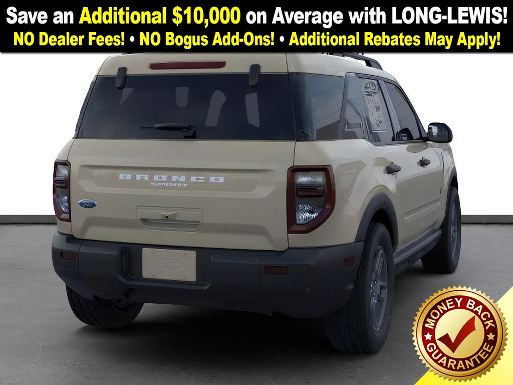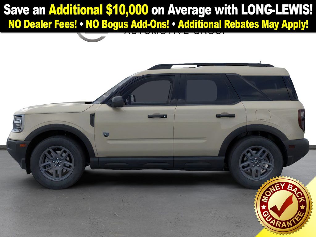 Desert Sand 2025 Ford Bronco Sport Big Bend NFT 4WD 8-Speed Automatic 1.5L EcoBoost 4-Wheel Disc Brakes, 6 Speakers, ABS brakes, Air Conditioning, Alloy wheels, AM/FM radio: SiriusXM, AM/FM Stereo, Auto High-beam Headlights, Automatic temperature control, Brake assist, Cloth w/Easy-to-Clean Front Bucket Seats, Compass, Delay-off headlights, Driver door bin, Driver vanity mirror, Dual front impact airbags, Dual front side impact airbags, Electronic Stability Control, Emergency communication system: SYNC 4 911 Assist, Four wheel independent suspension, Front anti-roll bar, Front Bucket Seats, Front Center Armrest, Front License Plate Bracket, Front reading lights, Fully automatic headlights, Heated door mirrors, Illuminated entry, Knee airbag, Low tire pressure warning, Occupant sensing airbag, Outside temperature display, Overhead airbag, Overhead console, Panic alarm, Passenger door bin, Passenger vanity mirror, Power door mirrors, Power steering, Power windows, Radio data system, Rear anti-roll bar, Rear Parking Sensors, Rear reading lights, Rear seat center armrest, Rear window defroster, Rear window wiper, Remote keyless entry, Security system, SiriusXM, Speed control, Speed-sensing steering, Speed-Sensitive Wipers, Split folding rear seat, Steering wheel mounted audio controls, SYNC 4 w/Enhanced Voice Recognition, Tachometer, Telescoping steering wheel, Tilt steering wheel, Traction control, Trip computer, Variably intermittent wipers, Wheels: 17" Carbonized Gray Painted Aluminum, Wheels: 17" Carbonized Gray-Painted Aluminum.