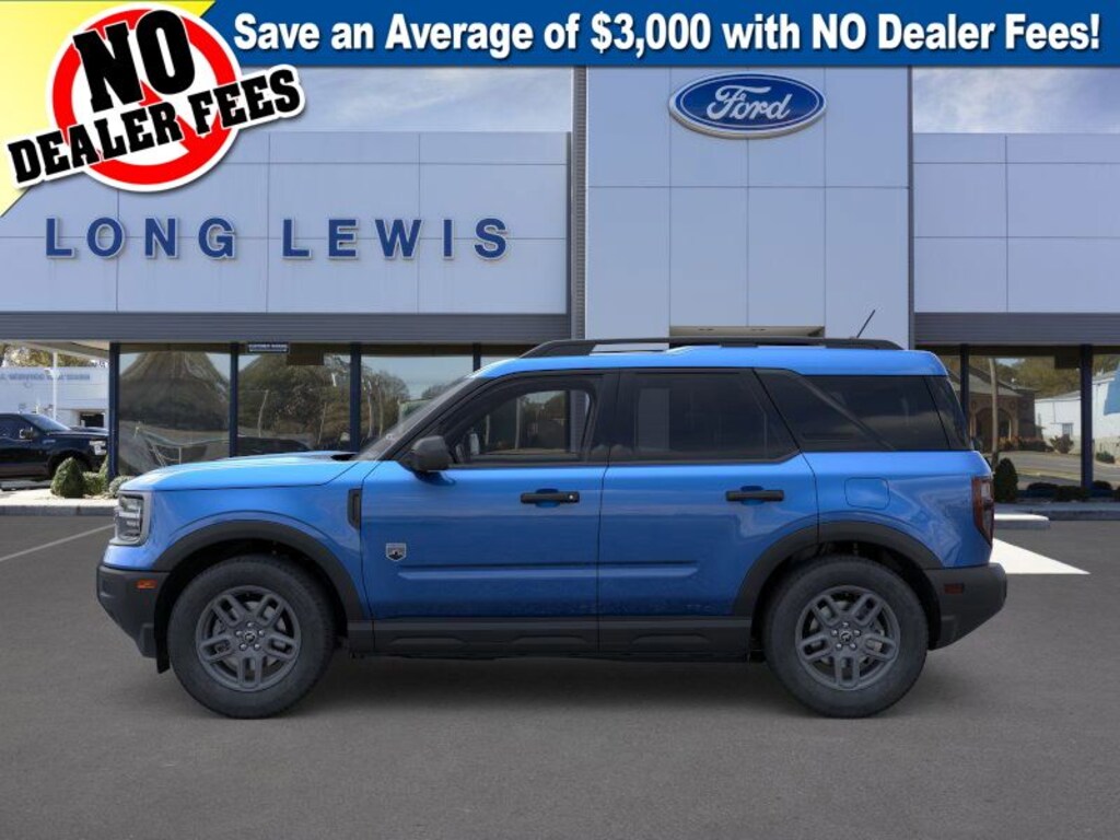 Velocity Blue Metallic 2025 Ford Bronco Sport Big Bend 4WD 8-Speed Automatic 1.5L EcoBoost 4-Wheel Disc Brakes, 6 Speakers, ABS brakes, Air Conditioning, Alloy wheels, AM/FM radio: SiriusXM, AM/FM Stereo, Auto High-beam Headlights, Automatic temperature control, Brake assist, Cloth w/Easy-to-Clean Front Bucket Seats, Compass, Convenience Package, Delay-off headlights, Driver door bin, Driver vanity mirror, Dual front impact airbags, Dual front side impact airbags, Electronic Stability Control, Emergency communication system: SYNC 4 911 Assist, Four wheel independent suspension, Front anti-roll bar, Front Bucket Seats, Front Center Armrest, Front Driver/Passenger Seat Back Map Pockets, Front License Plate Bracket, Front reading lights, Fully automatic headlights, Heated 8-Way Power Driver's Seat, Heated door mirrors, Illuminated entry, Knee airbag, LED Fog Lamps, Low tire pressure warning, Occupant sensing airbag, Outside temperature display, Overhead airbag, Overhead console, Panic alarm, Passenger door bin, Passenger vanity mirror, Power door mirrors, Power steering, Power windows, Premium Wrapped Steering Wheel, Radio data system, Rear anti-roll bar, Rear Parking Sensors, Rear reading lights, Rear seat center armrest, Rear window defroster, Rear window wiper, Remote keyless entry, Security system, SiriusXM, Speed control, Speed-sensing steering, Speed-Sensitive Wipers, Split folding rear seat, Steering wheel mounted audio controls, SYNC 4 w/Enhanced Voice Recognition, Tachometer, Telescoping steering wheel, Tilt steering wheel, Traction control, Trip computer, Universal Garage Door Opener (UGDO), Variably intermittent wipers, Wheels: 17" Carbonized Gray-Painted Aluminum.