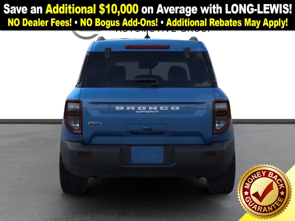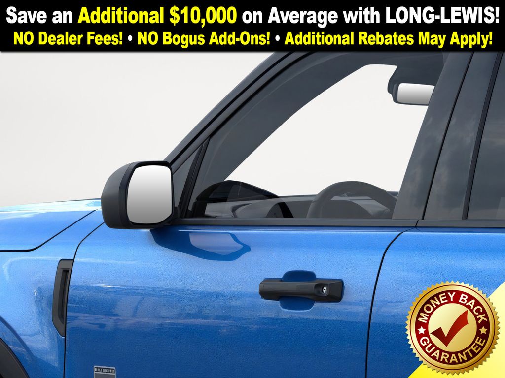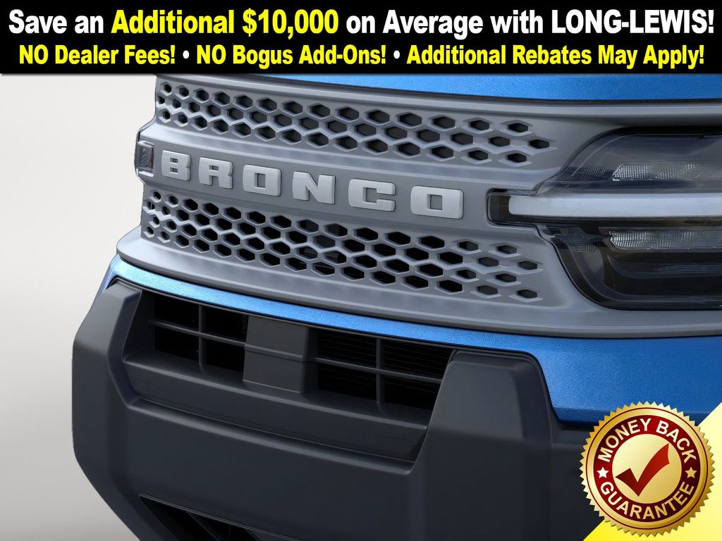 Velocity Blue Metallic 2025 Ford Bronco Sport Big Bend fctp 4WD 8-Speed Automatic 1.5L EcoBoost 4-Wheel Disc Brakes, 6 Speakers, ABS brakes, Air Conditioning, Alloy wheels, AM/FM radio: SiriusXM, AM/FM Stereo, Auto High-beam Headlights, Automatic temperature control, Brake assist, Cloth w/Easy-to-Clean Front Bucket Seats, Compass, Convenience Package, Delay-off headlights, Driver door bin, Driver vanity mirror, Dual front impact airbags, Dual front side impact airbags, Electronic Stability Control, Emergency communication system: SYNC 4 911 Assist, Four wheel independent suspension, Front anti-roll bar, Front Bucket Seats, Front Center Armrest, Front Driver/Passenger Seat Back Map Pockets, Front License Plate Bracket, Front reading lights, Fully automatic headlights, Heated 8-Way Power Driver's Seat, Heated door mirrors, Illuminated entry, Knee airbag, LED Fog Lamps, Low tire pressure warning, Occupant sensing airbag, Outside temperature display, Overhead airbag, Overhead console, Panic alarm, Passenger door bin, Passenger vanity mirror, Power door mirrors, Power steering, Power windows, Premium Wrapped Steering Wheel, Radio data system, Rear anti-roll bar, Rear Parking Sensors, Rear reading lights, Rear seat center armrest, Rear window defroster, Rear window wiper, Remote keyless entry, Security system, SiriusXM, Speed control, Speed-sensing steering, Speed-Sensitive Wipers, Split folding rear seat, Steering wheel mounted audio controls, SYNC 4 w/Enhanced Voice Recognition, Tachometer, Telescoping steering wheel, Tilt steering wheel, Traction control, Trip computer, Universal Garage Door Opener (UGDO), Variably intermittent wipers, Wheels: 17" Carbonized Gray-Painted Aluminum.