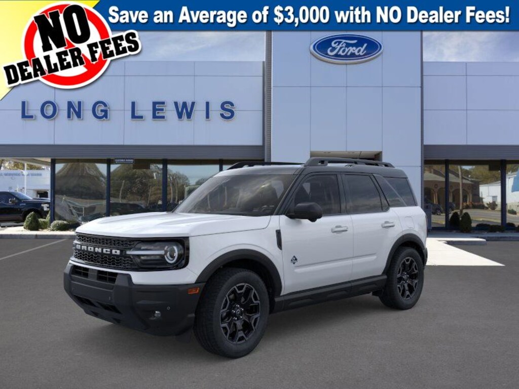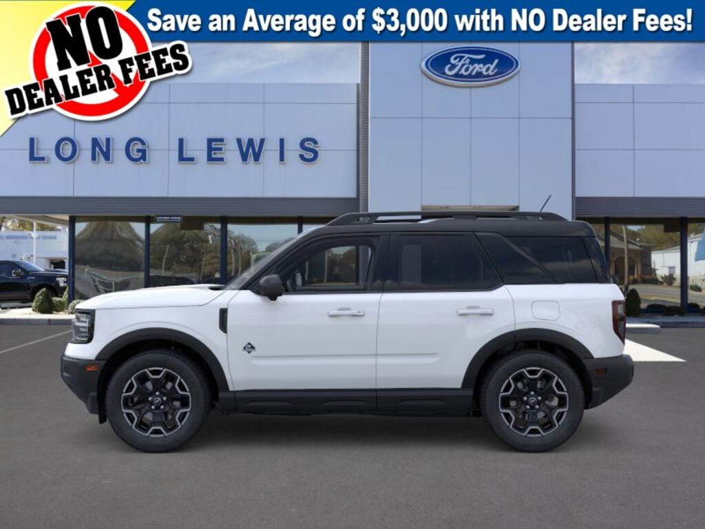 Oxford White 2025 Ford Bronco Sport Outer Banks 4WD 8-Speed Automatic 1.5L EcoBoost 360-Degree Camera w/Trail & Split View, 4-Wheel Disc Brakes, 6 Speakers, ABS brakes, Air Conditioning, Alloy wheels, AM/FM radio: SiriusXM, AM/FM Stereo, Auto High-beam Headlights, Auto-dimming Rear-View mirror, Automatic temperature control, B&O Sound System by Bang & Olufsen, Brake assist, Compass, Connected Navigation, Delay-off headlights, Driver door bin, Driver vanity mirror, Dual front impact airbags, Dual front side impact airbags, Electronic Stability Control, Emergency communication system: SYNC 4 911 Assist, Four wheel independent suspension, Front anti-roll bar, Front Bucket Seats, Front Center Armrest, Front Driver/Passenger Seat Back Map Pockets, Front dual zone A/C, Front fog lights, Front License Plate Bracket, Front Parking Sensors, Front reading lights, Fully automatic headlights, Garage door transmitter, HD Radio, Heated door mirrors, Heated front seats, Heated steering wheel, Illuminated entry, Knee airbag, Low tire pressure warning, Memory seat, Occupant sensing airbag, Outer Banks Tech Package+, Outside temperature display, Overhead airbag, Overhead console, Panic alarm, Passenger door bin, Passenger vanity mirror, Power door mirrors, Power driver seat, Power Moonroof, Power passenger seat, Power steering, Power windows, Premium Trimmed Front Bucket Seats w/Ebony/Roast, Radio data system, Rain sensing wipers, Rear anti-roll bar, Rear Parking Sensors, Rear reading lights, Rear seat center armrest, Rear window defroster, Rear window wiper, Remote keyless entry, Reverse Brake Assist, Security system, SiriusXM, Speed control, Speed-sensing steering, Speed-Sensitive Wipers, Split folding rear seat, Steering wheel mounted audio controls, SYNC 4 w/Enhanced Voice Recognition, Tachometer, Telescoping steering wheel, Tilt steering wheel, Traction control, Trip computer, Variably intermittent wipers, Wheels: 18" Ebony Black-Painted Aluminum.