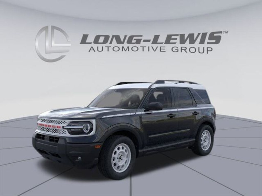 Shadow Black 2025 Ford Bronco Sport Heritage 4WD 8-Speed Automatic 1.5L EcoBoost 4-Wheel Disc Brakes, 6 Speakers, ABS brakes, Air Conditioning, Alloy wheels, AM/FM radio: SiriusXM, AM/FM Stereo, Auto High-beam Headlights, Automatic temperature control, Brake assist, Compass, Convenience Package, Delay-off headlights, Driver door bin, Driver vanity mirror, Dual front impact airbags, Dual front side impact airbags, Electronic Stability Control, Emergency communication system: SYNC 4 911 Assist, Four wheel independent suspension, Front anti-roll bar, Front Bucket Seats, Front Center Armrest, Front Driver Seat Back Map Pocket, Front reading lights, Fully automatic headlights, Heated 8-Way Power Driver's Seat, Heated door mirrors, Illuminated entry, Knee airbag, LED Fog Lamps, Low tire pressure warning, Occupant sensing airbag, Outside temperature display, Overhead airbag, Overhead console, Panic alarm, Passenger door bin, Passenger vanity mirror, Plaid Cloth Front Bucket Seats, Power door mirrors, Power steering, Power windows, Premium Wrapped Steering Wheel, Radio data system, Rear anti-roll bar, Rear Parking Sensors, Rear reading lights, Rear seat center armrest, Rear window defroster, Rear window wiper, Remote keyless entry, Security system, SiriusXM, Speed control, Speed-sensing steering, Speed-Sensitive Wipers, Split folding rear seat, Steering wheel mounted audio controls, SYNC 4 w/Enhanced Voice Recognition, Tachometer, Telescoping steering wheel, Tilt steering wheel, Traction control, Trip computer, Universal Garage Door Opener (UGDO), Variably intermittent wipers, Wheels: 17" Oxford White-Painted Aluminum.