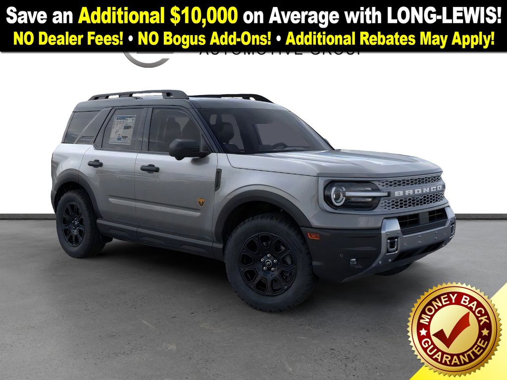 Dealer Discount of $2,292 off MSRP Priced below KBB Fair Purchase Price! Carbonized Gray Metallic 2025 Ford Bronco Sport Badlands NFT 4WD 8-Speed Automatic EcoBoost 2.0L I4 GTDi DOHC Turbocharged VCT 4-Wheel Disc Brakes, 6 Speakers, ABS brakes, Air Conditioning, Alloy wheels, AM/FM radio: SiriusXM, AM/FM Stereo, Auto High-beam Headlights, Auto-dimming Rear-View mirror, Automatic temperature control, B&O Sound System by Bang & Olufsen, Badlands Tech Package, Brake assist, Compass, Connected Navigation, Delay-off headlights, Driver door bin, Driver vanity mirror, Dual front impact airbags, Dual front side impact airbags, Electronic Stability Control, Emergency communication system: SYNC 4 911 Assist, Four wheel independent suspension, Front anti-roll bar, Front Bucket Seats, Front Center Armrest, Front fog lights, Front License Plate Bracket, Front reading lights, Fully automatic headlights, Garage door transmitter, HD Radio, Heated door mirrors, Heated front seats, Heated steering wheel, Illuminated entry, Knee airbag, Leather Trimmed Front Bucket Seats, Low tire pressure warning, Memory seat, Occupant sensing airbag, Outside temperature display, Overhead airbag, Overhead console, Panic alarm, Passenger door bin, Passenger vanity mirror, Power door mirrors, Power driver seat, Power Moonroof, Power passenger seat, Power steering, Power windows, Radio data system, Rear anti-roll bar, Rear reading lights, Rear seat center armrest, Rear window defroster, Rear window wiper, Remote keyless entry, Security system, SiriusXM, Speed control, Speed-sensing steering, Speed-Sensitive Wipers, Split folding rear seat, Steering wheel mounted audio controls, SYNC 4 w/Enhanced Voice Recognition, Tachometer, Telescoping steering wheel, Tilt steering wheel, Traction control, Trip computer, Variably intermittent wipers, Wheels: 17" Matte Black-Painted Aluminum.