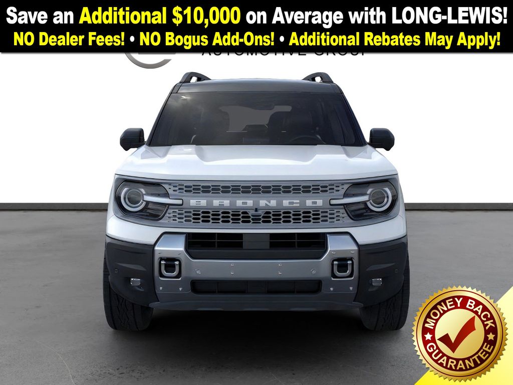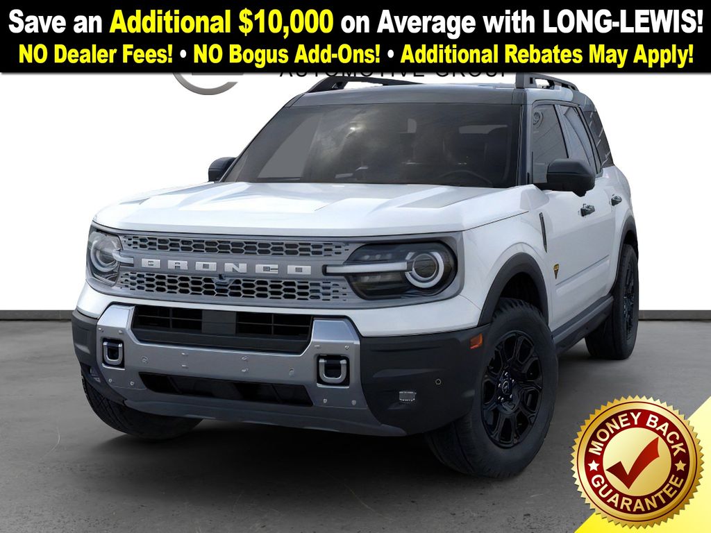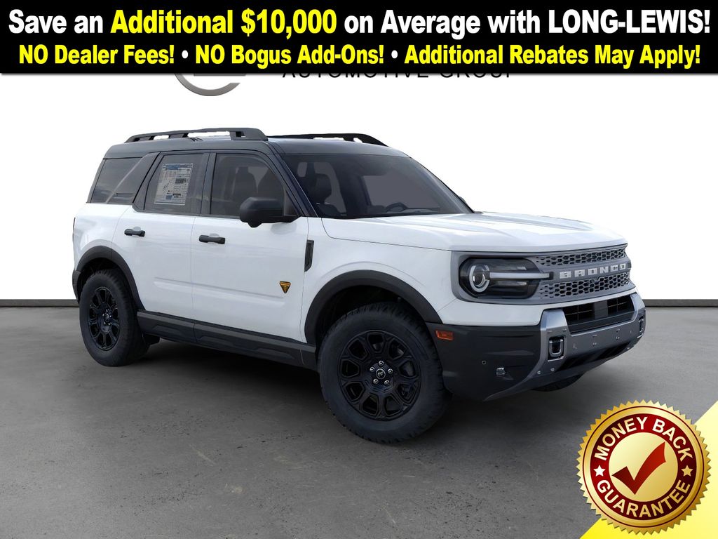 Dealer Discount of $2,292 off MSRP Priced below KBB Fair Purchase Price! Oxford White 2025 Ford Bronco Sport Badlands NFT 4WD 8-Speed Automatic EcoBoost 2.0L I4 GTDi DOHC Turbocharged VCT 4-Wheel Disc Brakes, 6 Speakers, ABS brakes, Air Conditioning, Alloy wheels, AM/FM radio: SiriusXM, AM/FM Stereo, Auto High-beam Headlights, Auto-dimming Rear-View mirror, Automatic temperature control, B&O Sound System by Bang & Olufsen, Badlands Tech Package, Brake assist, Compass, Connected Navigation, Delay-off headlights, Driver door bin, Driver vanity mirror, Dual front impact airbags, Dual front side impact airbags, Electronic Stability Control, Emergency communication system: SYNC 4 911 Assist, Four wheel independent suspension, Front anti-roll bar, Front Bucket Seats, Front Center Armrest, Front fog lights, Front License Plate Bracket, Front reading lights, Fully automatic headlights, Garage door transmitter, HD Radio, Heated door mirrors, Heated front seats, Heated steering wheel, Illuminated entry, Knee airbag, Leather Trimmed Front Bucket Seats, Low tire pressure warning, Memory seat, Occupant sensing airbag, Outside temperature display, Overhead airbag, Overhead console, Panic alarm, Passenger door bin, Passenger vanity mirror, Power door mirrors, Power driver seat, Power Moonroof, Power passenger seat, Power steering, Power windows, Radio data system, Rear anti-roll bar, Rear reading lights, Rear seat center armrest, Rear window defroster, Rear window wiper, Remote keyless entry, Security system, SiriusXM, Speed control, Speed-sensing steering, Speed-Sensitive Wipers, Split folding rear seat, Steering wheel mounted audio controls, SYNC 4 w/Enhanced Voice Recognition, Tachometer, Telescoping steering wheel, Tilt steering wheel, Traction control, Trip computer, Variably intermittent wipers, Wheels: 17" Matte Black-Painted Aluminum.