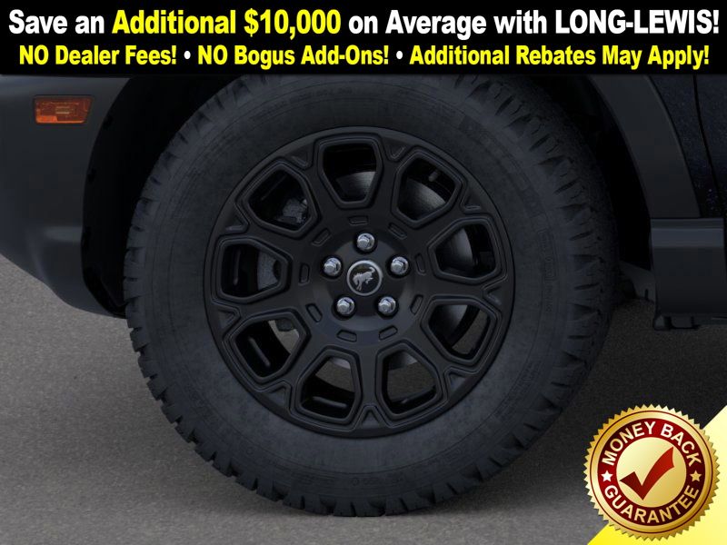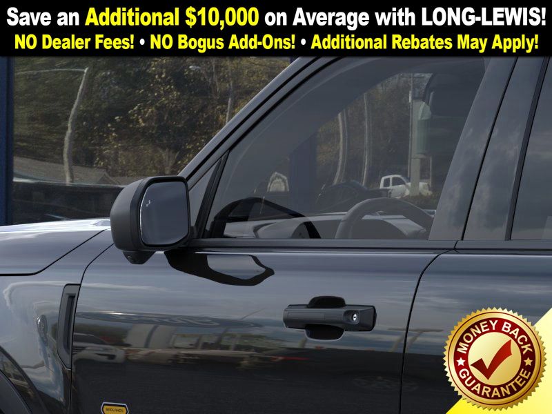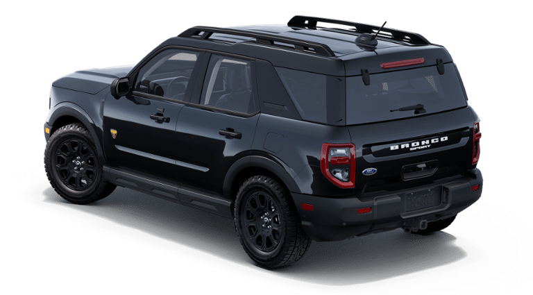 Shadow Black 2025 Ford Bronco Sport Badlands fctp 4WD 8-Speed Automatic EcoBoost 2.0L I4 GTDi DOHC Turbocharged VCT 4-Wheel Disc Brakes, 6 Speakers, ABS brakes, Air Conditioning, Alloy wheels, AM/FM radio: SiriusXM, AM/FM Stereo, Auto High-beam Headlights, Auto-dimming Rear-View mirror, Automatic temperature control, B&O Sound System by Bang & Olufsen, Badlands Tech Package, Brake assist, Compass, Connected Navigation, Delay-off headlights, Driver door bin, Driver vanity mirror, Dual front impact airbags, Dual front side impact airbags, Electronic Stability Control, Emergency communication system: SYNC 4 911 Assist, Four wheel independent suspension, Front anti-roll bar, Front Bucket Seats, Front Center Armrest, Front fog lights, Front License Plate Bracket, Front reading lights, Fully automatic headlights, Garage door transmitter, HD Radio, Heated door mirrors, Heated front seats, Heated steering wheel, Illuminated entry, Knee airbag, Leather Trimmed Front Bucket Seats, Low tire pressure warning, Memory seat, Occupant sensing airbag, Outside temperature display, Overhead airbag, Overhead console, Panic alarm, Passenger door bin, Passenger vanity mirror, Power door mirrors, Power driver seat, Power passenger seat, Power steering, Power windows, Radio data system, Rear anti-roll bar, Rear reading lights, Rear seat center armrest, Rear window defroster, Rear window wiper, Remote keyless entry, Security system, SiriusXM, Speed control, Speed-sensing steering, Speed-Sensitive Wipers, Split folding rear seat, Steering wheel mounted audio controls, SYNC 4 w/Enhanced Voice Recognition, Tachometer, Telescoping steering wheel, Tilt steering wheel, Traction control, Trip computer, Variably intermittent wipers, Wheels: 17" Matte Black-Painted Aluminum.