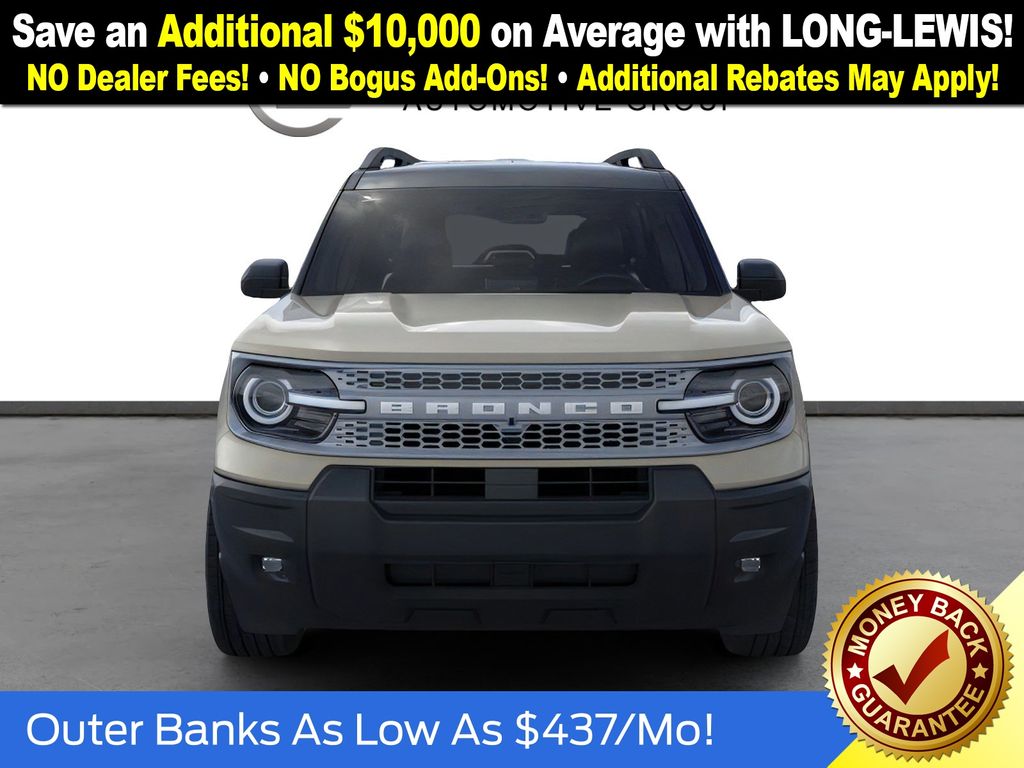Desert Sand 2025 Ford Bronco Sport Outer Banks fctp 4WD 8-Speed Automatic 1.5L EcoBoost 4-Wheel Disc Brakes, 6 Speakers, ABS brakes, Air Conditioning, Alloy wheels, AM/FM radio: SiriusXM, AM/FM Stereo, Auto High-beam Headlights, Auto-dimming Rear-View mirror, Automatic temperature control, Brake assist, Compass, Delay-off headlights, Driver door bin, Driver vanity mirror, Dual front impact airbags, Dual front side impact airbags, Electronic Stability Control, Emergency communication system: SYNC 4 911 Assist, Four wheel independent suspension, Front anti-roll bar, Front Bucket Seats, Front Center Armrest, Front Driver/Passenger Seat Back Map Pockets, Front dual zone A/C, Front fog lights, Front License Plate Bracket, Front reading lights, Fully automatic headlights, Garage door transmitter, Heated door mirrors, Heated front seats, Heated steering wheel, Illuminated entry, Knee airbag, Low tire pressure warning, Memory seat, Occupant sensing airbag, Outside temperature display, Overhead airbag, Overhead console, Panic alarm, Passenger door bin, Passenger vanity mirror, Power door mirrors, Power driver seat, Power passenger seat, Power steering, Power windows, Premium Trimmed Front Bucket Seats w/Ebony/Roast, Radio data system, Rain sensing wipers, Rear anti-roll bar, Rear Parking Sensors, Rear reading lights, Rear seat center armrest, Rear window defroster, Rear window wiper, Remote keyless entry, Security system, SiriusXM, Speed control, Speed-sensing steering, Speed-Sensitive Wipers, Split folding rear seat, Steering wheel mounted audio controls, SYNC 4 w/Enhanced Voice Recognition, Tachometer, Telescoping steering wheel, Tilt steering wheel, Traction control, Trip computer, Variably intermittent wipers, Wheels: 18" Ebony Black-Painted Aluminum.