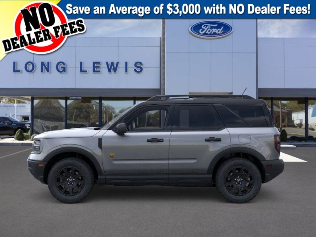Carbonized Gray Metallic 2025 Ford Bronco Sport Badlands 4WD 8-Speed Automatic EcoBoost 2.0L I4 GTDi DOHC Turbocharged VCT 4-Wheel Disc Brakes, 6 Speakers, ABS brakes, Air Conditioning, Alloy wheels, AM/FM radio: SiriusXM, AM/FM Stereo, Auto High-beam Headlights, Auto-dimming Rear-View mirror, Automatic temperature control, B&O Sound System by Bang & Olufsen, Badlands Tech Package, Brake assist, Compass, Connected Navigation, Delay-off headlights, Driver door bin, Driver vanity mirror, Dual front impact airbags, Dual front side impact airbags, Electronic Stability Control, Emergency communication system: SYNC 4 911 Assist, Four wheel independent suspension, Front anti-roll bar, Front Bucket Seats, Front Center Armrest, Front fog lights, Front License Plate Bracket, Front reading lights, Fully automatic headlights, Garage door transmitter, HD Radio, Heated door mirrors, Heated front seats, Heated steering wheel, Illuminated entry, Knee airbag, Leather Trimmed Front Bucket Seats, Low tire pressure warning, Memory seat, Occupant sensing airbag, Outside temperature display, Overhead airbag, Overhead console, Panic alarm, Passenger door bin, Passenger vanity mirror, Power door mirrors, Power driver seat, Power passenger seat, Power steering, Power windows, Radio data system, Rear anti-roll bar, Rear reading lights, Rear seat center armrest, Rear window defroster, Rear window wiper, Remote keyless entry, Security system, SiriusXM, Speed control, Speed-sensing steering, Speed-Sensitive Wipers, Split folding rear seat, Steering wheel mounted audio controls, SYNC 4 w/Enhanced Voice Recognition, Tachometer, Telescoping steering wheel, Tilt steering wheel, Traction control, Trip computer, Variably intermittent wipers, Wheels: 17" Matte Black-Painted Aluminum.