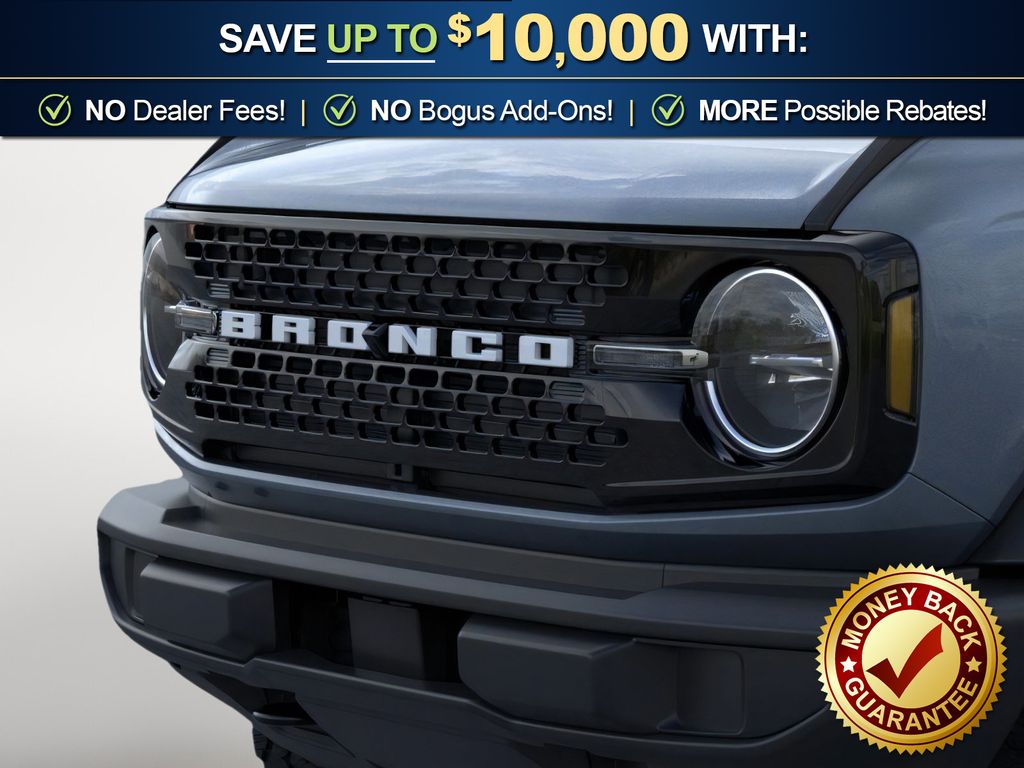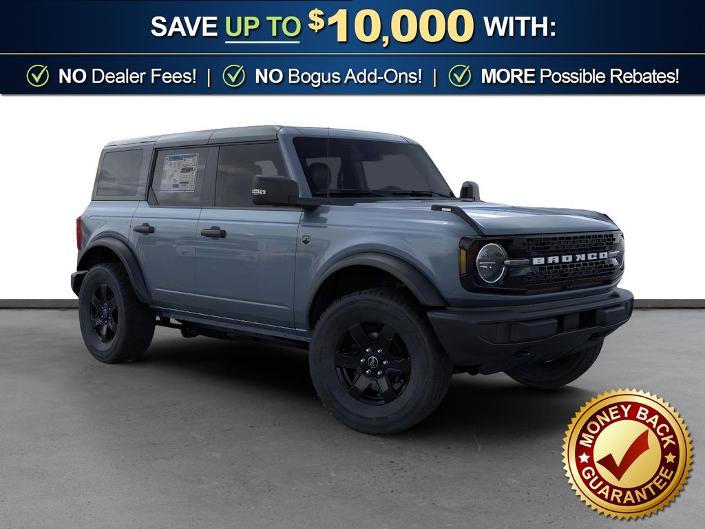 Dealer Discount of $1,436 off MSRP Azure Gray Metallic Tri-Coat 2025 Ford Bronco Big Bend fctp 4WD 10-Speed Automatic 2.3L EcoBoost I-4 2-Door Intelligent Access w/Lock/Unlock, 4-Wheel Disc Brakes, 4.46 Axle Ratio, 7 Speakers, ABS brakes, Air Conditioning, Alloy wheels, AM/FM radio: SiriusXM with 360L, AM/FM Stereo, Ambient Footwell Lighting, Auto High-Beam Headlamps, Auto High-beam Headlights, Black Appearance Package, Black Molded-In-Color Door Handles, Black Molded-In-Color Fender Flares, Black Molded-In-Color Sideview Mirror Caps, Black-Painted Molded-In-Color Grille, BLIS Blind Spot Information System, Brake assist, Cloth Bucket Seats, Compass, Connected Navigation, Delay-off headlights, Dr & Pass Illuminated Sliding Visor Vanity Mirrors, Driver door bin, Driver vanity mirror, Dual front impact airbags, Dual front side impact airbags, Dual Smart Charging USB Ports, Dual-Zone Electronic Automatic Temperature Control, Electronic Stability Control, Emergency communication system: 911 Assist, Equipment Group 222A Mid Package, Exterior Parking Camera Rear, Front anti-roll bar, Front Bucket Seats, Front Center Armrest, Front License Plate Bracket, Front reading lights, Front Row Heated Seats, Front wheel independent suspension, Fully automatic headlights, Hard Top Sound Deadening Headliner, Heated door mirrors, Illuminated entry, Integrated roll-over protection, Internet access capable: FordPass Connect, Lane-Keeping System, Leather Shift Knob, Low tire pressure warning, Occupant sensing airbag, Outside temperature display, Overhead airbag, Overhead console, Panic alarm, Passenger door bin, Passenger vanity mirror, Power door mirrors, Power Outlet - Back Side of Center Floor Console, Power steering, Power windows, Pre-Collision Assist w/Automatic Emergency Braking, Radio data system, Rear Parking Sensors, Rear-View Camera, Rear-Window Defroster & Washer, Remote keyless entry, Security system, Shadow Black Painted Hard Top, SiriusXM w/360L, Speed control, Split folding rear seat, Steering wheel mounted audio controls, SYNC 4, Tachometer, Telescoping steering wheel, Tilt steering wheel, Traction control, Trip computer, Variably intermittent wipers, Wheels: 17" Carbonized Gray-Painted Aluminum. Price includes: $2750 - Retail Customer Cash. Exp. 04/30/2026 $750 - Retail Bonus Cash. Exp. 04/30/2026