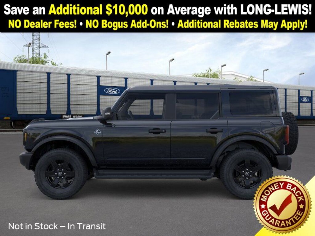 Dealer Discount of $3,279 off MSRP Shadow Black 2025 Ford Bronco Outer Banks 4WD 10-Speed Automatic 2.7L EcoBoost V6 18" Bright Machined Aluminum Wheels, 3.73 Axle Ratio, 4-Wheel Disc Brakes, 7 Speakers, ABS brakes, Air Conditioning, Alloy wheels, AM/FM radio: SiriusXM with 360L, AM/FM Stereo, Auto High-beam Headlights, Auto-dimming Rear-View mirror, Automatic temperature control, Black Appearance Package, Black Molded-In-Color Door Handles, Black Molded-In-Color Fender Flares, Black Molded-In-Color Sideview Mirror Caps, Black-Painted Molded-In-Color Grille, Brake assist, Compass, Connected Navigation, Delay-off headlights, Driver door bin, Driver vanity mirror, Dual front impact airbags, Dual front side impact airbags, Electronic Stability Control, Emergency communication system: 911 Assist, Exterior Parking Camera Rear, Front anti-roll bar, Front Bucket Seats, Front Center Armrest, Front dual zone A/C, Front fog lights, Front License Plate Bracket, Front reading lights, Front wheel independent suspension, Fully automatic headlights, Hard Top Sound Deadening Headliner, Heated door mirrors, Heated front seats, Heated Leather-Trimmed/Vinyl Bucket Seats, Heated steering wheel, Illuminated entry, Integrated roll-over protection, Leather Shift Knob, Low tire pressure warning, Navigation system: Connected Navigation, Occupant sensing airbag, Outside temperature display, Overhead airbag, Overhead console, Panic alarm, Passenger door bin, Passenger vanity mirror, Power door mirrors, Power driver seat, Power passenger seat, Power steering, Power windows, Radio data system, Rear seat center armrest, Rear-Window Defroster & Washer, Remote keyless entry, Security system, Shadow Black-Painted Hard Top, SiriusXM w/360L, Speed control, Split folding rear seat, Steering wheel mounted audio controls, SYNC 4, Tachometer, Telescoping steering wheel, Tilt steering wheel, Traction control, Trip computer, Variably intermittent wipers, Voltmeter.