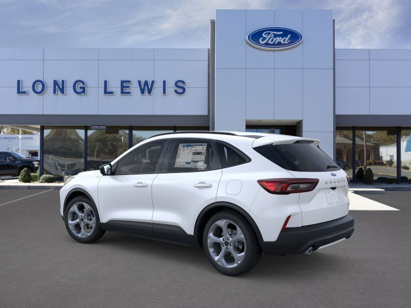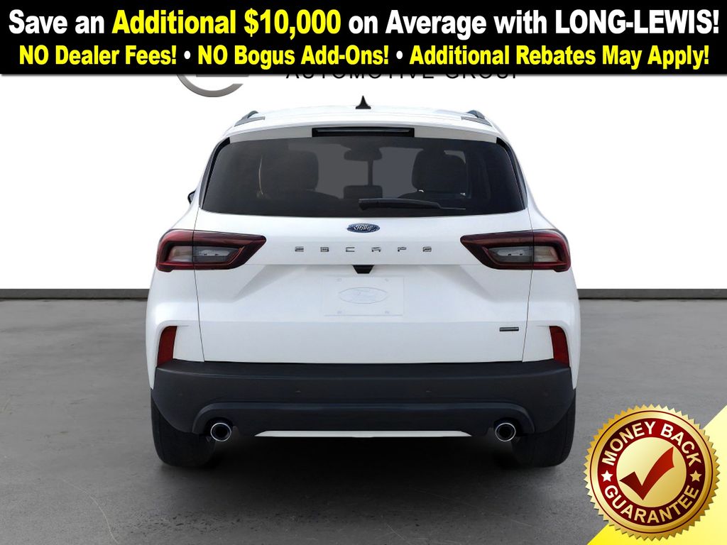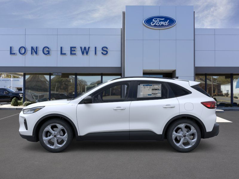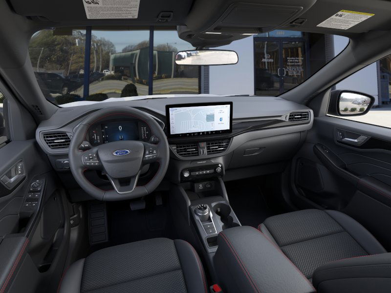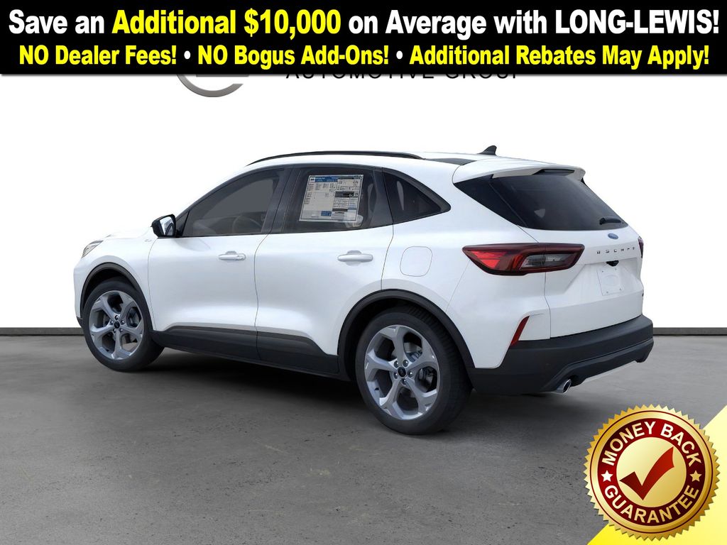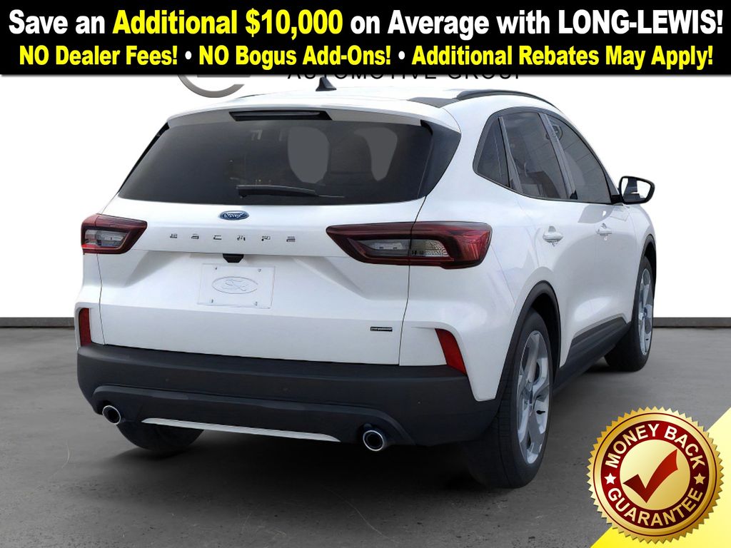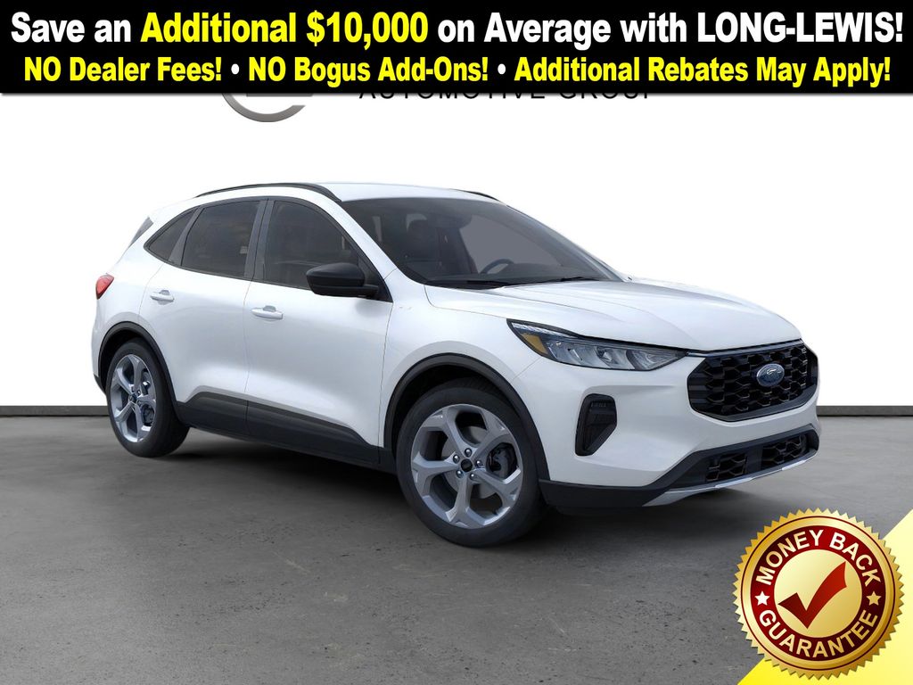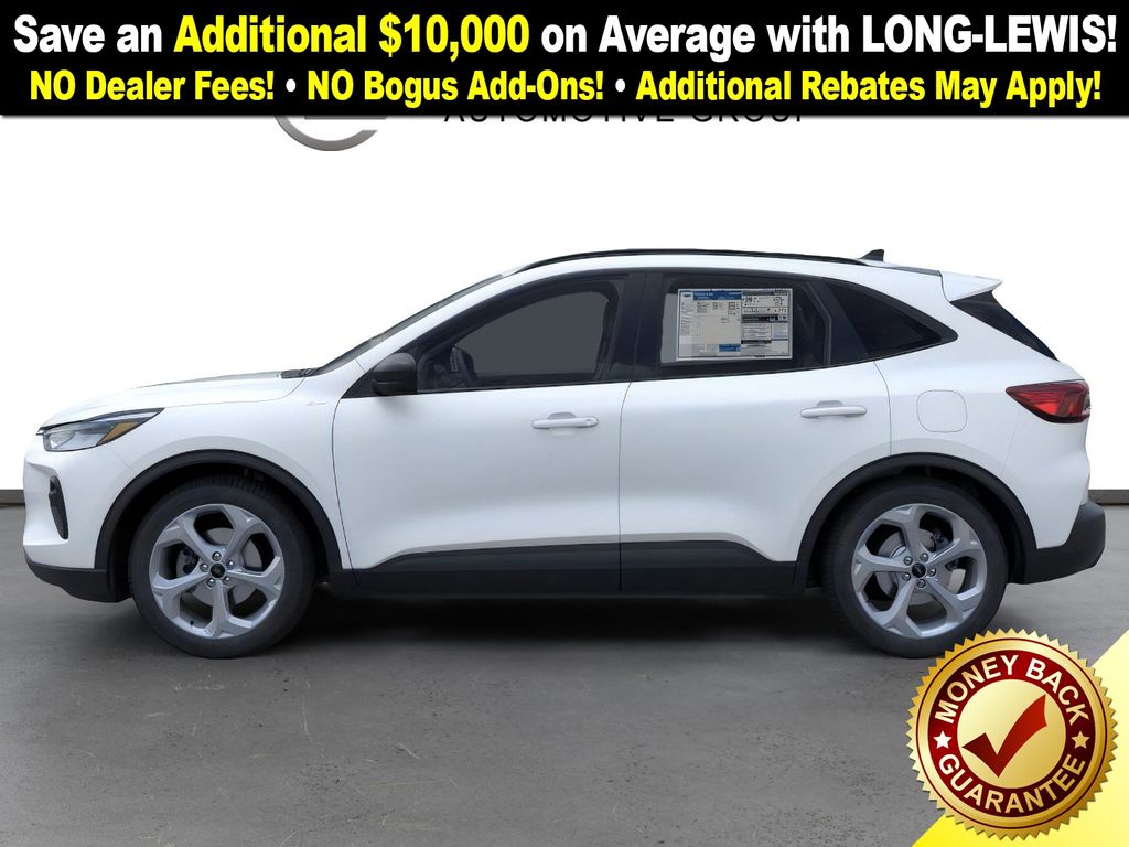 Star White Metallic Tri-Coat 2025 Ford Escape Hybrid ST-Line fctp FWD eCVT 2.5L iVCT 2.5L iVCT, 3.81 Axle Ratio, 4-Wheel Disc Brakes, 6 Speakers, ABS brakes, Adaptive Cruise Control w/Stop-and-Go, Air Conditioning, Alloy wheels, AM/FM radio: SiriusXM, AM/FM Stereo, Auto High-beam Headlights, Automatic temperature control, Brake assist, Bumpers: body-color, Cold Weather Package, Compass, Connected Navigation, Delay-off headlights, Driver door bin, Driver vanity mirror, Dual front impact airbags, Dual front side impact airbags, Electronic Stability Control, Emergency communication system: SYNC 4 911 Assist, Ford Co-Pilot360 Assist+, FordPass Connect, Four wheel independent suspension, Front anti-roll bar, Front Bucket Seats, Front Center Armrest, Front dual zone A/C, Front License Plate Bracket, Front reading lights, Fully automatic headlights, Heated Front Row Seats, Heated Sideview Mirrors, Heated Steering Wheel, Illuminated entry, Intersection Assist, Knee airbag, Low tire pressure warning, Occupant sensing airbag, Outside temperature display, Overhead airbag, Overhead console, Panic alarm, Passenger door bin, Passenger vanity mirror, Power door mirrors, Power driver seat, Power Liftgate, Power steering, Power windows, Predictive Speed Assist, Radio data system, Rear anti-roll bar, Rear Parking Sensor, Rear reading lights, Rear seat center armrest, Rear window defroster, Rear window wiper, Rear-View Camera, Remote keyless entry, Remote Starter System, Speed control, Speed-sensing steering, Speed-Sensitive Wipers, Split folding rear seat, Spoiler, Sport steering wheel, Steering wheel mounted audio controls, SYNC 4, SYNC 4 w/Enhanced Voice Recognition, Tachometer, Tech Pack #1, Telescoping steering wheel, Tilt steering wheel, Traction control, Trip computer, Variably intermittent wipers, Vinyl/Cloth Front Sport Contour Bucket Seats, Wheels: 18" Rock Metallic Painted Aluminum, 2.5L iVCT.