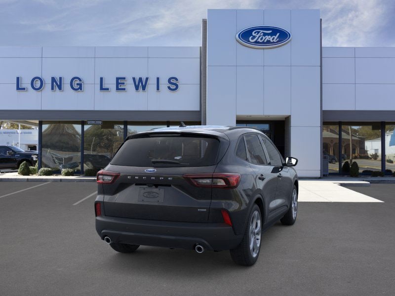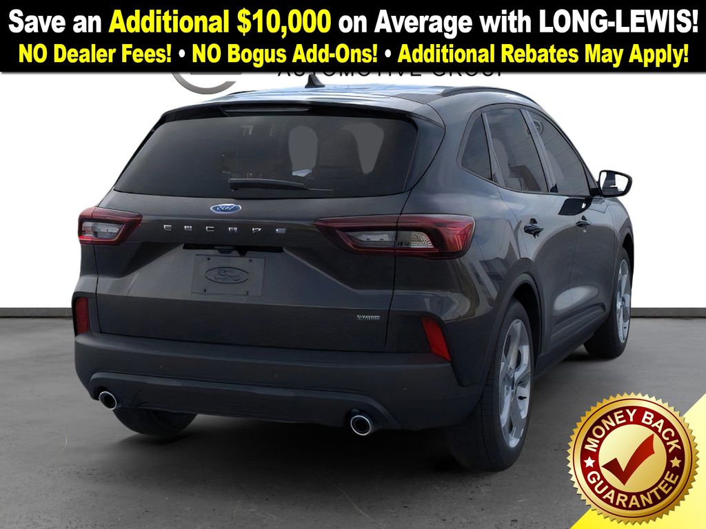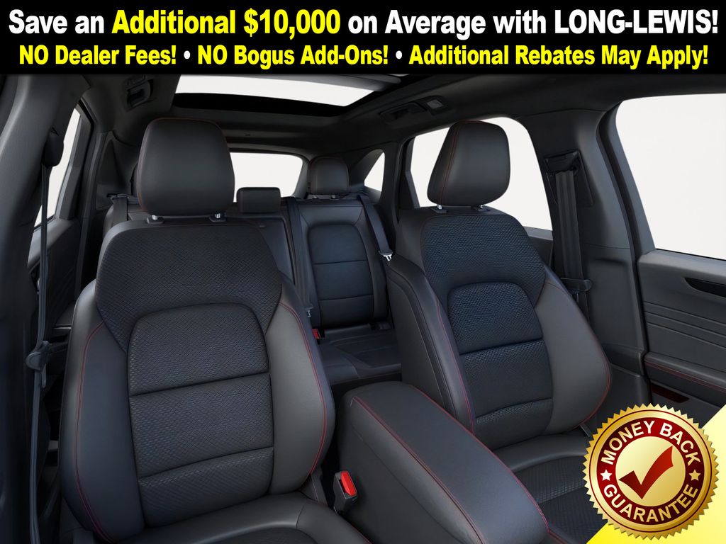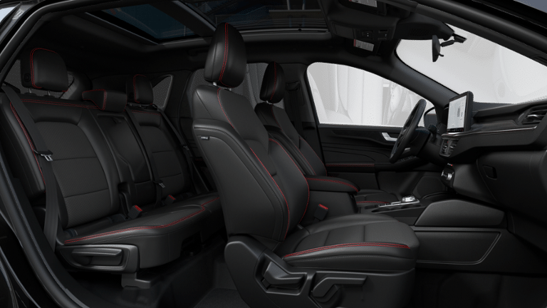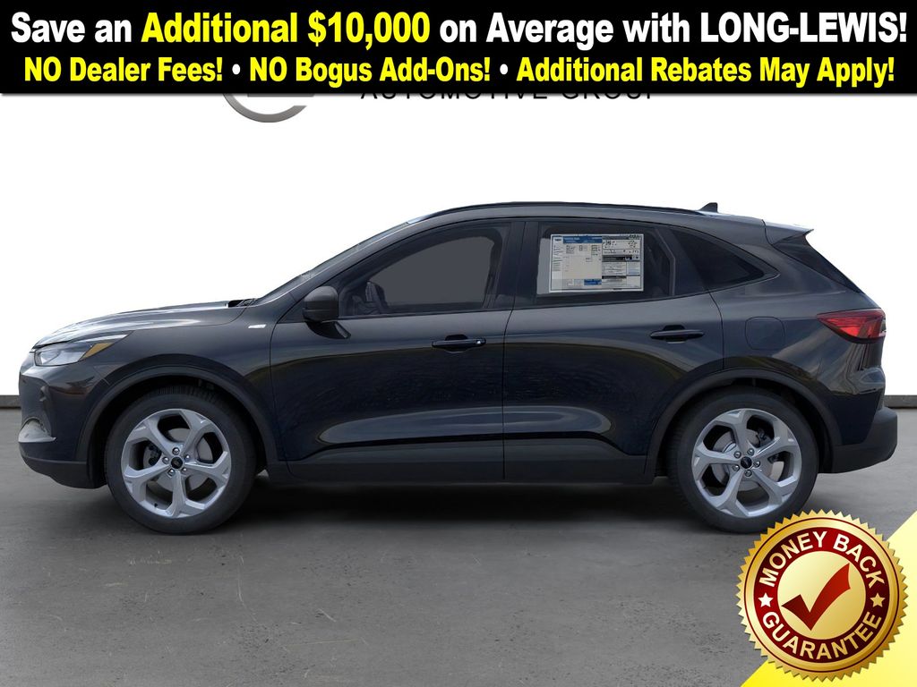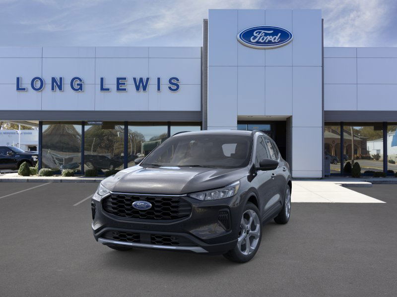 Agate Black Metallic 2025 Ford Escape Hybrid ST-Line fctp FWD eCVT 2.5L iVCT 2.5L iVCT, 3.81 Axle Ratio, 4-Wheel Disc Brakes, 6 Speakers, ABS brakes, Adaptive Cruise Control w/Stop-and-Go, Air Conditioning, Alloy wheels, AM/FM radio: SiriusXM, AM/FM Stereo, Auto High-beam Headlights, Automatic temperature control, Black Roof-Rack Side Rails, Brake assist, Bumpers: body-color, Cold Weather Package, Compass, Connected Navigation, Delay-off headlights, Driver door bin, Driver vanity mirror, Dual front impact airbags, Dual front side impact airbags, Electronic Stability Control, Emergency communication system: SYNC 4 911 Assist, Ford Co-Pilot360 Assist+, FordPass Connect, Four wheel independent suspension, Front anti-roll bar, Front Bucket Seats, Front Center Armrest, Front dual zone A/C, Front License Plate Bracket, Front reading lights, Fully automatic headlights, Heated Front Row Seats, Heated Sideview Mirrors, Heated Steering Wheel, Illuminated entry, Intersection Assist, Knee airbag, Low tire pressure warning, Occupant sensing airbag, Outside temperature display, Overhead airbag, Overhead console, Panic alarm, Panoramic Vista Roof, Passenger door bin, Passenger vanity mirror, Power door mirrors, Power driver seat, Power Liftgate, Power steering, Power windows, Predictive Speed Assist, Radio data system, Rear anti-roll bar, Rear Parking Sensor, Rear reading lights, Rear seat center armrest, Rear window defroster, Rear window wiper, Rear-View Camera, Remote keyless entry, Remote Starter System, Speed control, Speed-sensing steering, Speed-Sensitive Wipers, Split folding rear seat, Spoiler, Sport steering wheel, Steering wheel mounted audio controls, SYNC 4, SYNC 4 w/Enhanced Voice Recognition, Tachometer, Tech Pack #1, Telescoping steering wheel, Tilt steering wheel, Traction control, Trip computer, Variably intermittent wipers, Vinyl/Cloth Front Sport Contour Bucket Seats, Wheels: 18" Rock Metallic Painted Aluminum, 2.5L iVCT.