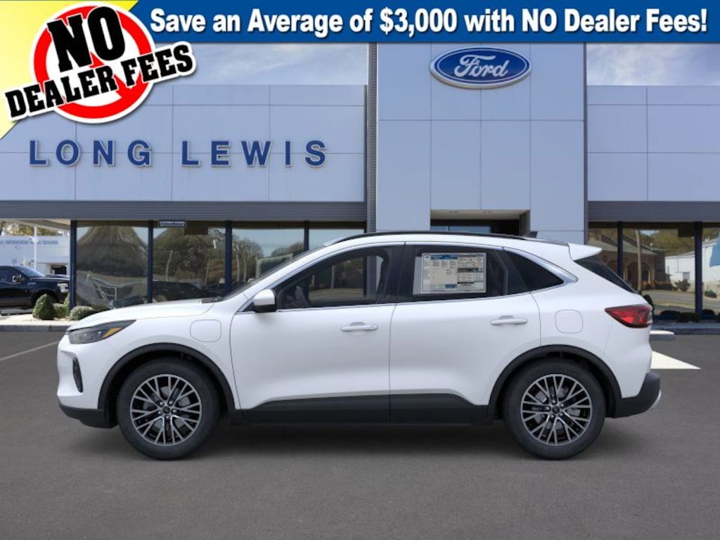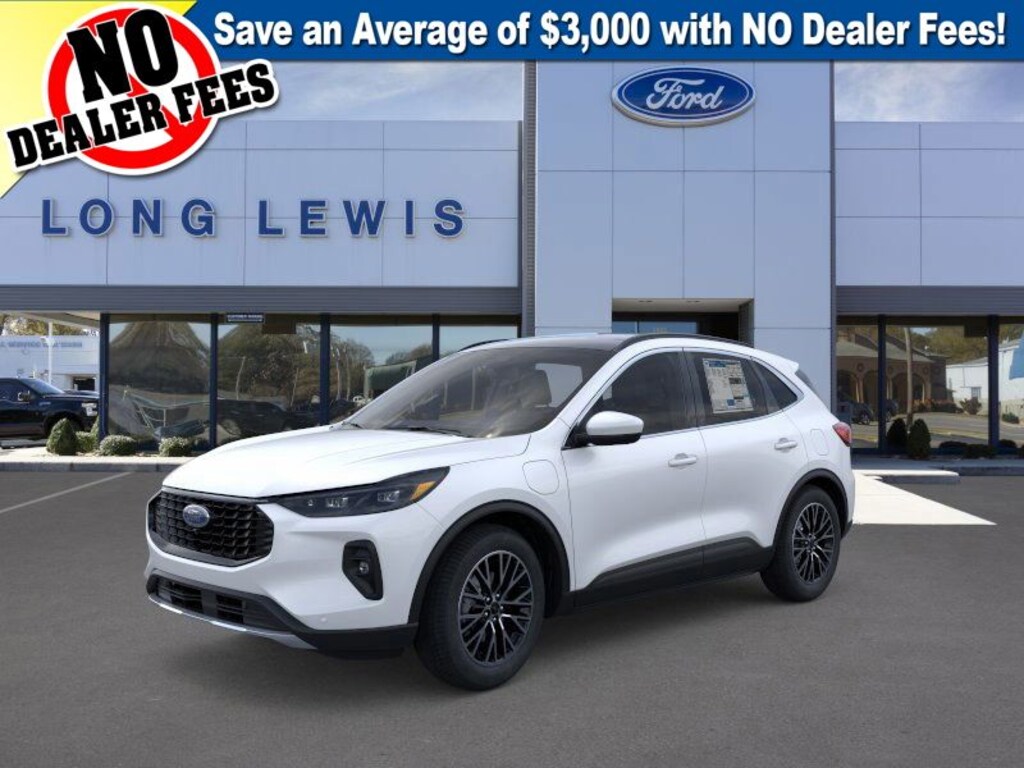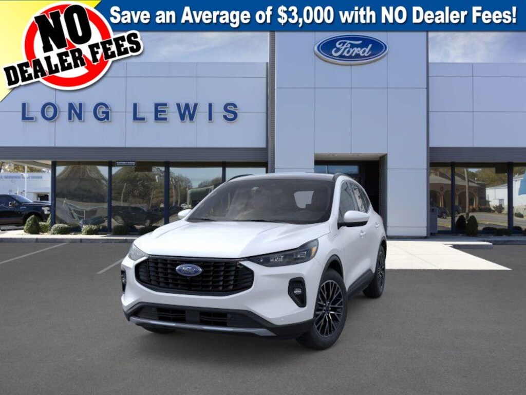 Star White Metallic Tri-Coat 2025 Ford Escape Plug-In Hybrid FWD eCVT 2.5L iVCT 2.5L iVCT, 10-Way Power Driver's Seat, 12.3" Productivity Screen in Instrument Cluster, 2.91 Axle Ratio, 360-Degree Camera w/Split View, 4-Wheel Disc Brakes, 6 Speakers, 6-Way Power Passenger Seat, ABS brakes, Air Conditioning, Alloy wheels, AM/FM radio: SiriusXM, AM/FM Stereo, Auto High-beam Headlights, Auto-Dimming Rear-View Mirror, Automatic temperature control, Black Roof-Rack Side Rails, Brake assist, Bumpers: body-color, Compass, Delay-off headlights, Driver door bin, Driver vanity mirror, Dual front impact airbags, Dual front side impact airbags, Electronic Stability Control, Emergency communication system: SYNC 4 911 Assist, FordPass Connect, Four wheel independent suspension, Front anti-roll bar, Front Bucket Seats, Front Center Armrest, Front dual zone A/C, Front fog lights, Front License Plate Bracket, Front Parking Sensors, Front reading lights, Fully automatic headlights, HD Radio, Head-Up Display, Heated ActiveX-Trimmed Front Sport Contour Seats, Heated door mirrors, Heated front seats, Heated steering wheel, Heated Vinyl/Cloth Front Sport Contour Bucket Seats, Illuminated entry, Knee airbag, LED Lightbar Headlamps, Low tire pressure warning, Memory Package, Navigation system: Connected Navigation, Occupant sensing airbag, Outside temperature display, Overhead airbag, Overhead console, Panic alarm, Panoramic Vista Roof, Passenger door bin, Passenger vanity mirror, Perimeter Alarm, PHEV Premium Package, Power door mirrors, Power driver seat, Power Liftgate, Power steering, Power windows, Radio data system, Radio: B&O Sound System by Bang & Olufsen, Rear anti-roll bar, Rear reading lights, Rear seat center armrest, Rear window defroster, Rear window wiper, Remote keyless entry, Reverse Brake Assist, Speed control, Speed-sensing steering, Speed-Sensitive Wipers, Split folding rear seat, Spoiler, Steering wheel mounted audio controls, SYNC 4 w/Enhanced Voice Recognition, Telescoping steering wheel, Tilt steering wheel, Traction control, Trip computer, Universal Garage Door Opener (UGDO), Variably intermittent wipers, Wheels: 18" Machined-Face Magnetic Aluminum, Wireless Charging Pad, 2.5L iVCT.