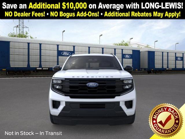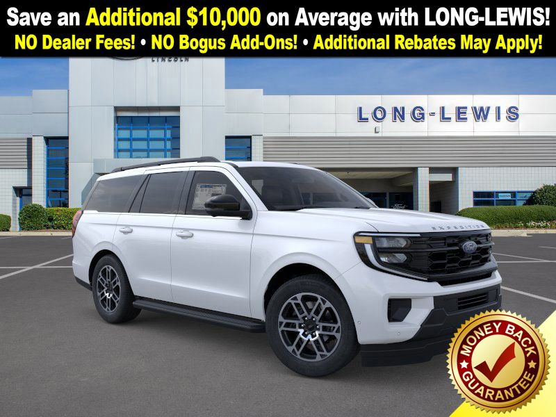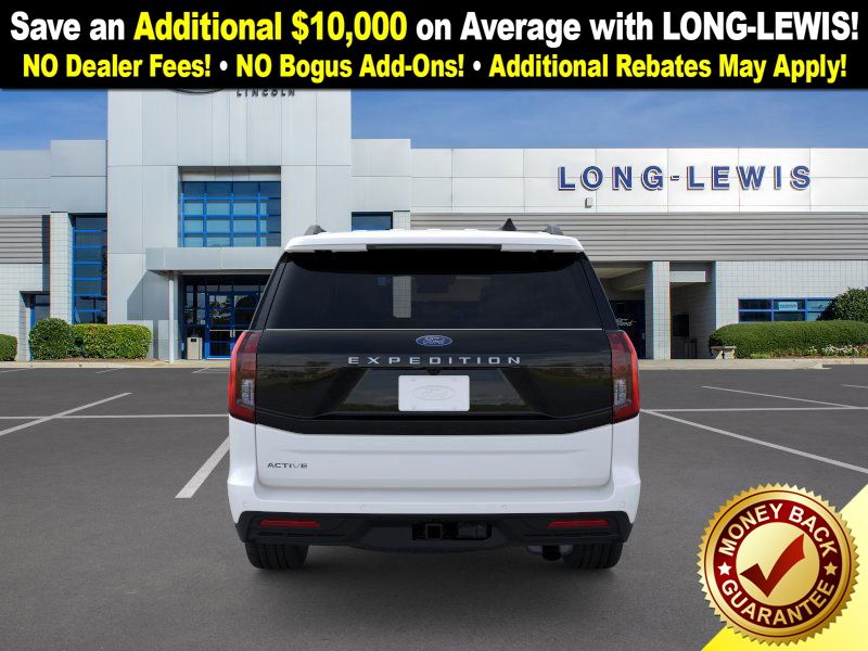 Dealer Discount of $2,709 off MSRP Star White Metallic Tri-Coat 2025 Ford Expedition Active NFT RWD 10-Speed Automatic EcoBoost 3.5L V6 GTDi DOHC 24V Twin Turbocharged 3.31 Axle Ratio, 3rd row seats: split-bench, 4-Wheel Disc Brakes, 6 Speakers, ABS brakes, ActiveX Front Heated Captain's Chairs, Air Conditioning, Alloy wheels, AM/FM radio: SiriusXM with 360L, Apple CarPlay/Android Auto, Auto High-beam Headlights, Auto-dimming Rear-View mirror, Automatic temperature control, Brake assist, Bumpers: body-color, Cloth Front Captain's Chairs, Compass, Delay-off headlights, Driver door bin, Driver vanity mirror, Dual front impact airbags, Dual front side impact airbags, Electronic Stability Control, Emergency communication system: 911 Assist, Exterior Parking Camera Rear, Four wheel independent suspension, Front anti-roll bar, Front Bucket Seats, Front Center Armrest, Front dual zone A/C, Front License Plate Bracket, Front reading lights, Fully automatic headlights, Heated door mirrors, Illuminated entry, Low tire pressure warning, Navigation System, Occupant sensing airbag, Outside temperature display, Overhead airbag, Overhead console, Panic alarm, Passenger door bin, Passenger vanity mirror, Power door mirrors, Power driver seat, Power passenger seat, Power steering, Power windows, Radio data system, Radio: AM/FM Stereo w/MP3 Capable, Rear air conditioning, Rear anti-roll bar, Rear reading lights, Rear window defroster, Rear window wiper, Reclining 3rd row seat, Remote keyless entry, Security system, SiriusXM w/360L, Speed control, Speed-sensing steering, Speed-Sensitive Wipers, Split folding rear seat, Spoiler, Steering wheel mounted audio controls, Tachometer, Telescoping steering wheel, Tilt steering wheel, Traction control, Trip computer, Variably intermittent wipers, Voltmeter, Wheels: 18" Dark Alloy Painted Aluminum.