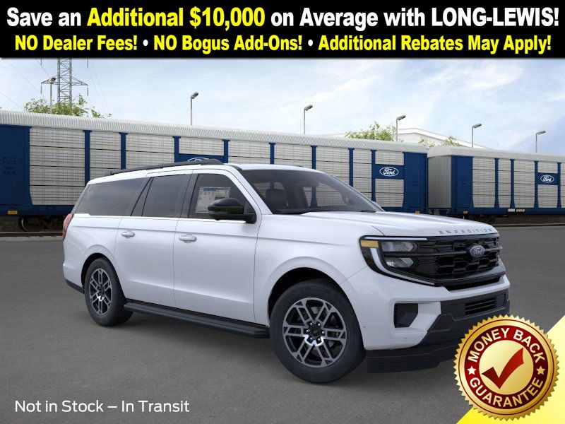 Space Silver Metallic 2025 Ford Expedition Max Active NFT RWD 10-Speed Automatic EcoBoost 3.5L V6 GTDi DOHC 24V Twin Turbocharged 3.31 Axle Ratio, 3rd row seats: split-bench, 4-Wheel Disc Brakes, 6 Speakers, ABS brakes, ActiveX Front Heated Captain's Chairs, Air Conditioning, Alloy wheels, AM/FM radio: SiriusXM with 360L, Apple CarPlay/Android Auto, Auto High-beam Headlights, Auto-dimming Rear-View mirror, Automatic temperature control, Brake assist, Bumpers: body-color, Cloth Front Captain's Chairs, Compass, Delay-off headlights, Driver door bin, Driver vanity mirror, Dual front impact airbags, Dual front side impact airbags, Electronic Stability Control, Emergency communication system: 911 Assist, Exterior Parking Camera Rear, Four wheel independent suspension, Front anti-roll bar, Front Bucket Seats, Front Center Armrest, Front dual zone A/C, Front License Plate Bracket, Front reading lights, Fully automatic headlights, Heated door mirrors, Illuminated entry, Low tire pressure warning, Navigation System, Occupant sensing airbag, Outside temperature display, Overhead airbag, Overhead console, Panic alarm, Passenger door bin, Passenger vanity mirror, Power door mirrors, Power driver seat, Power passenger seat, Power steering, Power windows, Radio data system, Radio: AM/FM Stereo w/MP3 Capable, Rear air conditioning, Rear anti-roll bar, Rear reading lights, Rear window defroster, Rear window wiper, Reclining 3rd row seat, Remote keyless entry, Security system, SiriusXM w/360L, Speed control, Speed-sensing steering, Speed-Sensitive Wipers, Split folding rear seat, Spoiler, Steering wheel mounted audio controls, Tachometer, Telescoping steering wheel, Tilt steering wheel, Traction control, Trip computer, Variably intermittent wipers, Voltmeter, Wheels: 18" Dark Alloy Painted Aluminum.