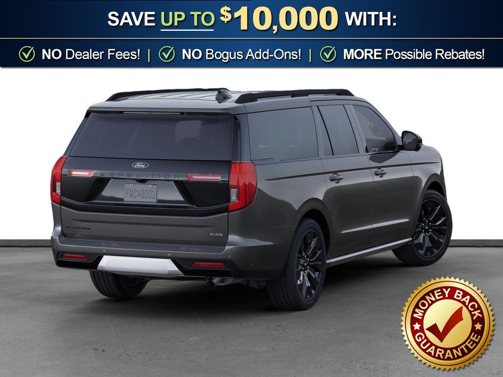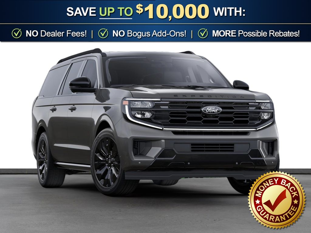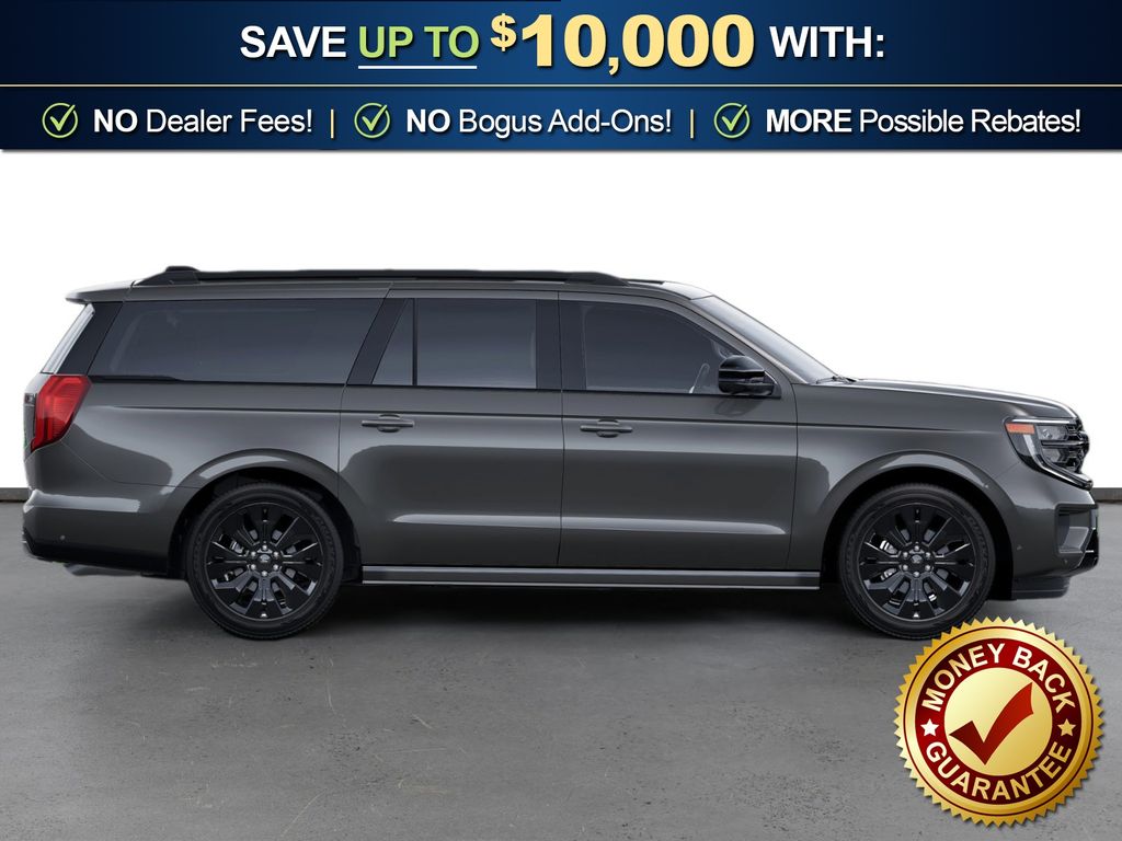 Dealer Discount of $3,572 off MSRP Dark Matter Gray Metallic 2025 Ford Expedition Max Platinum NFT 4WD 10-Speed Automatic EcoBoost 3.5L V6 GTDi DOHC 24V Twin Turbocharged 10 Speakers, 2nd Row Power-Folding Captain's Chairs, 3.73 Axle Ratio, 3rd row seats: split-bench, 4-Wheel Disc Brakes, ABS brakes, Adjustable pedals, Air Conditioning, Alloy wheels, AM/FM radio: SiriusXM with 360L, Apple CarPlay/Android Auto, Auto High-beam Headlights, Auto-dimming door mirrors, Auto-dimming Rear-View mirror, Automatic temperature control, Black Belt Molding, Black Expedition Lettering On Hood, Black Headlamp Bezel w/Ebony Trim Applique, Black Platinum Badge On Tailgate, Black Roof Rails, BlueCruise Equipped (One-Time Purchase), Brake assist, Bumpers: body-color, Carbon Black Front Bumper/Fascia, Compass, Connectivity Package (One-Time Purchase), Delay-off headlights, Driver door bin, Driver vanity mirror, Dual front impact airbags, Dual front side impact airbags, Electronic Stability Control, Emergency communication system: 911 Assist, Engine Sound Enhancer, Equipment Group 600A Standard Package, Exterior Parking Camera Rear, Four wheel independent suspension, Front anti-roll bar, Front Bucket Seats, Front Center Armrest, Front dual zone A/C, Front License Plate Bracket, Front reading lights, Fully automatic headlights, Garage door transmitter, Genuine wood dashboard insert, Genuine wood door panel insert, Heated & Ventilated Leather Front Captain's Chairs, Heated door mirrors, Heated front seats, Heated rear seats, Heated steering wheel, Illuminated entry, Leather steering wheel, Low tire pressure warning, Memory seat, Navigation System, Occupant sensing airbag, Outside temperature display, Overhead airbag, Overhead console, Panic alarm, Passenger door bin, Passenger vanity mirror, Pedal memory, Power door mirrors, Power driver seat, Power moonroof: Vista Roof, Power passenger seat, Power steering, Power windows, Radio data system, Radio: B&O Sound System by Bang & Olufsen, Rain sensing wipers, Rear air conditioning, Rear anti-roll bar, Rear reading lights, Rear Side Windows Laminated Glass, Rear window defroster, Rear window wiper, Reclining 3rd row seat, Remote keyless entry, Security system, Signature Grille Lighting, SiriusXM w/360L, Speed control, Speed-sensing steering, Speed-Sensitive Wipers, Split folding rear seat, Spoiler, Stealth Appearance Package, Steering wheel memory, Steering wheel mounted audio controls, Tachometer, Telescoping steering wheel, Tilt steering wheel, Traction control, Trip computer, Turn signal indicator mirrors, Variably intermittent wipers, Ventilated front seats, Voltmeter, Wheels: 20" Ebony Bright Machined Aluminum, Wheels: 22" Ebony Painted Aluminum.