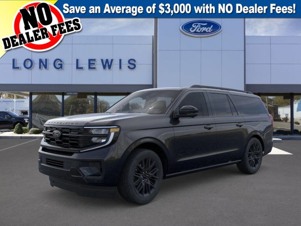 Agate Black Metallic 2025 Ford Expedition Max Platinum fctp 4WD 10-Speed Automatic 3.5L V6 10 Speakers, 2nd Row Power-Folding Captain's Chairs, 3.73 Axle Ratio, 3rd row seats: split-bench, 4-Wheel Disc Brakes, ABS brakes, Adjustable pedals, Air Conditioning, Alloy wheels, AM/FM radio: SiriusXM with 360L, Apple CarPlay/Android Auto, Auto High-beam Headlights, Auto-dimming door mirrors, Auto-dimming Rear-View mirror, Automatic temperature control, Black Belt Molding, Black Expedition Lettering On Hood, Black Headlamp Bezel w/Ebony Trim Applique, Black Platinum Badge On Tailgate, Black Roof Rails, Brake assist, Bumpers: body-color, Carbon Black Front Bumper/Fascia, Compass, Continuous Control Damping Suspension, Delay-off headlights, Driver door bin, Driver vanity mirror, Driver's Package, Dual front impact airbags, Dual front side impact airbags, Electronic Stability Control, Emergency communication system: 911 Assist, Engine Sound Enhancer, Exterior Parking Camera Rear, Four wheel independent suspension, Front anti-roll bar, Front Bucket Seats, Front Center Armrest, Front dual zone A/C, Front License Plate Bracket, Front reading lights, Fully automatic headlights, Garage door transmitter, Genuine wood dashboard insert, Genuine wood door panel insert, Heated & Ventilated Leather Front Captain's Chairs, Heated door mirrors, Heated front seats, Heated rear seats, Heated steering wheel, High Flow Exhaust System, Illuminated entry, Leather steering wheel, Low tire pressure warning, Memory seat, Multicontour Active Motion Lthr Frnt Captains Chairs, Navigation System, Occupant sensing airbag, Outside temperature display, Overhead airbag, Overhead console, Panic alarm, Passenger door bin, Passenger vanity mirror, Pedal memory, Power door mirrors, Power driver seat, Power moonroof: Vista Roof, Power passenger seat, Power steering, Power windows, Radio data system, Radio: B&O Sound System by Bang & Olufsen, Radio: B&O Unleashed Sound System by Bang & Olufsen, Rain sensing wipers, Rear air conditioning, Rear anti-roll bar, Rear reading lights, Rear Side Windows Laminated Glass, Rear window defroster, Rear window wiper, Reclining 3rd row seat, Red Brake Calipers, Remote keyless entry, Security system, Signature Grille Lighting, SiriusXM w/360L, Speed control, Speed-sensing steering, Speed-Sensitive Wipers, Split folding rear seat, Spoiler, Stealth Appearance Package, Stealth Performance Package, Steering wheel memory, Steering wheel mounted audio controls, Tachometer, Telescoping steering wheel, Tilt steering wheel, Traction control, Trip computer, Turn signal indicator mirrors, Variably intermittent wipers, Ventilated front seats, Voltmeter, Wheels: 20" Ebony Bright Machined Aluminum, Wheels: 22" Magnetite Painted Aluminum.