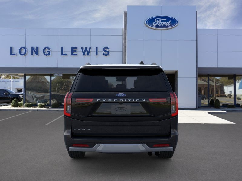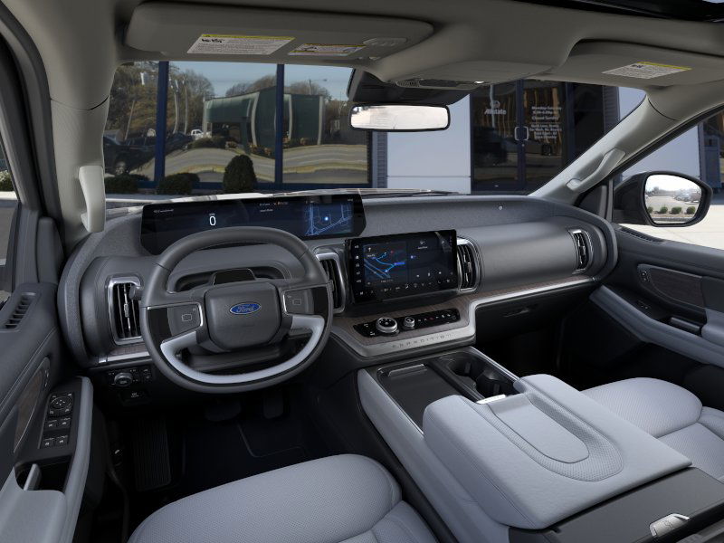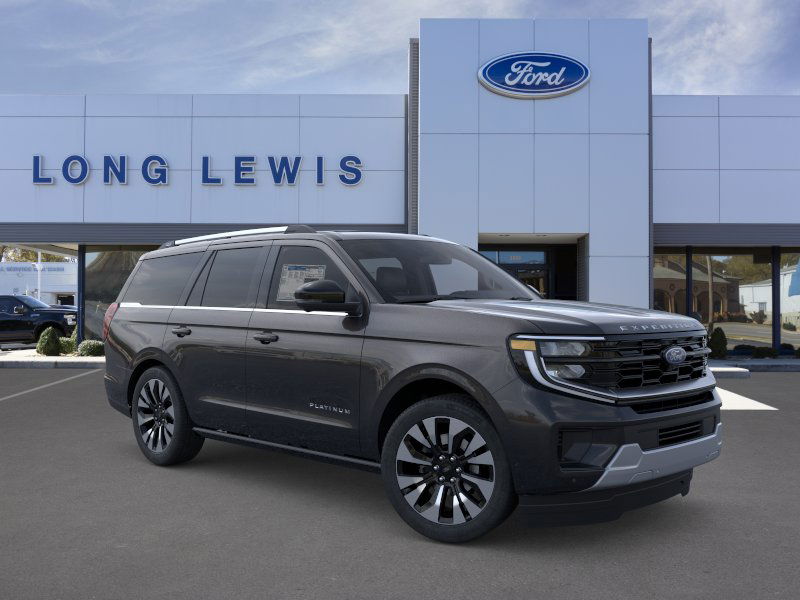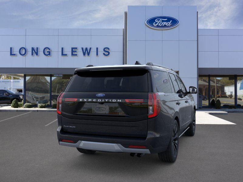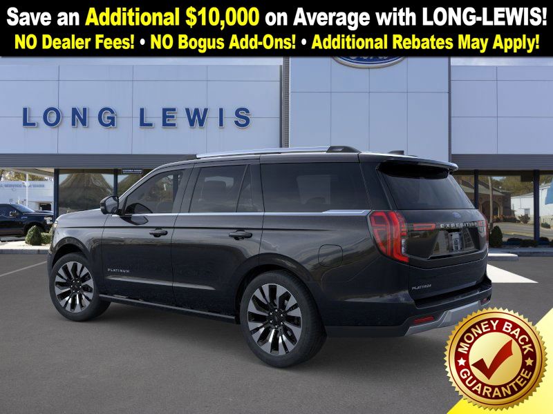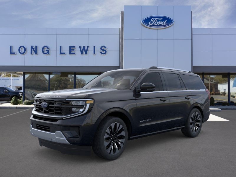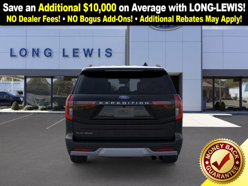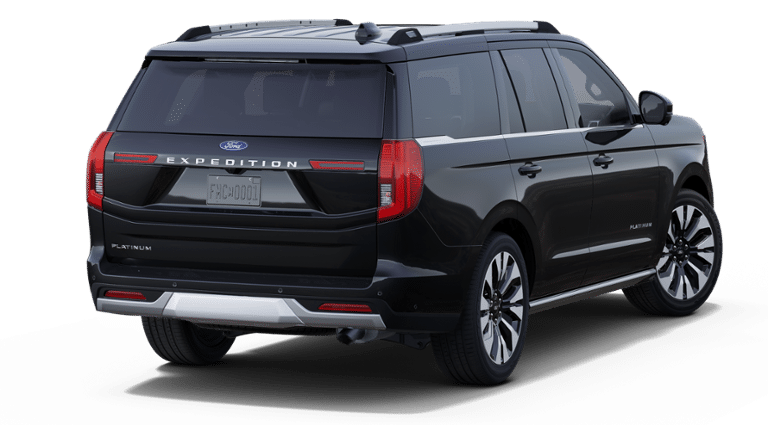 Agate Black Metallic 2025 Ford Expedition Platinum NFT 4WD 10-Speed Automatic 3.5L V6 4WD, 10 Speakers, 2nd Row Power-Folding Captain's Chairs, 3.73 Axle Ratio, 3rd row seats: split-bench, 4-Wheel Disc Brakes, ABS brakes, Adjustable pedals, Air Conditioning, Alloy wheels, AM/FM radio: SiriusXM with 360L, Apple CarPlay/Android Auto, Auto High-beam Headlights, Auto-dimming door mirrors, Auto-dimming Rear-View mirror, Automatic temperature control, Black Headlamp Bezel w/Satin Trim Applique, BlueCruise Equipped (1-Year Plan), Brake assist, Bumpers: body-color, Carbon Black Front Bumper w/Lit Grille Bar, Compass, Continuous Control Damping Suspension, Delay-off headlights, Driver door bin, Driver vanity mirror, Driver's Package, Dual front impact airbags, Dual front side impact airbags, Electronic Stability Control, Emergency communication system: 911 Assist, Engine Sound Enhancer, Exterior Parking Camera Rear, Four wheel independent suspension, Front anti-roll bar, Front Bucket Seats, Front Center Armrest, Front Door Scuff Plates w/Met Insert & Bright Rear, Front dual zone A/C, Front License Plate Bracket, Front reading lights, Fully automatic headlights, Garage door transmitter, Genuine wood dashboard insert, Genuine wood door panel insert, Heated & Ventilated Leather Front Captain's Chairs, Heated door mirrors, Heated front seats, Heated rear seats, Heated steering wheel, High Flow Exhaust System, Illuminated entry, Leather steering wheel, Low tire pressure warning, Memory seat, Multicontour Active Motion Lthr Frnt Captains Chairs, Navigation System, Occupant sensing airbag, Outside temperature display, Overhead airbag, Overhead console, Panic alarm, Passenger door bin, Passenger vanity mirror, Pedal memory, Platinum Ultimate Interior Package, Platinum Ultimate Package, Polished Stainless Steel Beltline Molding, Power door mirrors, Power driver seat, Power moonroof: Vista Roof, Power passenger seat, Power steering, Power windows, Radio data system, Radio: B&O Sound System by Bang & Olufsen, Radio: B&O Unleashed Sound System by Bang & Olufsen, Rain sensing wipers, Rear air conditioning, Rear anti-roll bar, Rear reading lights, Rear Seat Radio Controls, Rear Side Windows Laminated Glass, Rear window defroster, Rear window wiper, Reclining 3rd row seat, Remote keyless entry, Satin Aluminum Expedition Lettering On Side & Hood, Satin Aluminum Platinum Badge On Tailgate, Security system, Signature Grille Lighting, SiriusXM w/360L, Speed control, Speed-sensing steering, Speed-Sensitive Wipers, Split folding rear seat, Spoiler, Steering wheel memory, Steering wheel mounted audio controls, Tachometer, Telescoping steering wheel, Tilt steering wheel, Traction control, Trip computer, Turn signal indicator mirrors, Variably intermittent wipers, Ventilated front seats, Voltmeter, Wheels: 20" Ebony Bright Machined Aluminum, Wheels: 22" Ebony Bright Machined Face Aluminum, 4WD.