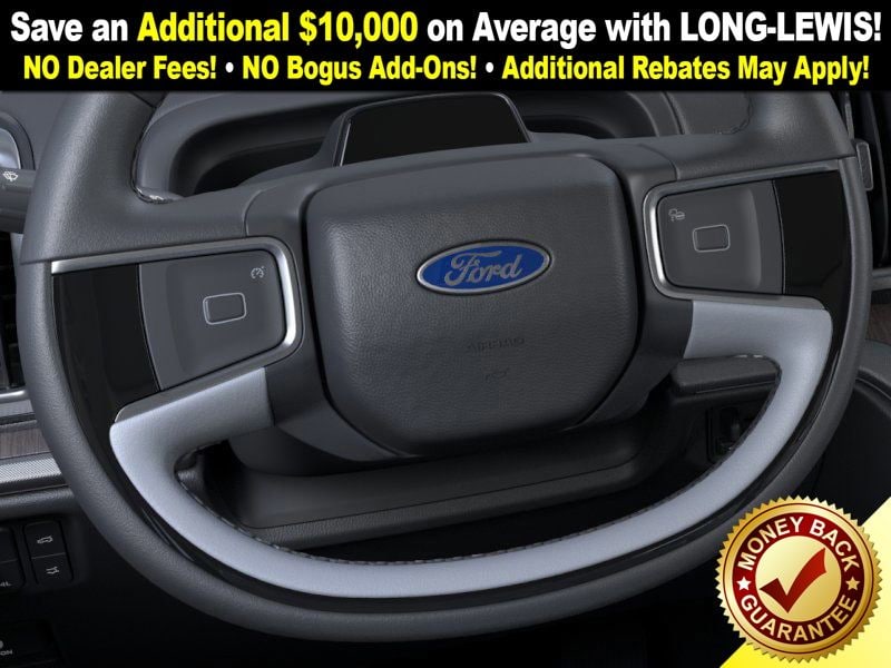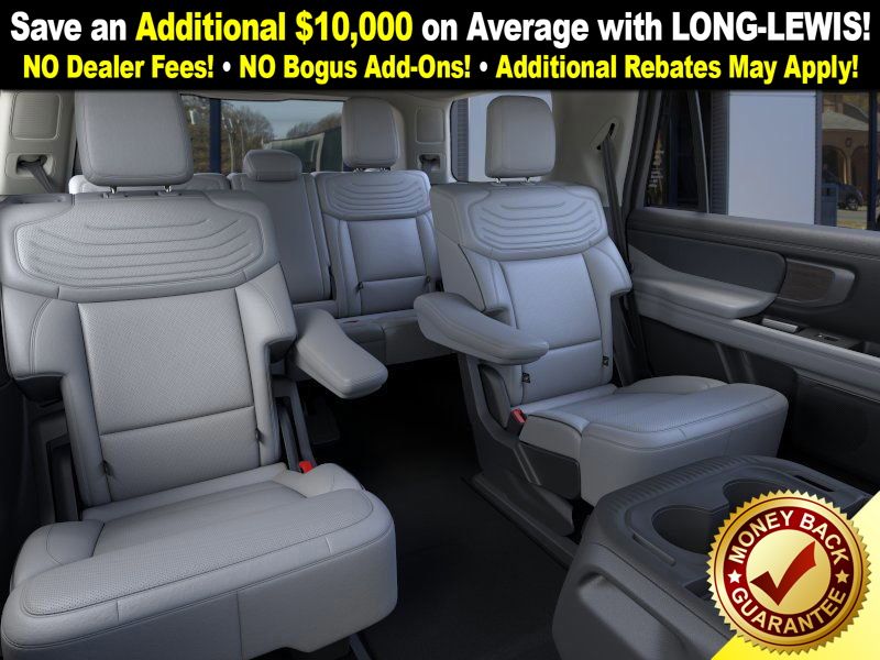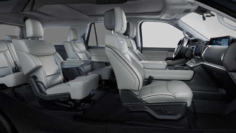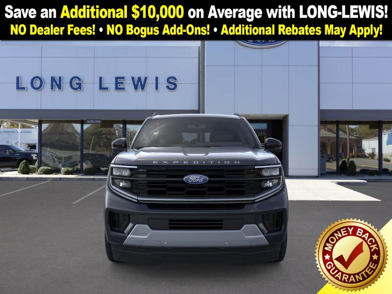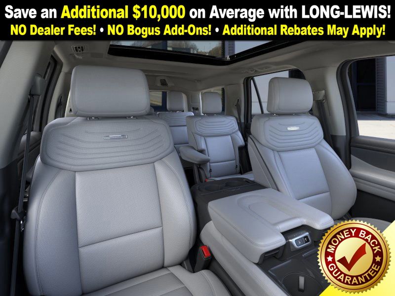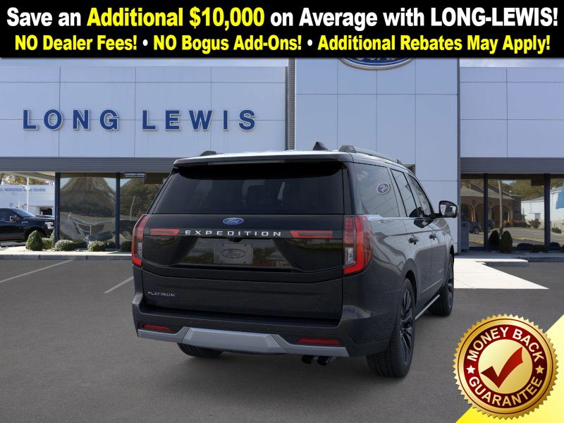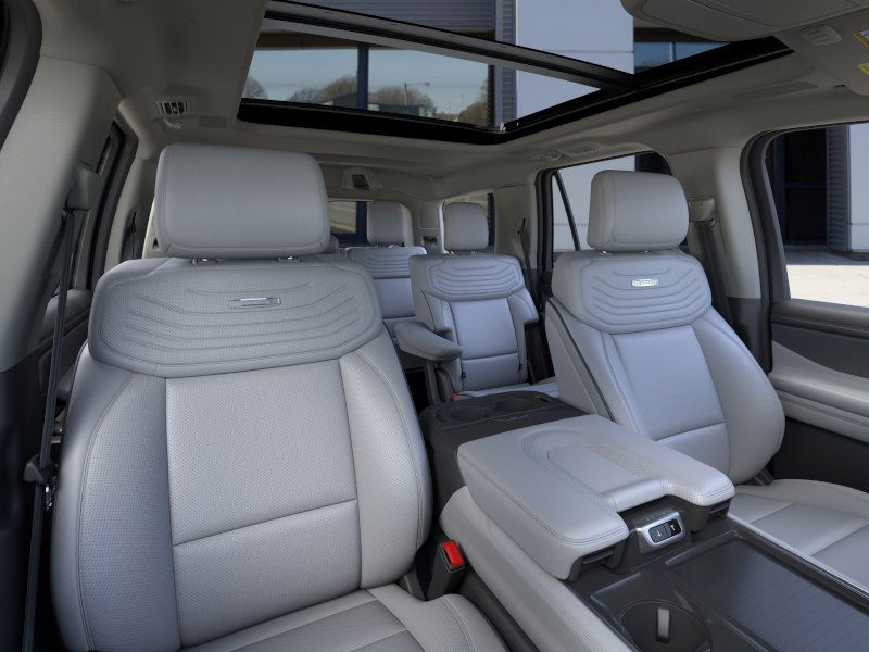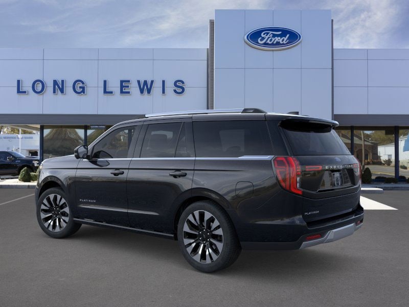 Agate Black Metallic 2025 Ford Expedition Platinum NFT 4WD 10-Speed Automatic 3.5L V6 4WD, 10 Speakers, 2nd Row Power-Folding Captain's Chairs, 3.73 Axle Ratio, 3rd row seats: split-bench, 4-Wheel Disc Brakes, ABS brakes, Adjustable pedals, Air Conditioning, Alloy wheels, AM/FM radio: SiriusXM with 360L, Apple CarPlay/Android Auto, Auto High-beam Headlights, Auto-dimming door mirrors, Auto-dimming Rear-View mirror, Automatic temperature control, Black Headlamp Bezel w/Satin Trim Applique, BlueCruise Equipped (1-Year Plan), Brake assist, Bumpers: body-color, Carbon Black Front Bumper w/Lit Grille Bar, Compass, Continuous Control Damping Suspension, Delay-off headlights, Driver door bin, Driver vanity mirror, Driver's Package, Dual front impact airbags, Dual front side impact airbags, Electronic Stability Control, Emergency communication system: 911 Assist, Engine Sound Enhancer, Exterior Parking Camera Rear, Four wheel independent suspension, Front anti-roll bar, Front Bucket Seats, Front Center Armrest, Front Door Scuff Plates w/Met Insert & Bright Rear, Front dual zone A/C, Front License Plate Bracket, Front reading lights, Fully automatic headlights, Garage door transmitter, Genuine wood dashboard insert, Genuine wood door panel insert, Heated & Ventilated Leather Front Captain's Chairs, Heated door mirrors, Heated front seats, Heated rear seats, Heated steering wheel, High Flow Exhaust System, Illuminated entry, Leather steering wheel, Low tire pressure warning, Memory seat, Multicontour Active Motion Lthr Frnt Captains Chairs, Navigation System, Occupant sensing airbag, Outside temperature display, Overhead airbag, Overhead console, Panic alarm, Passenger door bin, Passenger vanity mirror, Pedal memory, Platinum Ultimate Interior Package, Platinum Ultimate Package, Polished Stainless Steel Beltline Molding, Power door mirrors, Power driver seat, Power moonroof: Vista Roof, Power passenger seat, Power steering, Power windows, Radio data system, Radio: B&O Sound System by Bang & Olufsen, Radio: B&O Unleashed Sound System by Bang & Olufsen, Rain sensing wipers, Rear air conditioning, Rear anti-roll bar, Rear reading lights, Rear Seat Radio Controls, Rear Side Windows Laminated Glass, Rear window defroster, Rear window wiper, Reclining 3rd row seat, Remote keyless entry, Satin Aluminum Expedition Lettering On Side & Hood, Satin Aluminum Platinum Badge On Tailgate, Security system, Signature Grille Lighting, SiriusXM w/360L, Speed control, Speed-sensing steering, Speed-Sensitive Wipers, Split folding rear seat, Spoiler, Steering wheel memory, Steering wheel mounted audio controls, Tachometer, Telescoping steering wheel, Tilt steering wheel, Traction control, Trip computer, Turn signal indicator mirrors, Variably intermittent wipers, Ventilated front seats, Voltmeter, Wheels: 20" Ebony Bright Machined Aluminum, Wheels: 22" Ebony Bright Machined Face Aluminum, 4WD.
