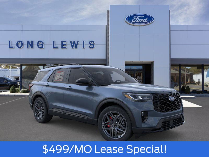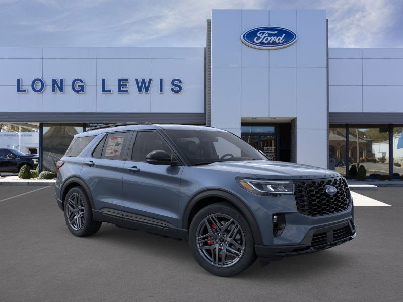 Vapor Blue Metallic 2025 Ford Explorer ST fctp 4WD 10-Speed Automatic 3.0L EcoBoost V6 4WD, 10 Speakers, 3.58 Non-Limited Slip Rear Axle, 3rd row seats: bench, 4-Wheel Disc Brakes, ABS brakes, Air Conditioning, Alloy wheels, AM/FM radio: SiriusXM with 360L, Apple CarPlay/Android Auto, Auto High-beam Headlights, Auto-dimming door mirrors, Auto-dimming Rear-View mirror, Automatic temperature control, B&O Sound System by Bang & Olufsen, Brake assist, Bumpers: body-color, Compass, Delay-off headlights, Driver door bin, Driver vanity mirror, Dual front impact airbags, Dual front side impact airbags, Electronic Stability Control, Emergency communication system: 911 Assist, Exterior Parking Camera Rear, Four wheel independent suspension, Front anti-roll bar, Front Bucket Seats, Front Center Armrest, Front dual zone A/C, Front fog lights, Front License Plate Bracket, Front reading lights, Fully automatic headlights, Garage door transmitter, Heated door mirrors, Heated front seats, Heated rear seats, Heated steering wheel, Heated/Ventilated Miko Sport Captain's Chairs, Illuminated entry, Knee airbag, Leather steering wheel, Low tire pressure warning, Memory seat, Multicontour Seats w/Front Active Motion, Navigation System, Occupant sensing airbag, Outside temperature display, Overhead airbag, Overhead console, Panic alarm, Panoramic Vista Roof w/Power Shade, Passenger door bin, Passenger vanity mirror, Power door mirrors, Power driver seat, Power Liftgate, Power passenger seat, Power steering, Power windows, Radio: B&O Sound System by Bang & Olufsen, Rain sensing wipers, Rear air conditioning, Rear anti-roll bar, Rear reading lights, Rear window defroster, Rear window wiper, Remote keyless entry, SecuriCode Keyless Entry Keypad, Security system, Speed control, Speed-sensing steering, Speed-Sensitive Wipers, Split folding rear seat, Spoiler, Sport steering wheel, Steering wheel mounted audio controls, Sun and Sound Package, Tachometer, Telescoping steering wheel, Tilt steering wheel, Traction control, Trip computer, Turn signal indicator mirrors, Variably intermittent wipers, Ventilated front seats, Wheels: 21" Magnetite-Painted Aluminum, 4WD.