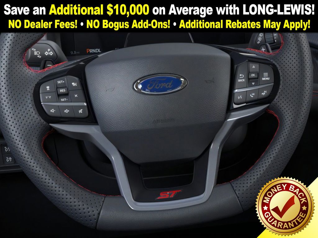 Agate Black Metallic 2025 Ford Explorer ST fctp 4WD 10-Speed Automatic 3.0L EcoBoost V6 4WD, 10 Speakers, 3.58 Non-Limited Slip Rear Axle, 3rd row seats: bench, 4-Wheel Disc Brakes, ABS brakes, Air Conditioning, Alloy wheels, Apple CarPlay/Android Auto, Auto High-beam Headlights, Auto-dimming door mirrors, Auto-dimming Rear-View mirror, Automatic temperature control, B&O Sound System by Bang & Olufsen, Brake assist, Bumpers: body-color, Compass, Delay-off headlights, Driver door bin, Driver vanity mirror, Dual front impact airbags, Dual front side impact airbags, Electronic Stability Control, Emergency communication system: 911 Assist, Exterior Parking Camera Rear, Four wheel independent suspension, Front anti-roll bar, Front Bucket Seats, Front Center Armrest, Front dual zone A/C, Front fog lights, Front License Plate Bracket, Front reading lights, Fully automatic headlights, Garage door transmitter, Heated door mirrors, Heated front seats, Heated rear seats, Heated steering wheel, Heated/Ventilated Miko Sport Captain's Chairs, Illuminated entry, Knee airbag, Leather steering wheel, Low tire pressure warning, Memory seat, Multicontour Seats w/Front Active Motion, Navigation System, Occupant sensing airbag, Outside temperature display, Overhead airbag, Overhead console, Panic alarm, Panoramic Vista Roof w/Power Shade, Passenger door bin, Passenger vanity mirror, Power door mirrors, Power driver seat, Power Liftgate, Power passenger seat, Power steering, Power windows, Radio: B&O Sound System by Bang & Olufsen, Rear air conditioning, Rear anti-roll bar, Rear reading lights, Rear window defroster, Rear window wiper, Remote keyless entry, SecuriCode Keyless Entry Keypad, Security system, Speed control, Speed-sensing steering, Speed-Sensitive Wipers, Split folding rear seat, Spoiler, Sport steering wheel, Steering wheel mounted audio controls, Sun and Sound Package, Tachometer, Telescoping steering wheel, Tilt steering wheel, Traction control, Trip computer, Turn signal indicator mirrors, Variably intermittent wipers, Ventilated front seats, Wheels: 21" Magnetite-Painted Aluminum, 4WD.
