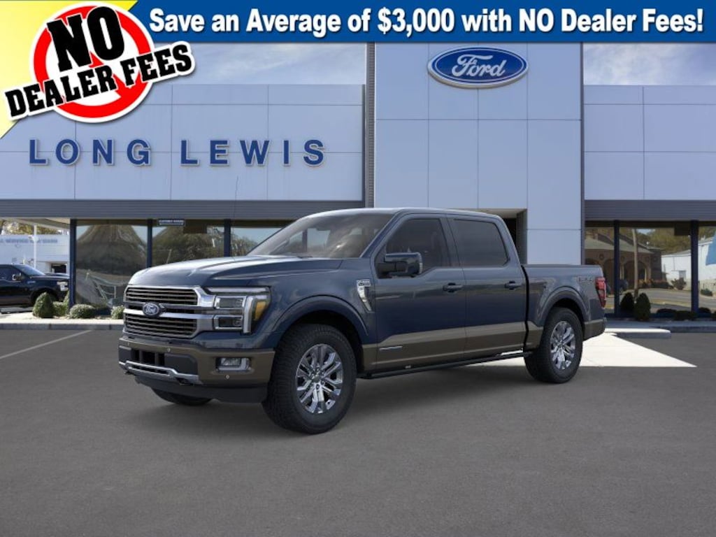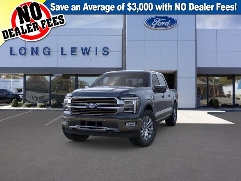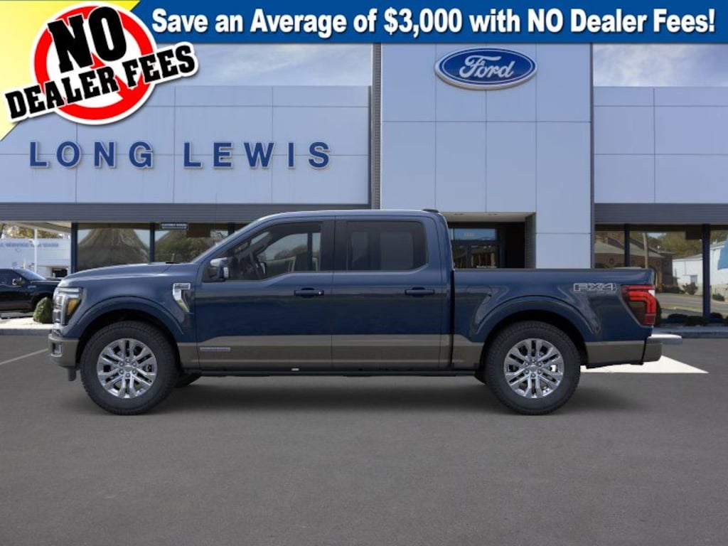 Antimatter Blue Metallic 2025 Ford F-150 King Ranch fctp 4WD 10-Speed Automatic 3.5L PowerBoost Full-Hybrid V6 3.5L PowerBoost Full-Hybrid V6, 4WD, 14 Speakers, 4-Wheel Disc Brakes, 4x4 FX4 Off-Road Bodyside Decal, ABS brakes, Adjustable pedals, Air Conditioning, Alloy wheels, AM/FM radio: SiriusXM with 360L, Auto High-beam Headlights, Auto tilt-away steering wheel, Auto-dimming door mirrors, Auto-dimming Rear-View mirror, Automatic temperature control, Brake assist, Chrome wheels, Compass, Delay-off headlights, Driver door bin, Driver vanity mirror, Dual front impact airbags, Dual front side impact airbags, Electronic Locking w/3.55 Axle Ratio, Electronic Stability Control, Emergency communication system: SYNC 4 911 Assist, Front anti-roll bar, Front Bucket Seats, Front Center Armrest, Front dual zone A/C, Front fog lights, Front License Plate Bracket, Front reading lights, Front wheel independent suspension, Fully automatic headlights, FX4 Off-Road Package, Garage door transmitter, Genuine wood dashboard insert, Heads-Up Display, Heated door mirrors, Heated front seats, Heated rear seats, Heated steering wheel, Hill Descent Control, Illuminated entry, King Ranch Multicontour Leather Bucket Seats, Leather steering wheel, Low tire pressure warning, Max Tow Electronic Locking w/3.73 Axle Ratio, Memory seat, Monotube Rear Shocks, Navigation system: Connected Navigation, Occupant sensing airbag, Off-Road Tuned Front Shock Absorbers, Outside temperature display, Overhead airbag, Overhead console, Panic alarm, Passenger door bin, Passenger vanity mirror, Pedal memory, Power door mirrors, Power driver seat, Power moonroof, Power passenger seat, Power steering, Power windows, Radio data system, Radio: B&O Unleashed Sound System by Bang & Olufsen, Rain sensing wipers, Rear reading lights, Rear seat center armrest, Rear step bumper, Rear window defroster, Remote keyless entry, Rock Crawl Mode, Security system, Speed control, Split folding rear seat, Steering wheel memory, Steering wheel mounted audio controls, SYNC 4 w/Enhanced Voice Recognition, Tachometer, Telescoping steering wheel, Tilt steering wheel, Traction control, Trip computer, Turn signal indicator mirrors, Variably intermittent wipers, Ventilated front seats, Voltmeter, Wheels: 20" Chrome-Like PVD, 3.5L PowerBoost Full-Hybrid V6, 4WD.
