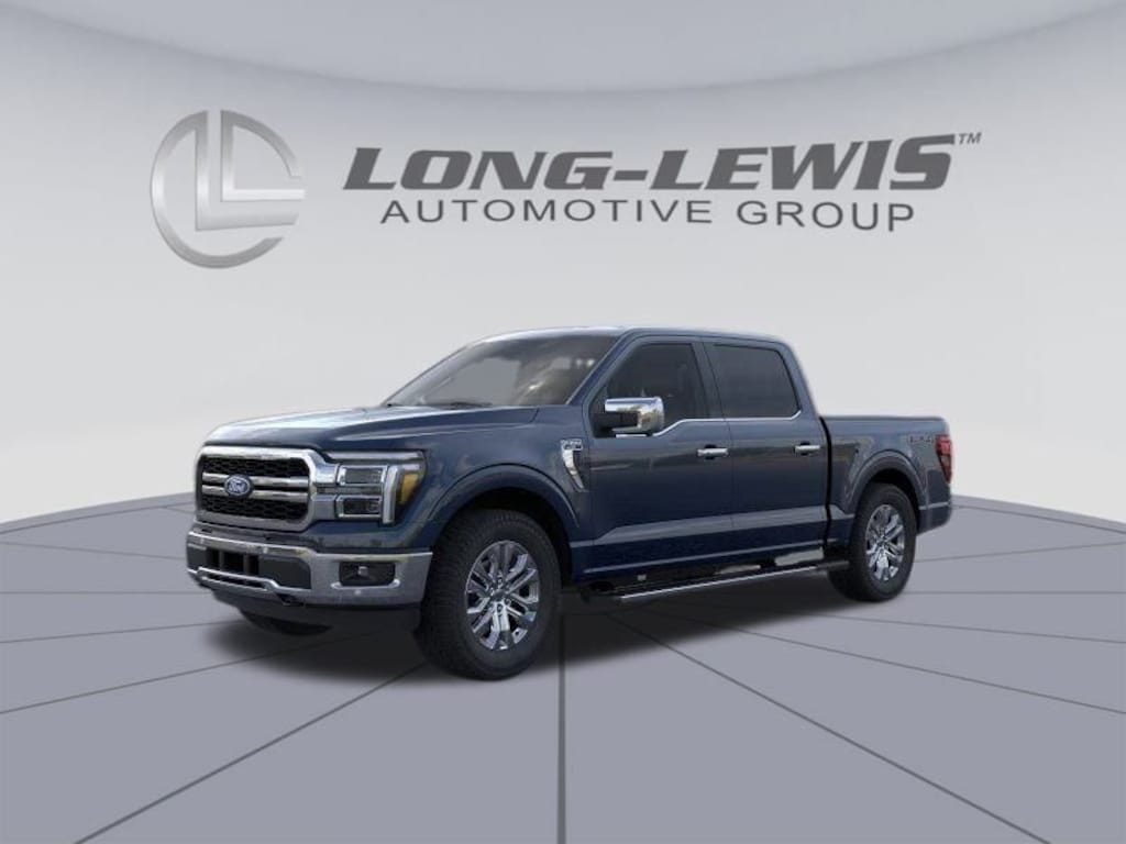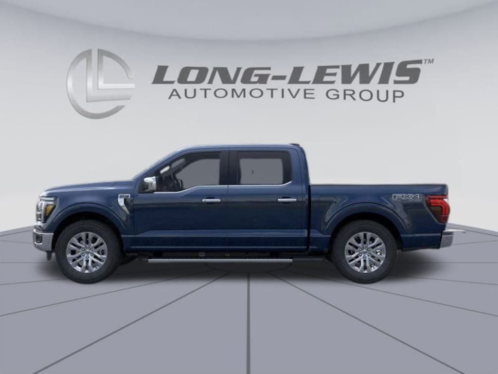 Antimatter Blue Metallic 2025 Ford F-150 Lariat 4WD 10-Speed Automatic 3.5L V6 EcoBoost 4WD, 3.31 Axle Ratio, 4 Pickup Box Tie-Down Plates, 4-Wheel Disc Brakes, 4x4 FX4 Off-Road Bodyside Decal, 6" Extended Running Boards, 8 Speakers, ABS brakes, ActiveX Trimmed Bucket Seats, Adjustable pedals, Air Conditioning, Alloy wheels, AM/FM radio: SiriusXM with 360L, Auto High-beam Headlights, Auto-dimming door mirrors, Auto-dimming Rear-View mirror, Automatic temperature control, Bed Utility Package, Brake assist, Bumpers: chrome, Chrome wheels, Compass, Delay-off headlights, Driver door bin, Driver vanity mirror, Dual front impact airbags, Dual front side impact airbags, Electronic Stability Control, Emergency communication system: SYNC 4 911 Assist, Front anti-roll bar, Front Bucket Seats, Front Center Armrest, Front dual zone A/C, Front fog lights, Front License Plate Bracket, Front reading lights, Front wheel independent suspension, Fully automatic headlights, FX4 Off-Road Package, Garage door transmitter, Heated door mirrors, Heated front seats, Heated steering wheel, Hill Descent Control, Illuminated entry, LED Box Lighting, Low tire pressure warning, Max Tow Electronic Locking w/3.55 Axle Ratio, Memory seat, Monotube Rear Shocks, Navigation system: Connected Navigation, Occupant sensing airbag, Off-Road Tuned Front Shock Absorbers, Outside temperature display, Overhead airbag, Overhead console, Panic alarm, Passenger door bin, Passenger vanity mirror, Pedal memory, Power door mirrors, Power driver seat, Power passenger seat, Power steering, Power Tailgate, Power windows, Pro Access Tailgate, Radio data system, Radio: B&O Sound System by Bang & Olufsen, Rain sensing wipers, Rear reading lights, Rear seat center armrest, Rear step bumper, Rear window defroster, Remote keyless entry, Rock Crawl Mode, Security system, Speed control, Split folding rear seat, Steering wheel mounted audio controls, SYNC 4 w/Enhanced Voice Recognition, Tachometer, Telescoping steering wheel, Tilt steering wheel, Tow/Haul Package, Traction control, Tray Style Floor Liner w/o Carpet Mats, Trip computer, Turn signal indicator mirrors, Variably intermittent wipers, Ventilated front seats, Voltmeter, Wheels: 18" Chrome-Like PVD, 4WD.