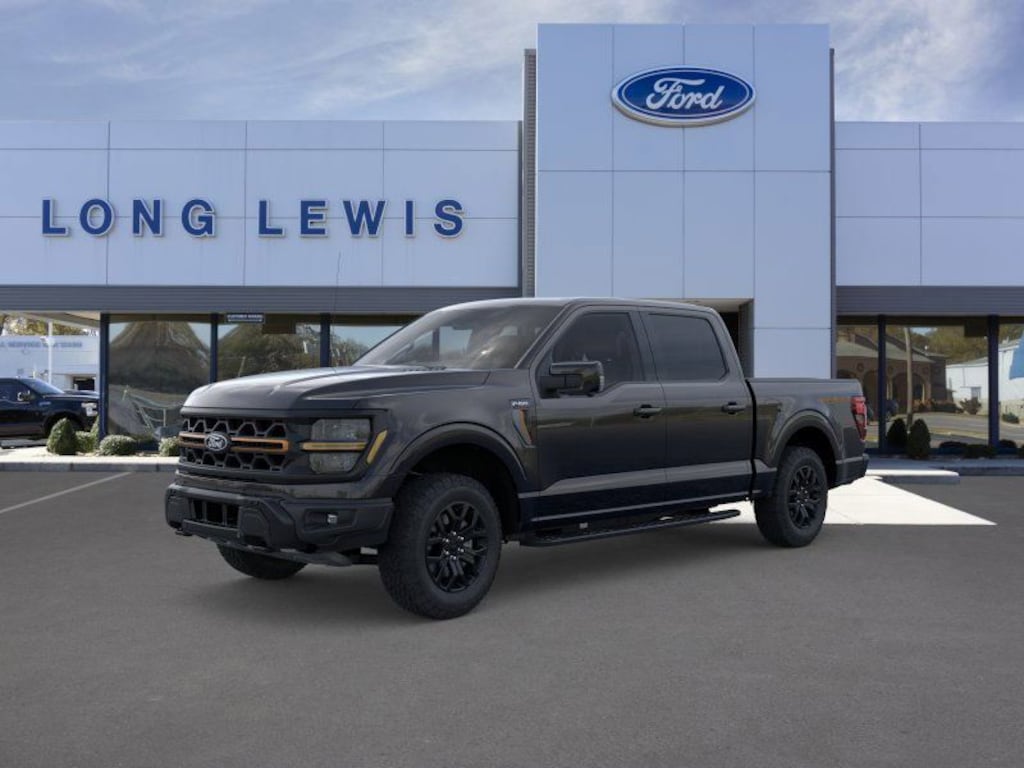 Agate Black Metallic 2025 Ford F-150 Tremor 4WD 10-Speed Automatic 5.0L V8 4WD, 4-Wheel Disc Brakes, 8 Speakers, ABS brakes, Adjustable pedals, Air Conditioning, Alloy wheels, AM/FM radio: SiriusXM with 360L, Auto High-beam Headlights, Auto-dimming door mirrors, Auto-dimming Rear-View mirror, Automatic temperature control, Brake assist, Bumpers: body-color, Compass, Delay-off headlights, Driver door bin, Driver vanity mirror, Dual front impact airbags, Dual front side impact airbags, Electronic Locking w/3.73 Axle Ratio, Electronic Stability Control, Emergency communication system: SYNC 4 911 Assist, Front anti-roll bar, Front Bucket Seats, Front Center Armrest, Front dual zone A/C, Front fog lights, Front License Plate Bracket, Front reading lights, Front wheel independent suspension, Fully automatic headlights, GVWR: 7,100 lbs Payload Package, Heated door mirrors, Heated front seats, Illuminated entry, Low tire pressure warning, Navigation system: Connected Navigation, Occupant sensing airbag, Outside temperature display, Overhead airbag, Overhead console, Panic alarm, Passenger door bin, Passenger vanity mirror, Power door mirrors, Power driver seat, Power passenger seat, Power steering, Power windows, Radio data system, Radio: B&O Sound System by Bang & Olufsen, Rear reading lights, Rear step bumper, Rear window defroster, Remote keyless entry, Security system, Speed control, Split folding rear seat, Steering wheel mounted audio controls, SYNC 4 w/Enhanced Voice Recognition, Tachometer, Telescoping steering wheel, Tilt steering wheel, Traction control, Trip computer, Turn signal indicator mirrors, Twin Panel Moonroof, Unique Sport Cloth 40/Console/40 Power Front Seat, Unique Tremor Leather-Trimmed Bucket Seats, Variably intermittent wipers, Voltmeter, Wheels: 18" Alloy w/Dark Matte Finish, 4WD.