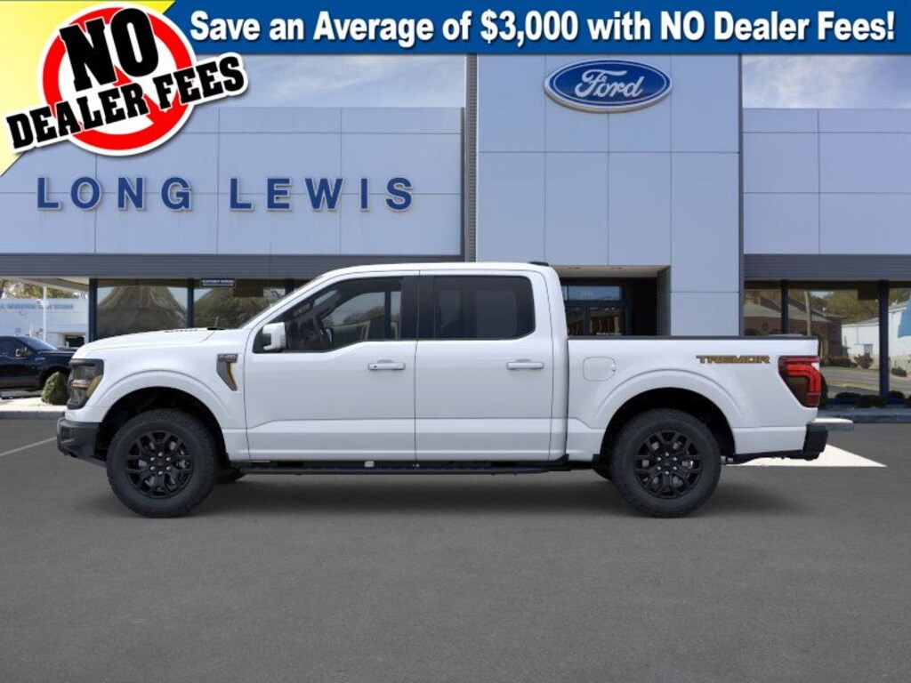 Space White Metallic 2025 Ford F-150 Tremor 4WD 10-Speed Automatic 5.0L V8 4WD, 4-Wheel Disc Brakes, 8 Speakers, ABS brakes, Adjustable pedals, Air Conditioning, Alloy wheels, AM/FM radio: SiriusXM with 360L, Auto High-beam Headlights, Auto-dimming door mirrors, Auto-dimming Rear-View mirror, Automatic temperature control, Brake assist, Bumpers: body-color, Compass, Delay-off headlights, Driver door bin, Driver vanity mirror, Dual front impact airbags, Dual front side impact airbags, Electronic Locking w/3.73 Axle Ratio, Electronic Stability Control, Emergency communication system: SYNC 4 911 Assist, Front anti-roll bar, Front Bucket Seats, Front Center Armrest, Front dual zone A/C, Front fog lights, Front License Plate Bracket, Front reading lights, Front wheel independent suspension, Fully automatic headlights, GVWR: 7,100 lbs Payload Package, Heated door mirrors, Heated front seats, Illuminated entry, Low tire pressure warning, Navigation system: Connected Navigation, Occupant sensing airbag, Outside temperature display, Overhead airbag, Overhead console, Panic alarm, Passenger door bin, Passenger vanity mirror, Power door mirrors, Power driver seat, Power passenger seat, Power steering, Power windows, Radio data system, Radio: B&O Sound System by Bang & Olufsen, Rear reading lights, Rear step bumper, Rear window defroster, Remote keyless entry, Security system, Speed control, Split folding rear seat, Steering wheel mounted audio controls, SYNC 4 w/Enhanced Voice Recognition, Tachometer, Telescoping steering wheel, Tilt steering wheel, Traction control, Trip computer, Turn signal indicator mirrors, Twin Panel Moonroof, Unique Sport Cloth 40/Console/40 Power Front Seat, Unique Tremor Leather-Trimmed Bucket Seats, Variably intermittent wipers, Voltmeter, Wheels: 18" Alloy w/Dark Matte Finish, 4WD.
