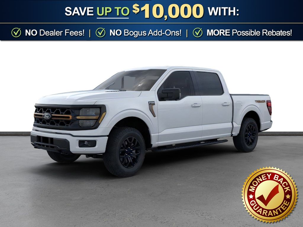 Oxford White 2025 Ford F-150 Tremor fctp 4WD 10-Speed Automatic 3.5L V6 EcoBoost 4WD, 4 Pickup Box Tie-Down Plates, 4-Wheel Disc Brakes, 8 Speakers, ABS brakes, Adjustable pedals, Air Conditioning, Alloy wheels, AM/FM radio: SiriusXM with 360L, Auto High-beam Headlights, Auto-dimming door mirrors, Auto-dimming Rear-View mirror, Automatic temperature control, Bed Utility Package, Brake assist, Bumpers: body-color, Compass, Delay-off headlights, Driver door bin, Driver vanity mirror, Dual front impact airbags, Dual front side impact airbags, Electronic Locking w/3.73 Axle Ratio, Electronic Stability Control, Emergency communication system: SYNC 4 911 Assist, Front anti-roll bar, Front Bucket Seats, Front Center Armrest, Front dual zone A/C, Front fog lights, Front License Plate Bracket, Front reading lights, Front wheel independent suspension, Fully automatic headlights, GVWR: 7,100 lbs Payload Package, Heated door mirrors, Heated front seats, Illuminated entry, LED Box Lighting, Low tire pressure warning, Navigation system: Connected Navigation, Occupant sensing airbag, Outside temperature display, Overhead airbag, Overhead console, Panic alarm, Passenger door bin, Passenger vanity mirror, Power door mirrors, Power driver seat, Power passenger seat, Power steering, Power Tailgate, Power windows, Radio data system, Radio: B&O Sound System by Bang & Olufsen, Rear reading lights, Rear step bumper, Rear window defroster, Remote keyless entry, Security system, Speed control, Split folding rear seat, Steering wheel mounted audio controls, SYNC 4 w/Enhanced Voice Recognition, Tachometer, Tailgate Step w/Tailgate Work Surface, Telescoping steering wheel, Tilt steering wheel, Traction control, Trip computer, Turn signal indicator mirrors, Unique Sport Cloth 40/Console/40 Power Front Seat, Variably intermittent wipers, Voltmeter, Wheels: 18" Alloy w/Dark Matte Finish, 4WD.