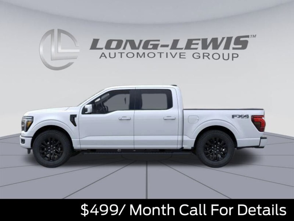 Space White Metallic 2025 Ford F-150 Lariat 4WD 10-Speed Automatic 5.0L V8 4WD, 3.31 Axle Ratio, 4 Pickup Box Tie-Down Plates, 4-Wheel Disc Brakes, 4x4 FX4 Off-Road Bodyside Decal, 6" Extended Running Boards, 8 Speakers, ABS brakes, ActiveX Trimmed Bucket Seats, Adjustable pedals, Air Conditioning, Alloy wheels, AM/FM radio: SiriusXM with 360L, Auto High-beam Headlights, Auto-dimming door mirrors, Auto-dimming Rear-View mirror, Automatic temperature control, Bed Utility Package, Brake assist, Bumpers: chrome, Chrome wheels, Compass, Console Worksurface, Delay-off headlights, Driver door bin, Driver vanity mirror, Dual front impact airbags, Dual front side impact airbags, Electronic Locking w/3.31 Axle Ratio, Electronic Locking w/3.73 Axle Ratio, Electronic Stability Control, Emergency communication system: SYNC 4 911 Assist, Front anti-roll bar, Front Bucket Seats, Front Center Armrest, Front dual zone A/C, Front fog lights, Front License Plate Bracket, Front reading lights, Front wheel independent suspension, Fully automatic headlights, FX4 Off-Road Package, Garage door transmitter, Heated door mirrors, Heated front seats, Heated steering wheel, Hill Descent Control, Illuminated entry, LED Box Lighting, Low tire pressure warning, Memory seat, Mobile Office Package, Monotube Rear Shocks, Navigation system: Connected Navigation, Occupant sensing airbag, Off-Road Tuned Front Shock Absorbers, Outside temperature display, Overhead airbag, Overhead console, Panic alarm, Partitioned Lockable Rear Storage, Passenger door bin, Passenger vanity mirror, Pedal memory, Power door mirrors, Power driver seat, Power passenger seat, Power steering, Power Tailgate, Power windows, Pro Access Tailgate, Radio data system, Radio: B&O Sound System by Bang & Olufsen, Rain sensing wipers, Rear reading lights, Rear seat center armrest, Rear step bumper, Rear window defroster, Remote keyless entry, Rock Crawl Mode, Security system, Speed control, Split folding rear seat, Steering wheel mounted audio controls, SYNC 4 w/Enhanced Voice Recognition, Tachometer, Telescoping steering wheel, Tilt steering wheel, Tow/Haul Package, Traction control, Tray Style Floor Liner w/o Carpet Mats, Trip computer, Turn signal indicator mirrors, Variably intermittent wipers, Ventilated front seats, Voltmeter, Wheels: 18" Chrome-Like PVD, Wireless Charging, 4WD.