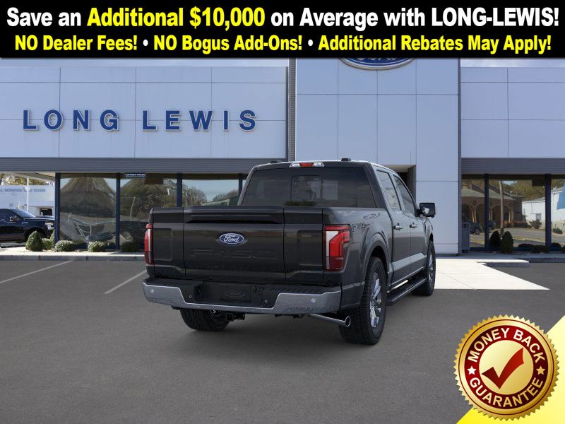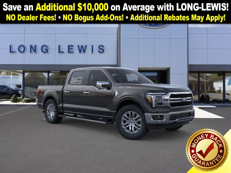 Iconic Silver Metallic 2025 Ford F-150 Lariat fctp 4WD 10-Speed Automatic 5.0L V8 4WD, 3.31 Axle Ratio, 4 Pickup Box Tie-Down Plates, 4-Wheel Disc Brakes, 4x4 FX4 Off-Road Bodyside Decal, 6" Extended Running Boards, 8 Speakers, ABS brakes, ActiveX Trimmed Bucket Seats, Adjustable pedals, Air Conditioning, Alloy wheels, AM/FM radio: SiriusXM with 360L, Auto High-beam Headlights, Auto-dimming door mirrors, Auto-dimming Rear-View mirror, Automatic temperature control, Bed Utility Package, Brake assist, Bumpers: chrome, Chrome wheels, Compass, Delay-off headlights, Driver door bin, Driver vanity mirror, Dual front impact airbags, Dual front side impact airbags, Electronic Locking w/3.31 Axle Ratio, Electronic Stability Control, Emergency communication system: SYNC 4 911 Assist, Front anti-roll bar, Front Bucket Seats, Front Center Armrest, Front dual zone A/C, Front fog lights, Front License Plate Bracket, Front reading lights, Front wheel independent suspension, Fully automatic headlights, FX4 Off-Road Package, Garage door transmitter, Heated door mirrors, Heated front seats, Heated steering wheel, Hill Descent Control, Illuminated entry, LED Box Lighting, Low tire pressure warning, Memory seat, Monotube Rear Shocks, Navigation system: Connected Navigation, Occupant sensing airbag, Off-Road Tuned Front Shock Absorbers, Outside temperature display, Overhead airbag, Overhead console, Panic alarm, Passenger door bin, Passenger vanity mirror, Pedal memory, Power door mirrors, Power driver seat, Power passenger seat, Power steering, Power Tailgate, Power windows, Pro Access Tailgate, Radio data system, Radio: B&O Sound System by Bang & Olufsen, Rain sensing wipers, Rear reading lights, Rear seat center armrest, Rear step bumper, Rear window defroster, Remote keyless entry, Rock Crawl Mode, Security system, Speed control, Split folding rear seat, Steering wheel mounted audio controls, SYNC 4 w/Enhanced Voice Recognition, Tachometer, Telescoping steering wheel, Tilt steering wheel, Traction control, Tray Style Floor Liner w/o Carpet Mats, Trip computer, Turn signal indicator mirrors, Variably intermittent wipers, Ventilated front seats, Voltmeter, Wheels: 18" Chrome-Like PVD, 4WD.