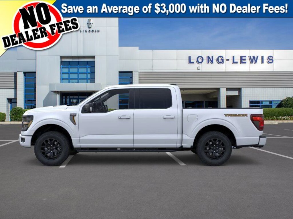 Dealer Discount of $5,561 off MSRP Space White Metallic 2025 Ford F-150 Tremor fctp 4WD 10-Speed Automatic 5.0L V8 4WD, 4 Pickup Box Tie-Down Plates, 4-Wheel Disc Brakes, 8 Speakers, ABS brakes, Adjustable pedals, Air Conditioning, Alloy wheels, AM/FM radio: SiriusXM with 360L, Auto High-beam Headlights, Auto-dimming door mirrors, Auto-dimming Rear-View mirror, Automatic temperature control, Bed Utility Package, Brake assist, Bumpers: body-color, Compass, Console Worksurface, Delay-off headlights, Driver door bin, Driver vanity mirror, Dual front impact airbags, Dual front side impact airbags, Electronic Locking w/3.73 Axle Ratio, Electronic Stability Control, Emergency communication system: SYNC 4 911 Assist, Equipment Group 401A Standard, Front anti-roll bar, Front Bucket Seats, Front Center Armrest, Front dual zone A/C, Front fog lights, Front License Plate Bracket, Front reading lights, Front wheel independent suspension, Fully automatic headlights, GVWR: 7,100 lbs Payload Package, Heated door mirrors, Heated front seats, Illuminated entry, Integrated Trailer Brake Controller, LED Box Lighting, Low tire pressure warning, Mobile Office Package, Navigation system: Connected Navigation, Occupant sensing airbag, Outside temperature display, Overhead airbag, Overhead console, Panic alarm, Partitioned Lockable Rear Storage, Passenger door bin, Passenger vanity mirror, Power door mirrors, Power driver seat, Power passenger seat, Power steering, Power Tailgate, Power windows, Radio data system, Radio: B&O Sound System by Bang & Olufsen, Rear reading lights, Rear step bumper, Rear window defroster, Remote keyless entry, Security system, Speed control, Split folding rear seat, Steering wheel mounted audio controls, SYNC 4 w/Enhanced Voice Recognition, Tachometer, Tailgate Step w/Tailgate Work Surface, Telescoping steering wheel, Tilt steering wheel, Tow/Haul Package, Traction control, Trip computer, Turn signal indicator mirrors, Unique Sport Cloth 40/Console/40 Power Front Seat, Variably intermittent wipers, Voltmeter, Wheels: 18" Alloy w/Dark Matte Finish, Wireless Charging, 4WD.