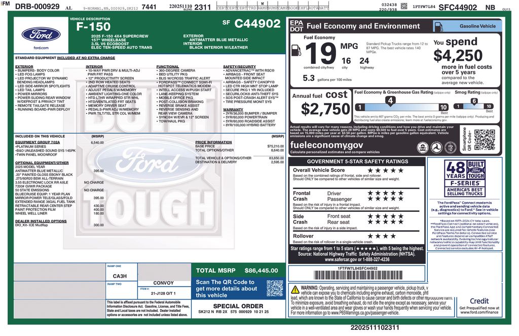 2025 Ford F-150 Platinum Truck V6 EcoBoost