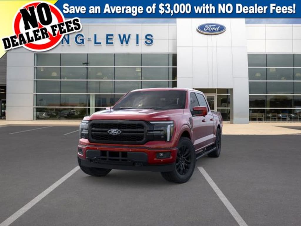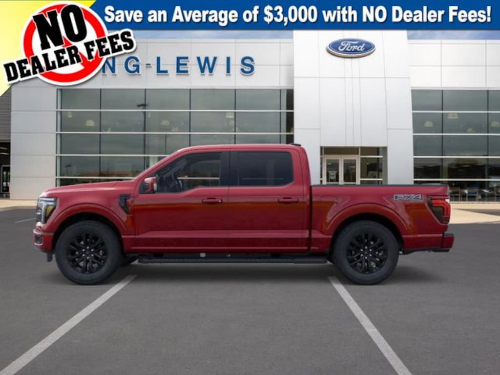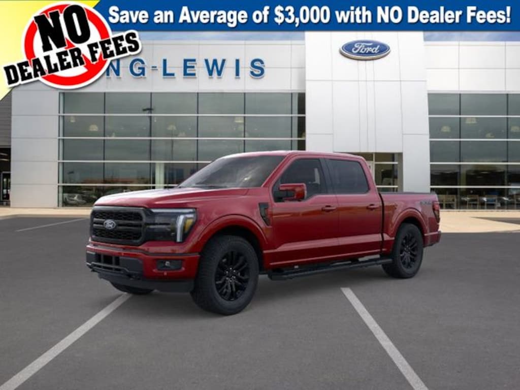 Rapid Red Metallic Tinted Clearcoat 2025 Ford F-150 Lariat 4WD 10-Speed Automatic 3.5L PowerBoost Full-Hybrid V6 3.31 Axle Ratio, 4 Pickup Box Tie-Down Plates, 4-Wheel Disc Brakes, 4x4 FX4 Off-Road Bodyside Decal, 6" Angular Bright Anodized Step Bar, 6" Extended Running Boards, 8 Speakers, ABS brakes, ActiveX Trimmed Bucket Seats, Adjustable pedals, Air Conditioning, Alloy wheels, AM/FM radio: SiriusXM with 360L, Auto High-beam Headlights, Auto-dimming door mirrors, Auto-dimming Rear-View mirror, Automatic temperature control, Bed Utility Package, Brake assist, Bumpers: chrome, Chrome wheels, Compass, Delay-off headlights, Driver door bin, Driver vanity mirror, Dual front impact airbags, Dual front side impact airbags, Electronic Stability Control, Emergency communication system: SYNC 4 911 Assist, Equipment Group 501A Mid, Front anti-roll bar, Front Bucket Seats, Front Center Armrest, Front dual zone A/C, Front fog lights, Front reading lights, Front wheel independent suspension, Fully automatic headlights, FX4 Off-Road Package, Garage door transmitter, Heated door mirrors, Heated front seats, Heated steering wheel, Hill Descent Control, Illuminated Driver & Passenger Visors, Illuminated entry, LED Box Lighting, Low tire pressure warning, Max Tow Electronic Locking w/3.55 Axle Ratio, Memory seat, Monotube Rear Shocks, Navigation system: Connected Navigation, Occupant sensing airbag, Off-Road Tuned Front Shock Absorbers, Outside temperature display, Overhead airbag, Overhead console, Panic alarm, Passenger door bin, Passenger vanity mirror, Pedal memory, Power door mirrors, Power driver seat, Power passenger seat, Power steering, Power Tailgate, Power windows, Power-Sliding Rear Window, Pro Access Tailgate, Radio data system, Radio: B&O Sound System by Bang & Olufsen, Rain sensing wipers, Rear reading lights, Rear seat center armrest, Rear step bumper, Rear window defroster, Remote keyless entry, Rock Crawl Mode, Security system, Speed control, Split folding rear seat, Steering wheel mounted audio controls, SYNC 4 w/Enhanced Voice Recognition, Tachometer, Telescoping steering wheel, Tilt steering wheel, Tow/Haul Package, Traction control, Tray Style Floor Liner w/o Carpet Mats, Trip computer, Turn signal indicator mirrors, Variably intermittent wipers, Ventilated front seats, Voltmeter, Wheels: 18" Chrome-Like PVD, Wheels: 20" Chrome-Like PVD.
