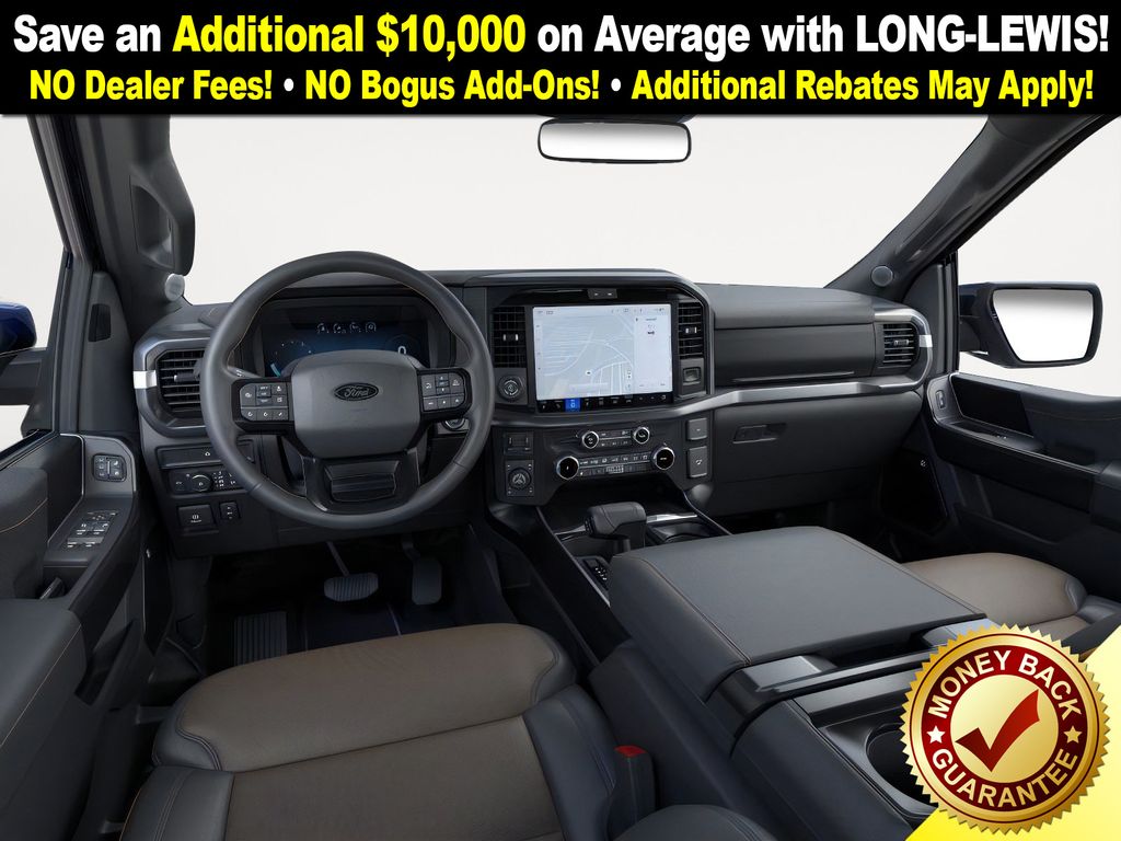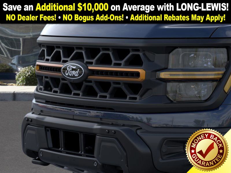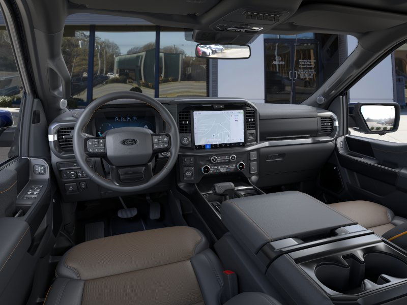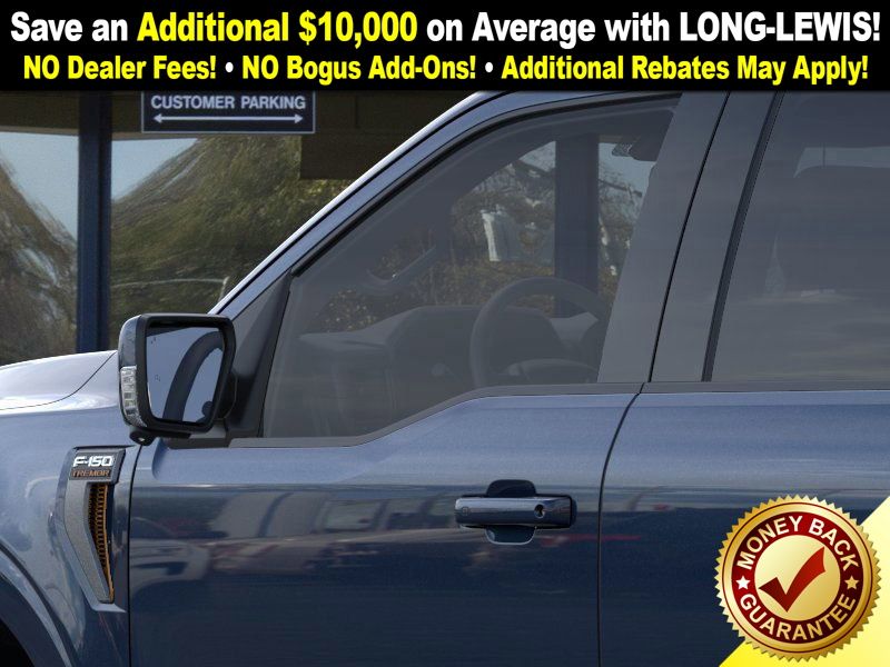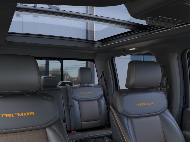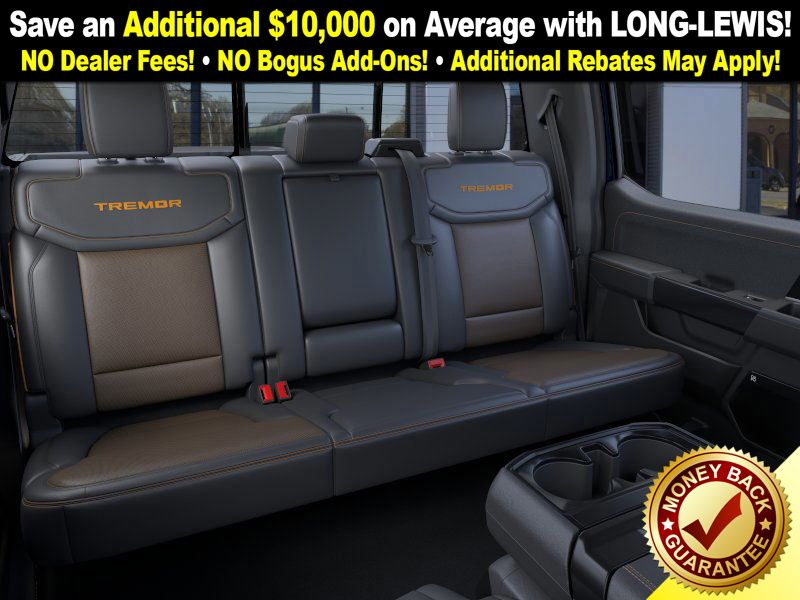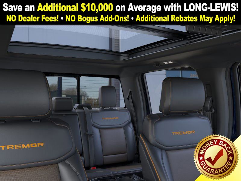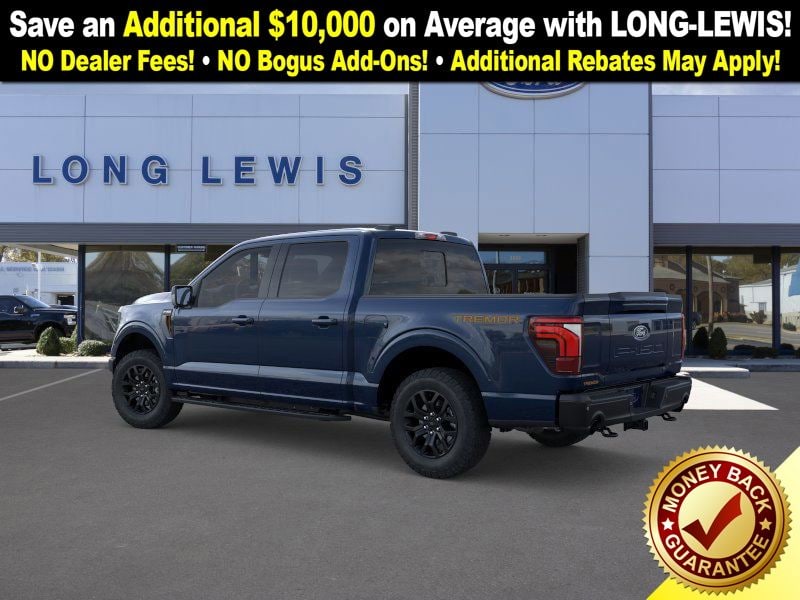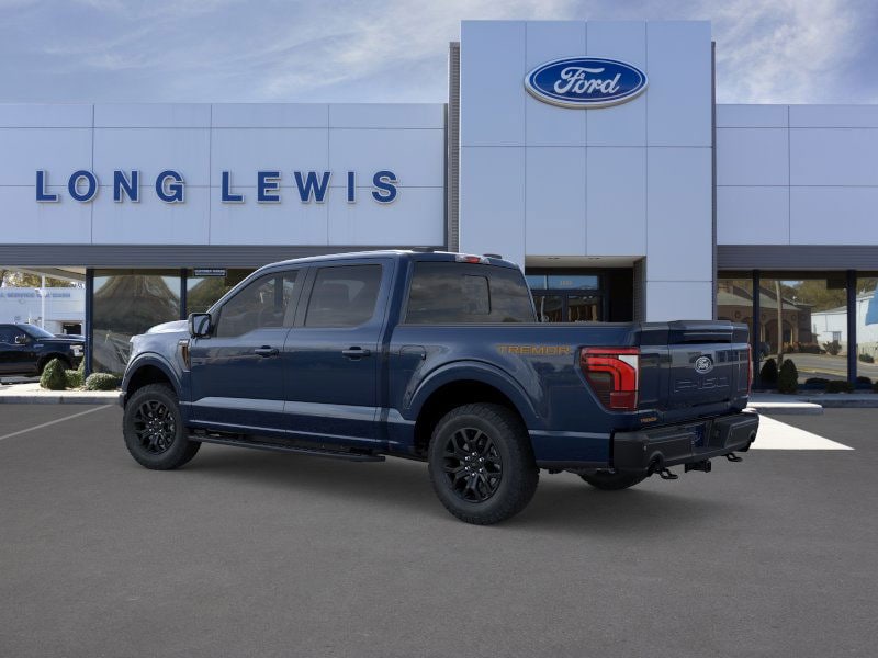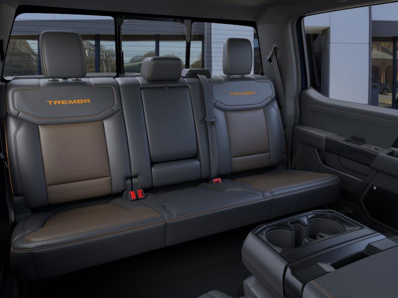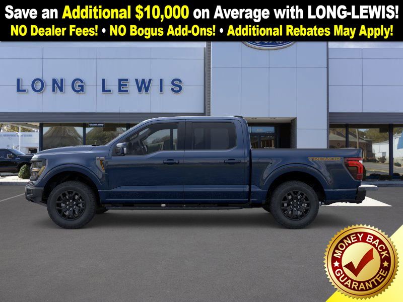 Antimatter Blue Metallic 2025 Ford F-150 Tremor fctp 4WD 10-Speed Automatic 3.5L V6 EcoBoost 4WD, 4-Wheel Disc Brakes, 8 Speakers, ABS brakes, Adjustable pedals, Air Conditioning, Alloy wheels, AM/FM radio: SiriusXM with 360L, Auto High-beam Headlights, Auto-dimming door mirrors, Auto-dimming Rear-View mirror, Automatic temperature control, Brake assist, Bumpers: body-color, Compass, Delay-off headlights, Driver door bin, Driver vanity mirror, Dual front impact airbags, Dual front side impact airbags, Electronic Locking w/3.73 Axle Ratio, Electronic Stability Control, Emergency communication system: SYNC 4 911 Assist, Front anti-roll bar, Front Bucket Seats, Front Center Armrest, Front dual zone A/C, Front fog lights, Front License Plate Bracket, Front reading lights, Front wheel independent suspension, Fully automatic headlights, GVWR: 7,100 lbs Payload Package, Heated door mirrors, Heated front seats, Illuminated entry, Low tire pressure warning, Navigation system: Connected Navigation, Occupant sensing airbag, Outside temperature display, Overhead airbag, Overhead console, Panic alarm, Passenger door bin, Passenger vanity mirror, Power door mirrors, Power driver seat, Power passenger seat, Power steering, Power windows, Radio data system, Radio: B&O Sound System by Bang & Olufsen, Rear reading lights, Rear step bumper, Rear window defroster, Remote keyless entry, Security system, Speed control, Split folding rear seat, Steering wheel mounted audio controls, SYNC 4 w/Enhanced Voice Recognition, Tachometer, Telescoping steering wheel, Tilt steering wheel, Traction control, Trip computer, Turn signal indicator mirrors, Twin Panel Moonroof, Unique Sport Cloth 40/Console/40 Power Front Seat, Unique Tremor Leather-Trimmed Bucket Seats, Variably intermittent wipers, Voltmeter, Wheels: 18" Alloy w/Dark Matte Finish, 4WD.