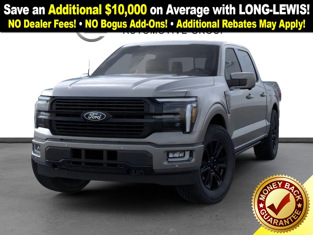 Carbonized Gray Metallic 2025 Ford F-150 Platinum fctp 4WD 10-Speed Automatic 3.5L V6 EcoBoost 4WD, 4-Wheel Disc Brakes, 4x4 FX4 Off-Road Bodyside Decal, 8 Speakers, ABS brakes, Adjustable pedals, Air Conditioning, Alloy wheels, AM/FM radio: SiriusXM with 360L, Auto High-beam Headlights, Auto tilt-away steering wheel, Auto-dimming door mirrors, Auto-dimming Rear-View mirror, Automatic temperature control, Brake assist, Bumpers: body-color, Compass, Delay-off headlights, Driver door bin, Driver vanity mirror, Dual front impact airbags, Dual front side impact airbags, Electronic Locking w/3.55 Axle Ratio, Electronic Stability Control, Emergency communication system: SYNC 4 911 Assist, Front anti-roll bar, Front Bucket Seats, Front Center Armrest, Front dual zone A/C, Front fog lights, Front License Plate Bracket, Front reading lights, Front wheel independent suspension, Fully automatic headlights, FX4 Off-Road Package, Garage door transmitter, Heated door mirrors, Heated front seats, Heated rear seats, Heated steering wheel, Hill Descent Control, Illuminated entry, Leather steering wheel, Low tire pressure warning, Memory seat, Monotube Rear Shocks, Navigation system: Connected Navigation, Occupant sensing airbag, Off-Road Tuned Front Shock Absorbers, Outside temperature display, Overhead airbag, Overhead console, Panic alarm, Passenger door bin, Passenger vanity mirror, Pedal memory, Power door mirrors, Power driver seat, Power passenger seat, Power steering, Power windows, Radio data system, Radio: B&O Sound System by Bang & Olufsen, Rain sensing wipers, Rear reading lights, Rear seat center armrest, Rear step bumper, Rear window defroster, Remote keyless entry, Rock Crawl Mode, Security system, Speed control, Split folding rear seat, Steering wheel memory, Steering wheel mounted audio controls, SYNC 4 w/Enhanced Voice Recognition, Tachometer, Telescoping steering wheel, Tilt steering wheel, Traction control, Tray Style Floor Liner, Trip computer, Turn signal indicator mirrors, Unique Multi-Contour Leather Bucket Seats, Variably intermittent wipers, Ventilated front seats, Voltmeter, Wheels: 20" Painted Gloss Ebony Black, 4WD.