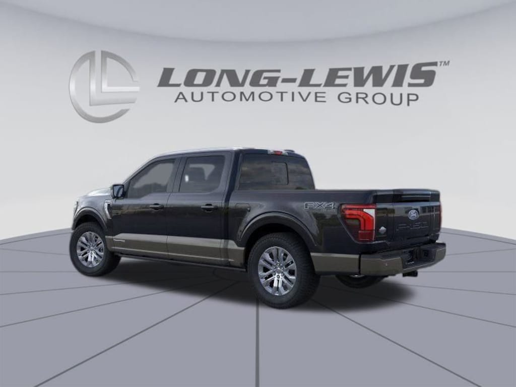 Agate Black Metallic 2025 Ford F-150 King Ranch 4WD 10-Speed Automatic 3.5L PowerBoost Full-Hybrid V6 3.5L PowerBoost Full-Hybrid V6, 4WD, 14 Speakers, 4-Wheel Disc Brakes, 4x4 FX4 Off-Road Bodyside Decal, ABS brakes, Adjustable pedals, Air Conditioning, Alloy wheels, AM/FM radio: SiriusXM with 360L, Auto High-beam Headlights, Auto tilt-away steering wheel, Auto-dimming door mirrors, Auto-dimming Rear-View mirror, Automatic temperature control, Brake assist, Chrome wheels, Compass, Delay-off headlights, Driver door bin, Driver vanity mirror, Dual front impact airbags, Dual front side impact airbags, Electronic Locking w/3.55 Axle Ratio, Electronic Locking w/3.73 Axle Ratio, Electronic Stability Control, Emergency communication system: SYNC 4 911 Assist, Front anti-roll bar, Front Bucket Seats, Front Center Armrest, Front dual zone A/C, Front fog lights, Front License Plate Bracket, Front reading lights, Front wheel independent suspension, Fully automatic headlights, FX4 Off-Road Package, Garage door transmitter, Genuine wood dashboard insert, Heads-Up Display, Heated door mirrors, Heated front seats, Heated rear seats, Heated steering wheel, Hill Descent Control, Illuminated entry, King Ranch Multicontour Leather Bucket Seats, Leather steering wheel, Low tire pressure warning, Memory seat, Monotube Rear Shocks, Navigation system: Connected Navigation, Occupant sensing airbag, Off-Road Tuned Front Shock Absorbers, Outside temperature display, Overhead airbag, Overhead console, Panic alarm, Passenger door bin, Passenger vanity mirror, Pedal memory, Power door mirrors, Power driver seat, Power moonroof, Power passenger seat, Power steering, Power windows, Radio data system, Radio: B&O Unleashed Sound System by Bang & Olufsen, Rain sensing wipers, Rear reading lights, Rear seat center armrest, Rear step bumper, Rear window defroster, Remote keyless entry, Rock Crawl Mode, Security system, Speed control, Split folding rear seat, Steering wheel memory, Steering wheel mounted audio controls, SYNC 4 w/Enhanced Voice Recognition, Tachometer, Telescoping steering wheel, Tilt steering wheel, Traction control, Trip computer, Turn signal indicator mirrors, Variably intermittent wipers, Ventilated front seats, Voltmeter, Wheels: 20" Chrome-Like PVD, 3.5L PowerBoost Full-Hybrid V6, 4WD.