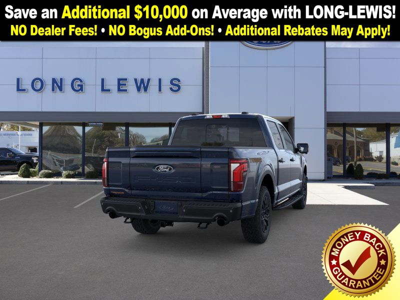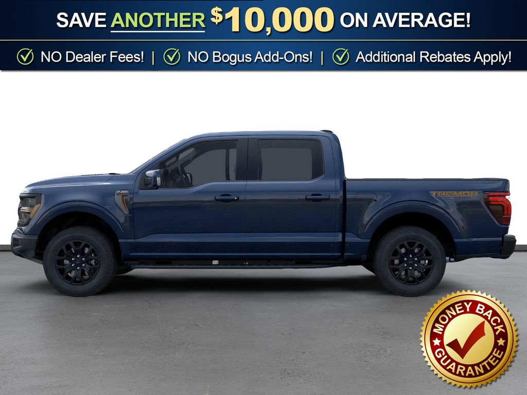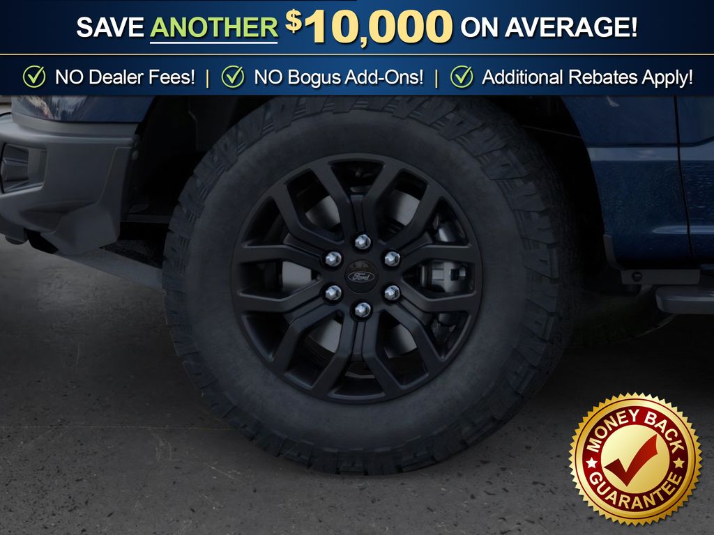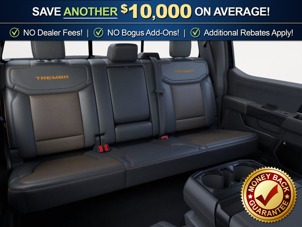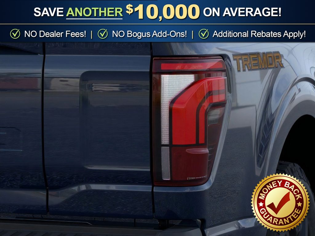 Antimatter Blue Metallic 2025 Ford F-150 Tremor fctp 4WD 10-Speed Automatic 5.0L V8 4WD, 4-Wheel Disc Brakes, 8 Speakers, ABS brakes, Adjustable pedals, Air Conditioning, Alloy wheels, AM/FM radio: SiriusXM with 360L, Auto High-beam Headlights, Auto-dimming door mirrors, Auto-dimming Rear-View mirror, Automatic temperature control, Brake assist, Bumpers: body-color, Compass, Delay-off headlights, Driver door bin, Driver vanity mirror, Dual front impact airbags, Dual front side impact airbags, Electronic Locking w/3.73 Axle Ratio, Electronic Stability Control, Emergency communication system: SYNC 4 911 Assist, Front anti-roll bar, Front Bucket Seats, Front Center Armrest, Front dual zone A/C, Front fog lights, Front License Plate Bracket, Front reading lights, Front wheel independent suspension, Fully automatic headlights, GVWR: 7,100 lbs Payload Package, Heated door mirrors, Heated front seats, Illuminated entry, Low tire pressure warning, Navigation system: Connected Navigation, Occupant sensing airbag, Outside temperature display, Overhead airbag, Overhead console, Panic alarm, Passenger door bin, Passenger vanity mirror, Power door mirrors, Power driver seat, Power passenger seat, Power steering, Power windows, Radio data system, Radio: B&O Sound System by Bang & Olufsen, Rear reading lights, Rear step bumper, Rear window defroster, Remote keyless entry, Security system, Speed control, Split folding rear seat, Steering wheel mounted audio controls, SYNC 4 w/Enhanced Voice Recognition, Tachometer, Telescoping steering wheel, Tilt steering wheel, Traction control, Trip computer, Turn signal indicator mirrors, Twin Panel Moonroof, Unique Sport Cloth 40/Console/40 Power Front Seat, Unique Tremor Leather-Trimmed Bucket Seats, Variably intermittent wipers, Voltmeter, Wheels: 18" Alloy w/Dark Matte Finish, 4WD.