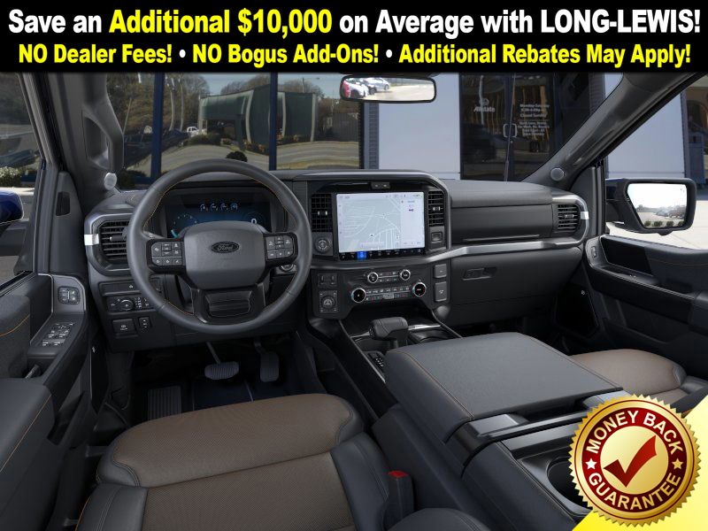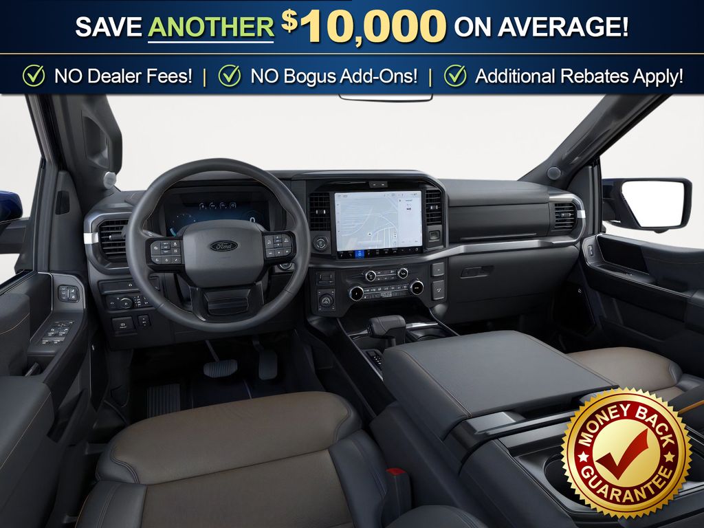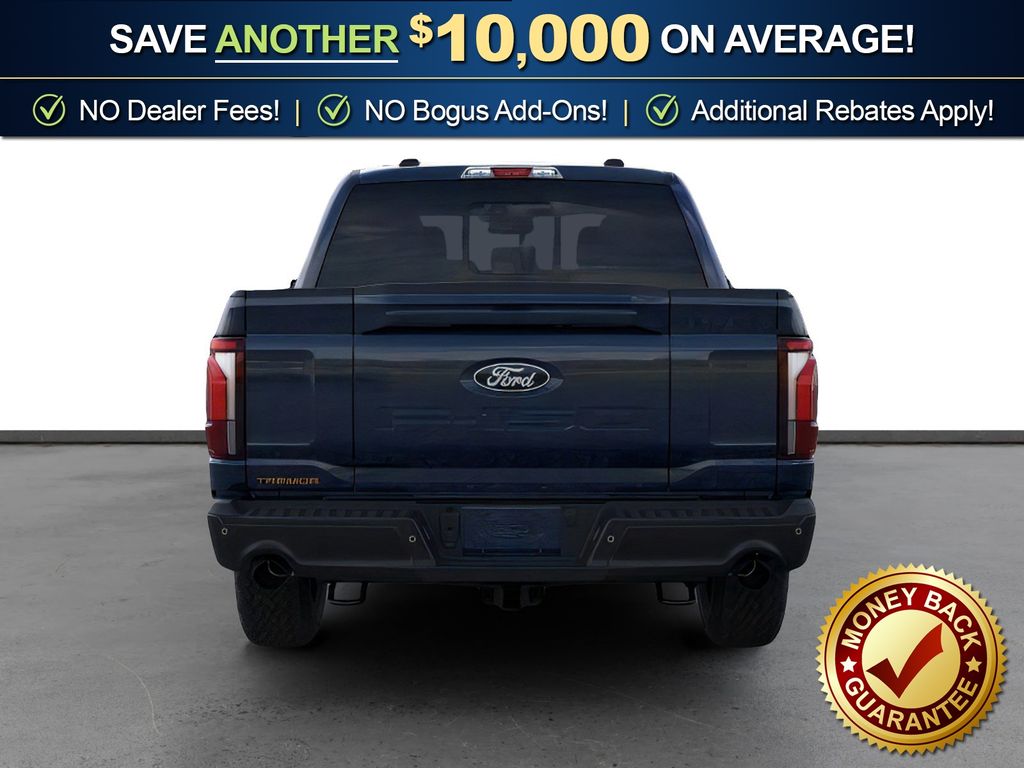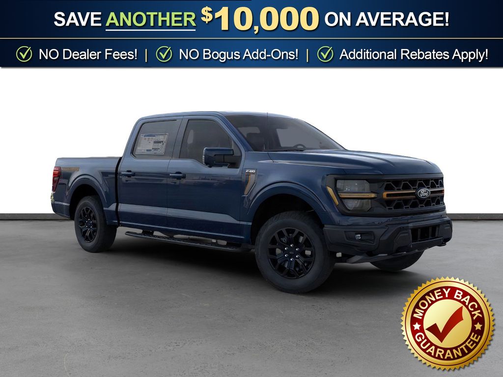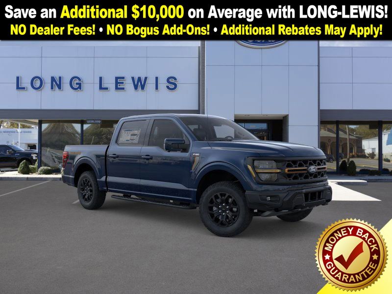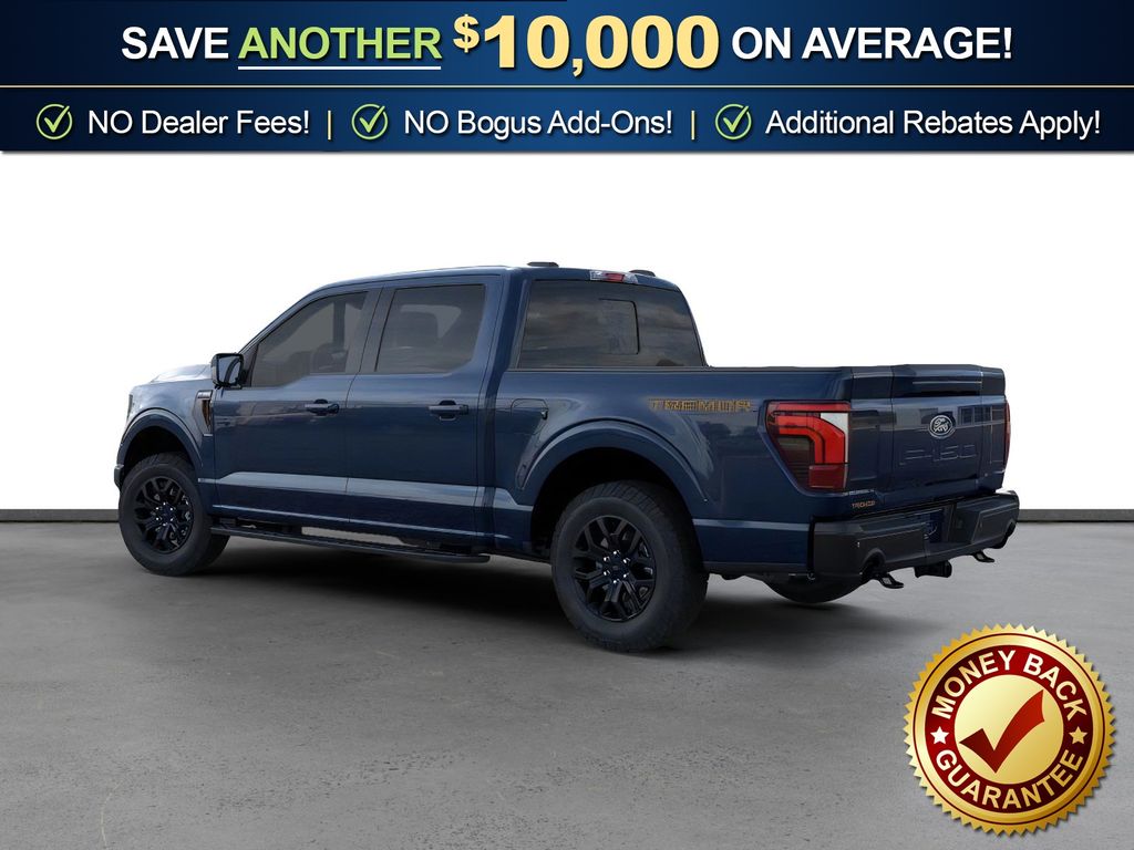 Antimatter Blue Metallic 2025 Ford F-150 Tremor fctp 4WD 10-Speed Automatic 5.0L V8 4WD, 4-Wheel Disc Brakes, 8 Speakers, ABS brakes, Adjustable pedals, Air Conditioning, Alloy wheels, AM/FM radio: SiriusXM with 360L, Auto High-beam Headlights, Auto-dimming door mirrors, Auto-dimming Rear-View mirror, Automatic temperature control, Brake assist, Bumpers: body-color, Compass, Delay-off headlights, Driver door bin, Driver vanity mirror, Dual front impact airbags, Dual front side impact airbags, Electronic Locking w/3.73 Axle Ratio, Electronic Stability Control, Emergency communication system: SYNC 4 911 Assist, Front anti-roll bar, Front Bucket Seats, Front Center Armrest, Front dual zone A/C, Front fog lights, Front License Plate Bracket, Front reading lights, Front wheel independent suspension, Fully automatic headlights, GVWR: 7,100 lbs Payload Package, Heated door mirrors, Heated front seats, Illuminated entry, Low tire pressure warning, Navigation system: Connected Navigation, Occupant sensing airbag, Outside temperature display, Overhead airbag, Overhead console, Panic alarm, Passenger door bin, Passenger vanity mirror, Power door mirrors, Power driver seat, Power passenger seat, Power steering, Power windows, Radio data system, Radio: B&O Sound System by Bang & Olufsen, Rear reading lights, Rear step bumper, Rear window defroster, Remote keyless entry, Security system, Speed control, Split folding rear seat, Steering wheel mounted audio controls, SYNC 4 w/Enhanced Voice Recognition, Tachometer, Telescoping steering wheel, Tilt steering wheel, Traction control, Trip computer, Turn signal indicator mirrors, Twin Panel Moonroof, Unique Sport Cloth 40/Console/40 Power Front Seat, Unique Tremor Leather-Trimmed Bucket Seats, Variably intermittent wipers, Voltmeter, Wheels: 18" Alloy w/Dark Matte Finish, 4WD.