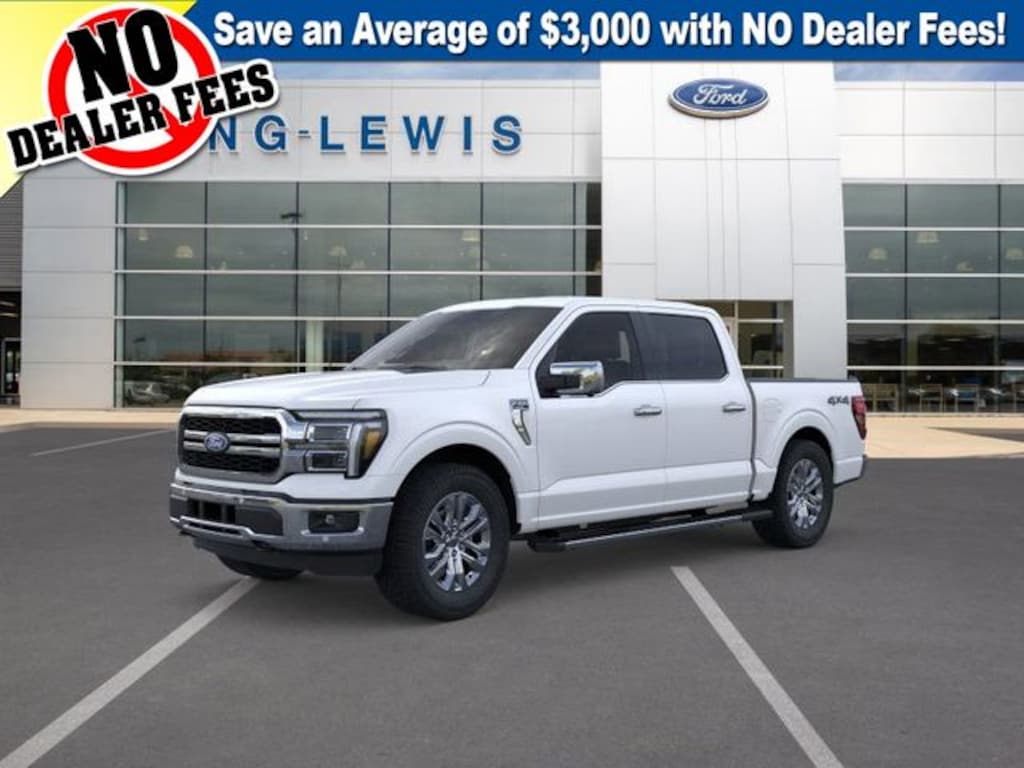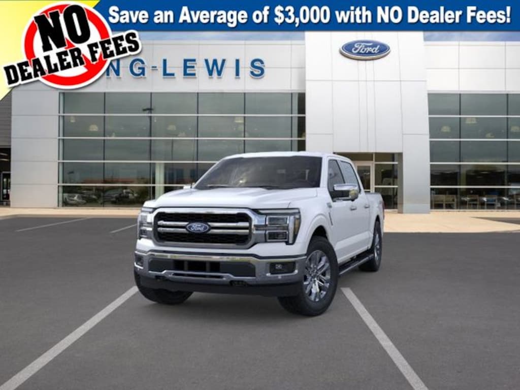 Star White Metallic Tri-Coat 2025 Ford F-150 Lariat 4WD 10-Speed Automatic 3.5L PowerBoost Full-Hybrid V6 2nd Row Heated Seats, 3.31 Axle Ratio, 4 Pickup Box Tie-Down Plates, 4-Wheel Disc Brakes, 6" Extended Running Boards, 8 Speakers, ABS brakes, ActiveX Trimmed Bucket Seats, ActiveX Trimmed Smoked Truffle Bucket Seats, Adjustable pedals, Air Conditioning, Alloy wheels, AM/FM radio: SiriusXM with 360L, Ambient Lighting - Ice Blue Color Only, Auto High-beam Headlights, Auto-dimming door mirrors, Auto-dimming Rear-View mirror, Automatic temperature control, Bed Utility Package, Brake assist, Bumpers: chrome, Chrome wheels, Compass, Console Worksurface, Delay-off headlights, Driver door bin, Driver vanity mirror, Dual front impact airbags, Dual front side impact airbags, Electronic Locking w/3.55 Axle Ratio, Electronic Stability Control, Emergency communication system: SYNC 4 911 Assist, Equipment Group 502A High, Front anti-roll bar, Front Bucket Seats, Front Center Armrest, Front dual zone A/C, Front fog lights, Front reading lights, Front wheel independent suspension, Fully automatic headlights, Garage door transmitter, Heads-Up Display, Heated door mirrors, Heated front seats, Heated steering wheel, Illuminated Driver & Passenger Visors, Illuminated entry, LED Box Lighting, Low tire pressure warning, Memory seat, Mobile Office Package, Navigation system: Connected Navigation, Occupant sensing airbag, Outside temperature display, Overhead airbag, Overhead console, Panic alarm, Partitioned Lockable Rear Storage, Passenger door bin, Passenger vanity mirror, Pedal memory, Power door mirrors, Power driver seat, Power passenger seat, Power steering, Power Tailgate, Power windows, Power-Sliding Rear Window, Pro Access Tailgate, Radio data system, Radio: B&O Sound System by Bang & Olufsen, Radio: B&O Unleashed Sound System by Bang & Olufsen, Rain sensing wipers, Rear reading lights, Rear seat center armrest, Rear step bumper, Rear window defroster, Remote keyless entry, Security system, Speed control, Split folding rear seat, Steering wheel mounted audio controls, SYNC 4 w/Enhanced Voice Recognition, Tachometer, Telescoping steering wheel, Tilt steering wheel, Tow/Haul Package, Traction control, Trip computer, Turn signal indicator mirrors, Variably intermittent wipers, Ventilated front seats, Voltmeter, Wheels: 18" Chrome-Like PVD, Wheels: 20" Chrome-Like PVD, Wireless Charging.