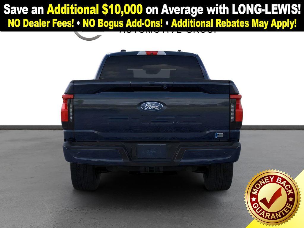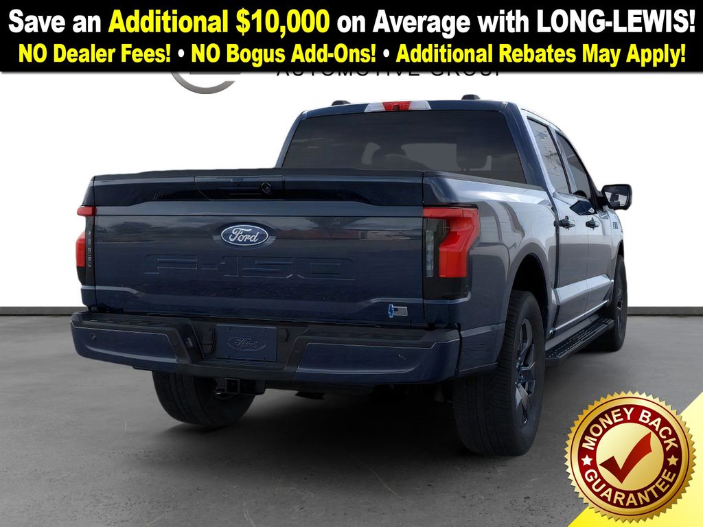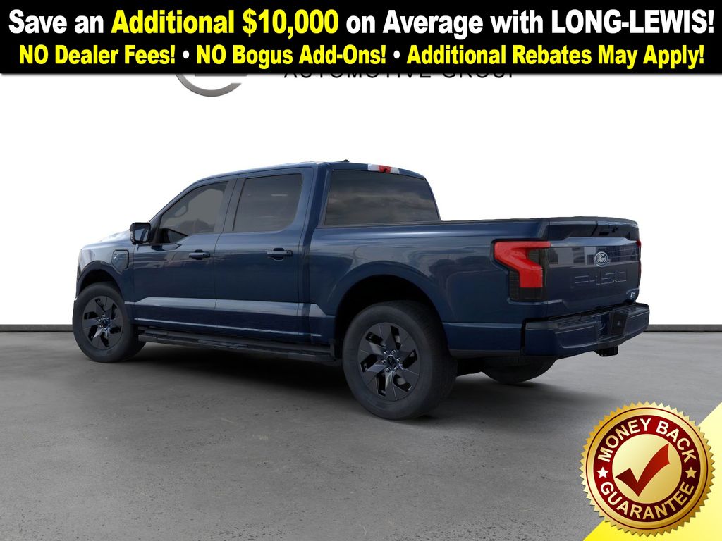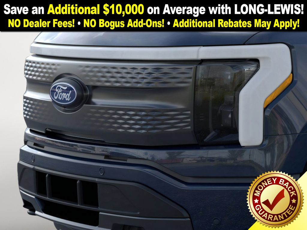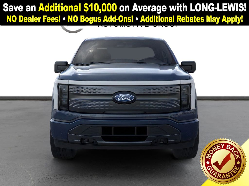 Dealer Discount of $4,176 off MSRP Antimatter Blue Metallic 2025 Ford F-150 Lightning Flash NFT AWD Single-Speed Automatic Electric Motor 4-Wheel Disc Brakes, 8 Speakers, ABS brakes, ActiveX Trimmed Heated Front Seats, Adjustable pedals, Air Conditioning, Alloy wheels, Auto High-beam Headlights, Auto-dimming Rear-View mirror, Automatic temperature control, Brake assist, Bumpers: body-color, Compass, Delay-off headlights, Driver door bin, Driver vanity mirror, Dual front impact airbags, Dual front side impact airbags, Electronic Stability Control, Emergency communication system: SYNC 4 911 Assist, Equipment Group 312A Standard, Four wheel independent suspension, Front anti-roll bar, Front Bucket Seats, Front Center Armrest, Front dual zone A/C, Front License Plate Bracket, Front reading lights, Fully automatic headlights, Heated door mirrors, Heated front seats, Heated steering wheel, Illuminated entry, Internet access capable: FordPass Connect 4G, Knee airbag, Low tire pressure warning, Mobile Power Cord (120/240V), Navigation system: Connected Navigation, Occupant sensing airbag, Outside temperature display, Overhead airbag, Overhead console, Panic alarm, Passenger door bin, Passenger vanity mirror, Power door mirrors, Power driver seat, Power passenger seat, Power steering, Power windows, Pro Power Onboard - 9.6 kW Exportable Power, Radio data system, Radio: B&O Sound System by Bang & Olufsen, Rear anti-roll bar, Rear reading lights, Rear step bumper, Rear window defroster, Remote keyless entry, Security system, Speed control, Speed-sensing steering, Split folding rear seat, Steering wheel mounted audio controls, SYNC 4A w/Enhanced Voice Recognition, Tailgate Step w/Tailgate Work Surface, Telescoping steering wheel, Tilt steering wheel, Traction control, Trip computer, Turn signal indicator mirrors, Variably intermittent wipers, Wheels: 20" Alloy Dark Carbonized Gray.